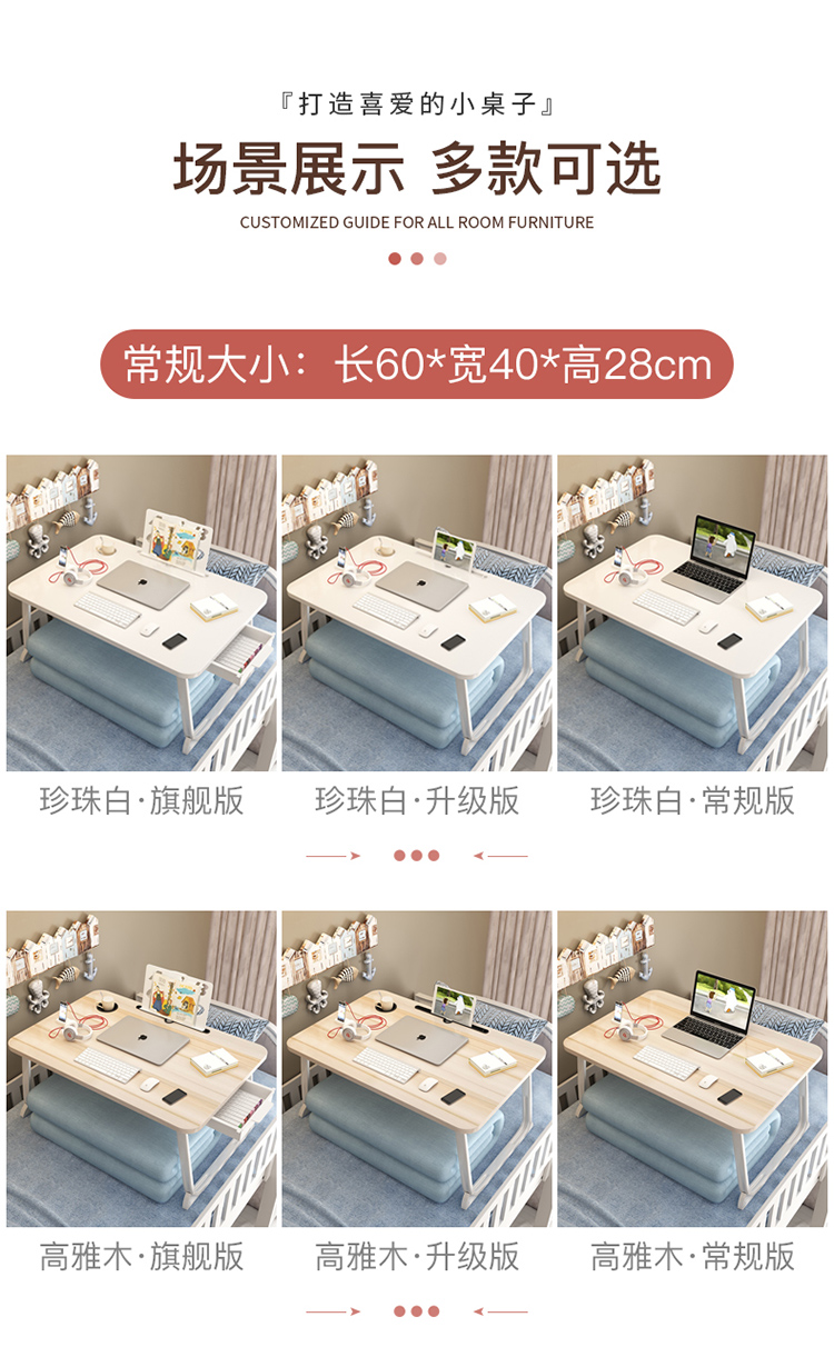 床上小桌子飘窗折叠桌学生床头宿舍书桌笔记本电脑支架办公桌懒人卧室坐地ins风学习可移动小桌板上铺桌加大