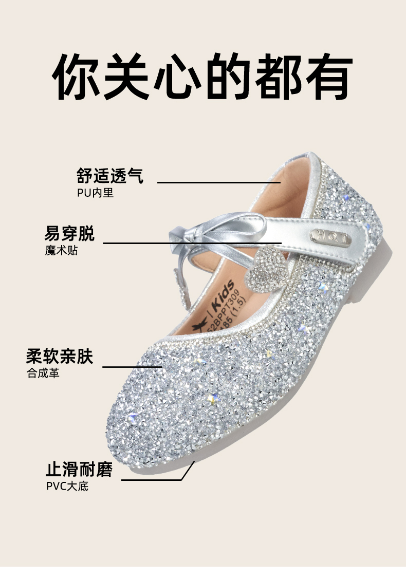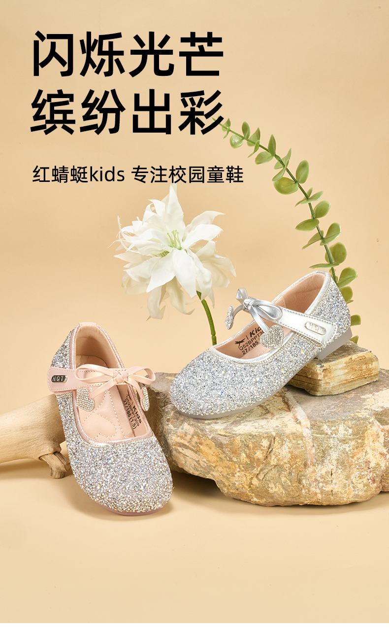 红蜻蜓女童公主鞋2025春夏新款水晶鞋闪亮爱莎鞋儿童鞋子女宝单鞋