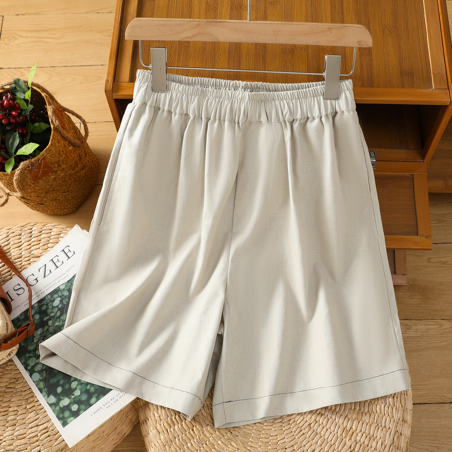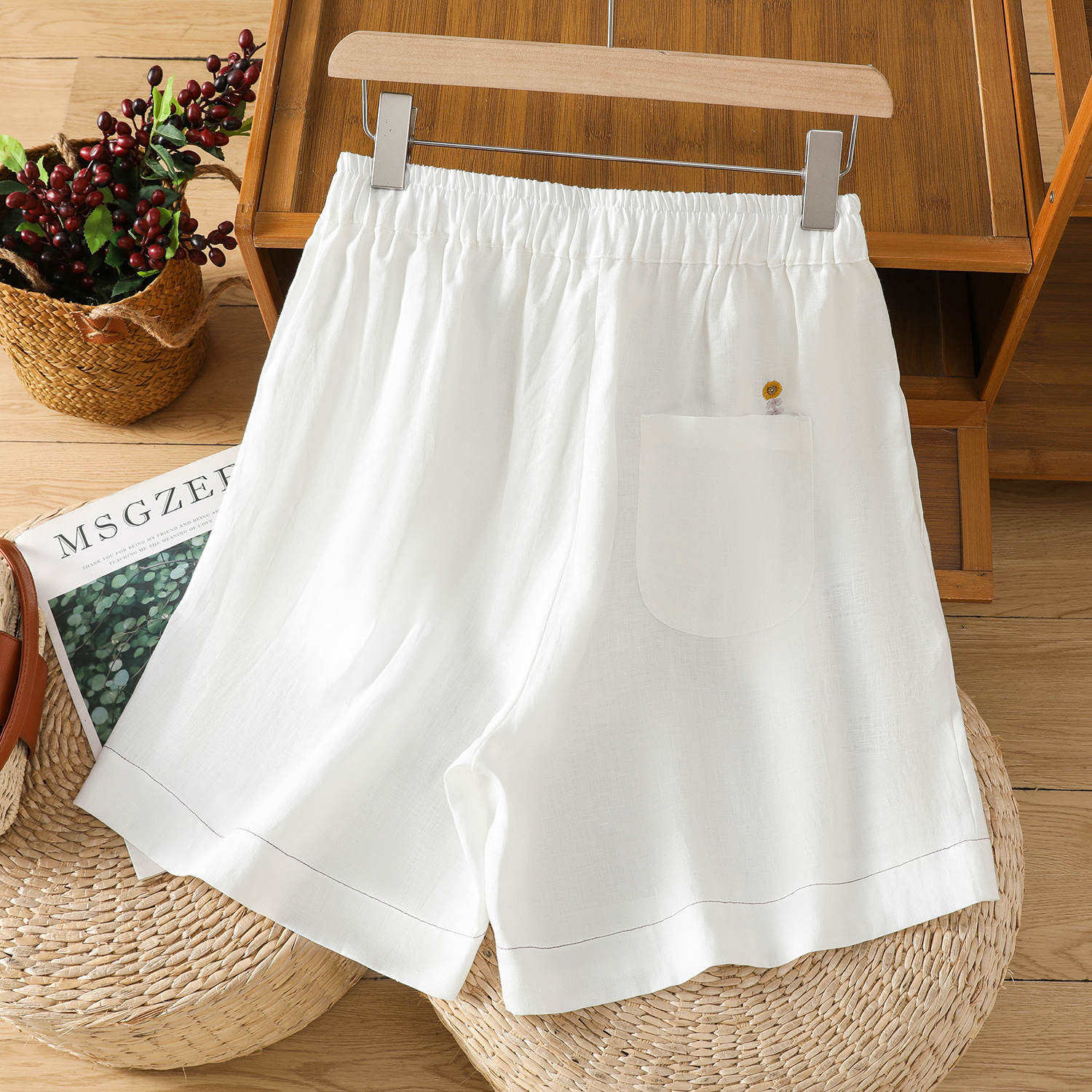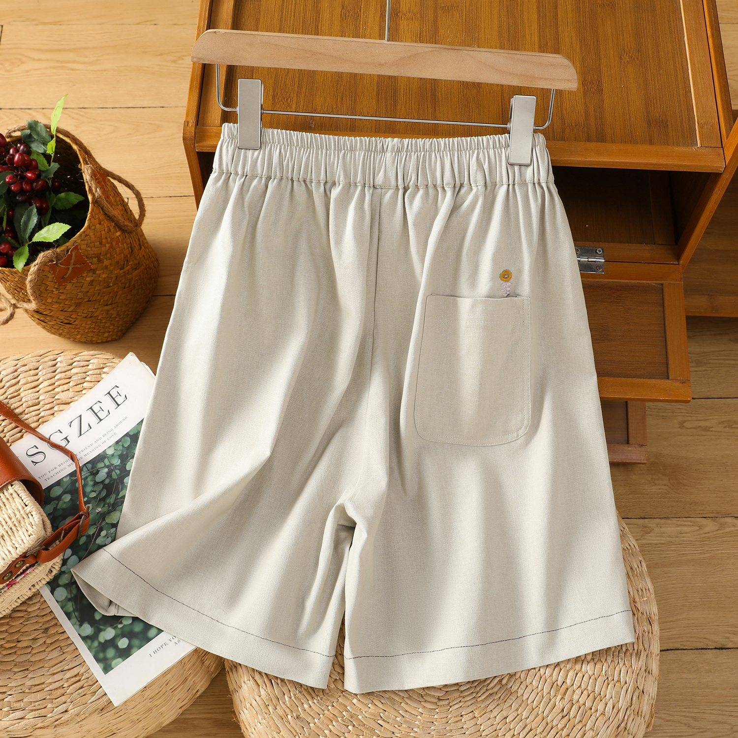 特价清仓女装亚麻休闲短裤女刺绣棉麻裤夏季松紧腰显瘦薄款五分裤