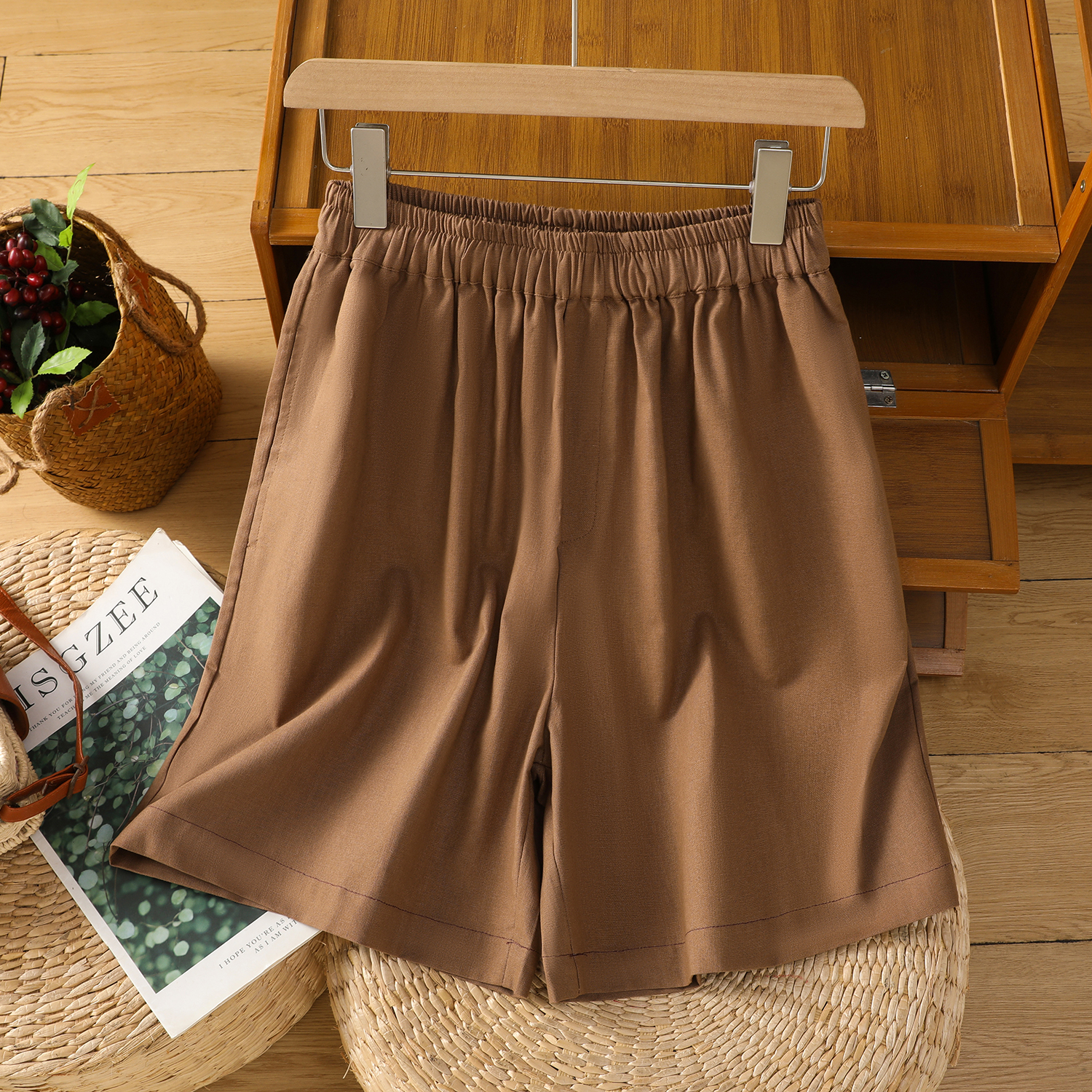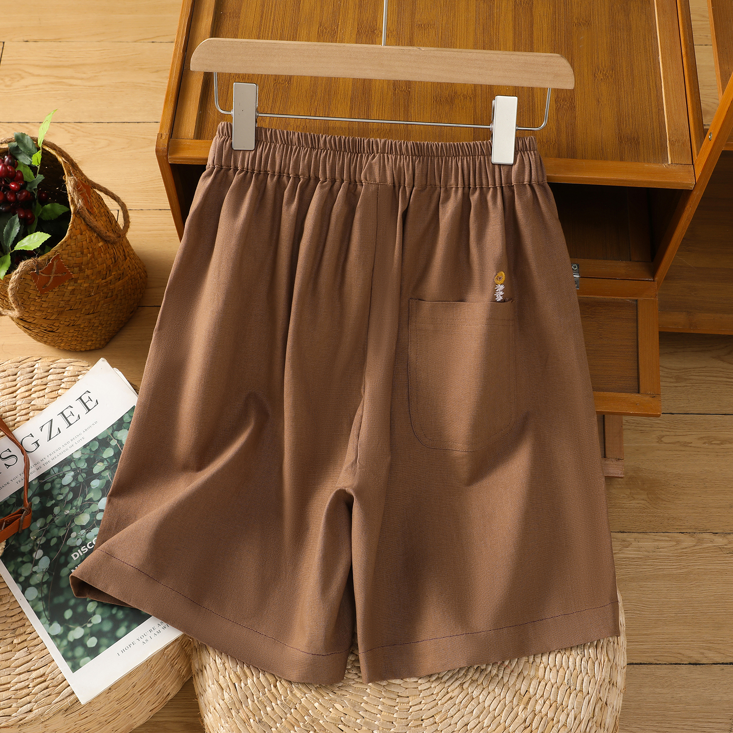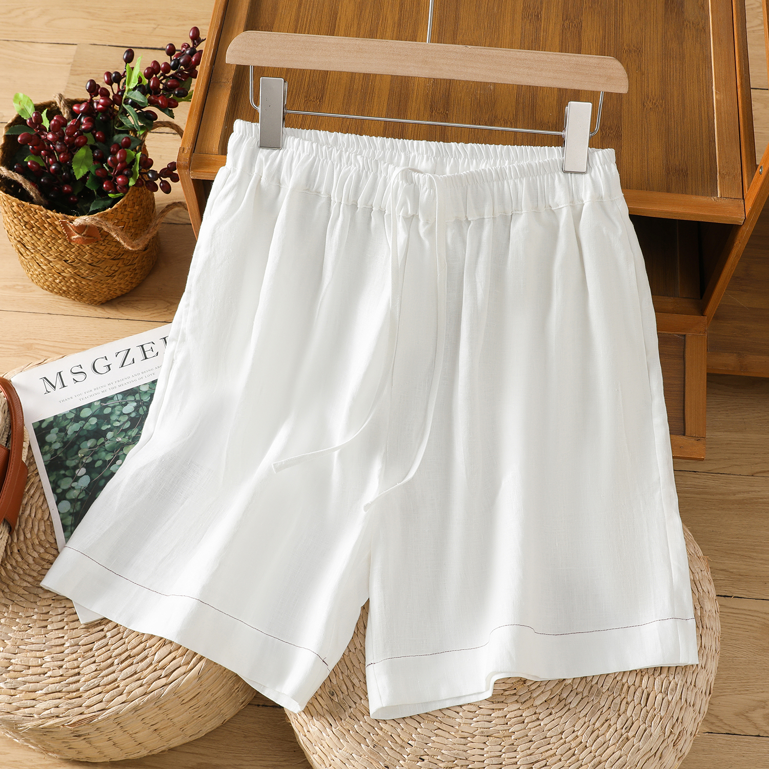 特价清仓女装亚麻休闲短裤女刺绣棉麻裤夏季松紧腰显瘦薄款五分裤