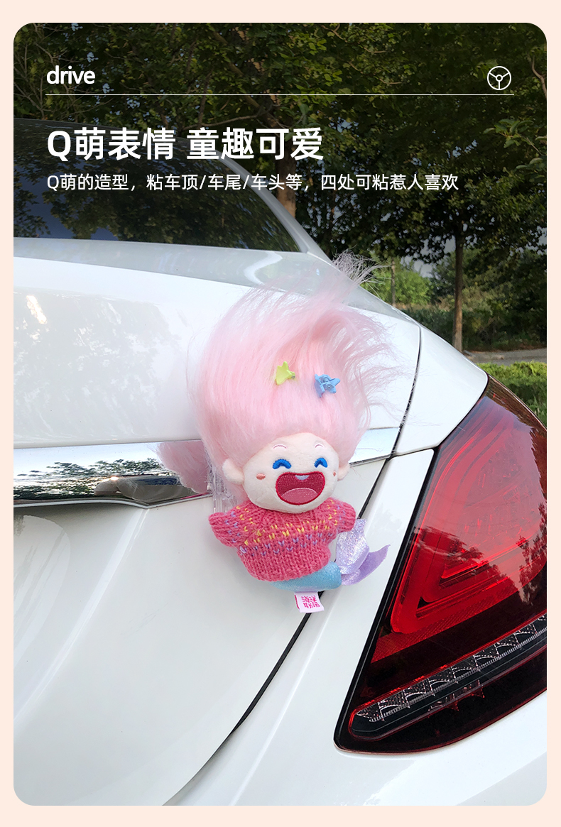 美炸了人鱼车尾公仔后备箱装饰汽车挂件车外玩偶挂车顶摆件车内饰