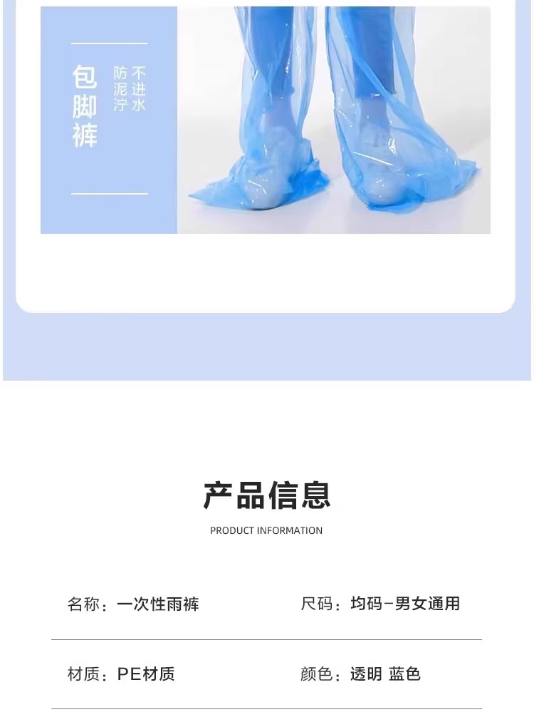 包脚一次性封脚雨裤鞋长款加厚户外便携式雨衣漂流防水裤男女通用