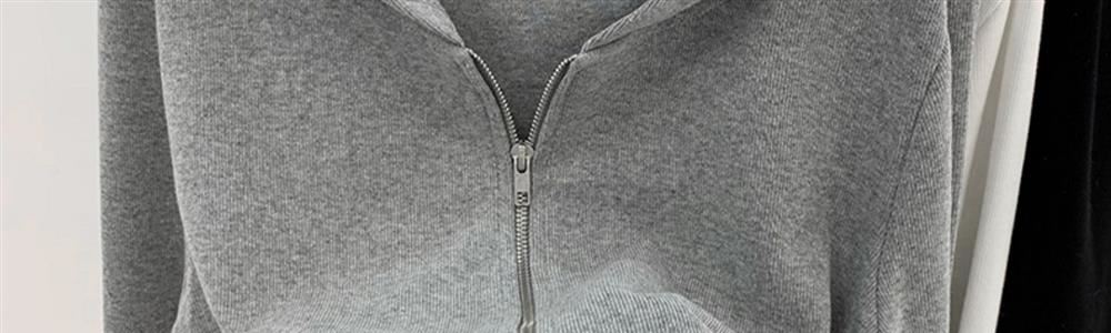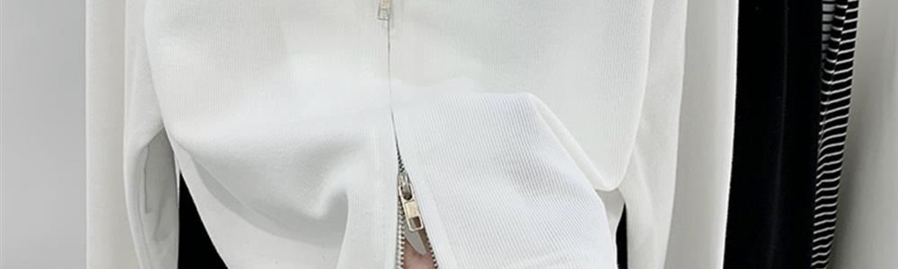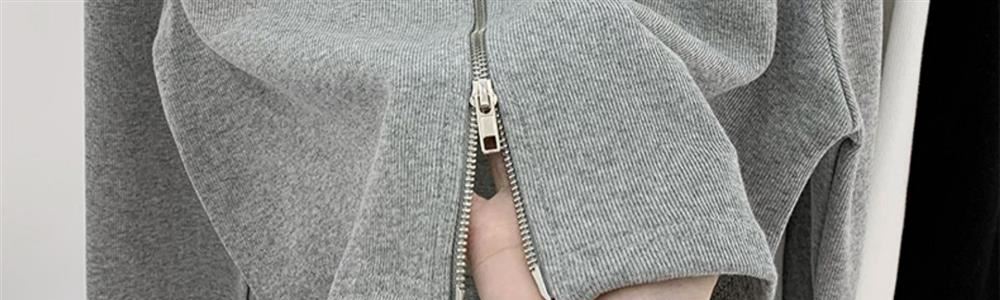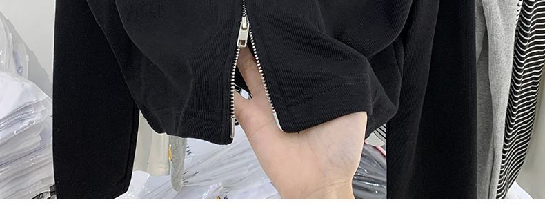 欧货设计感双拉链连帽外套女早秋2025年新款螺纹短款上衣针织开衫