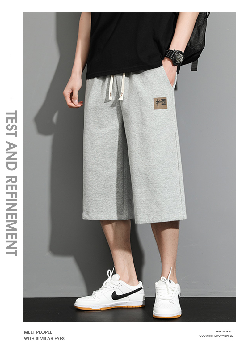 夏季七分裤男士薄款棉质宽松直筒初中生外穿跑步短裤休闲大码中裤