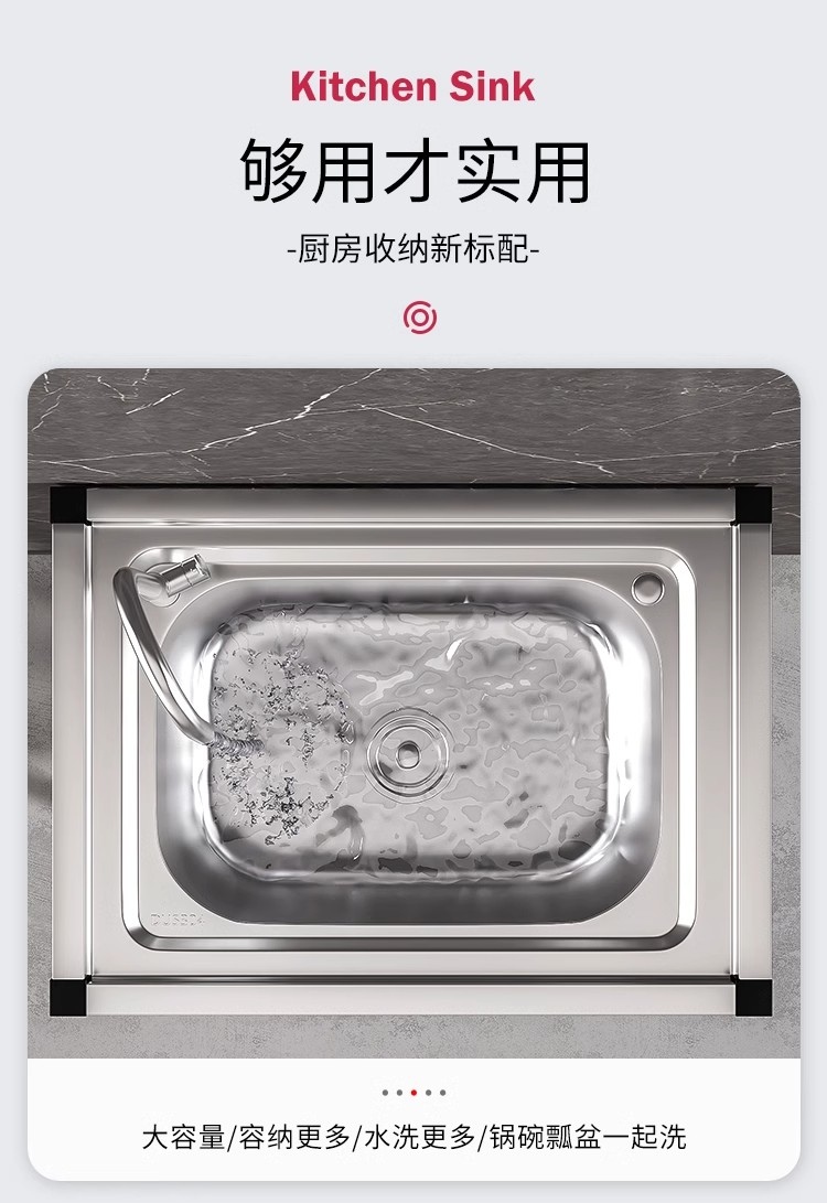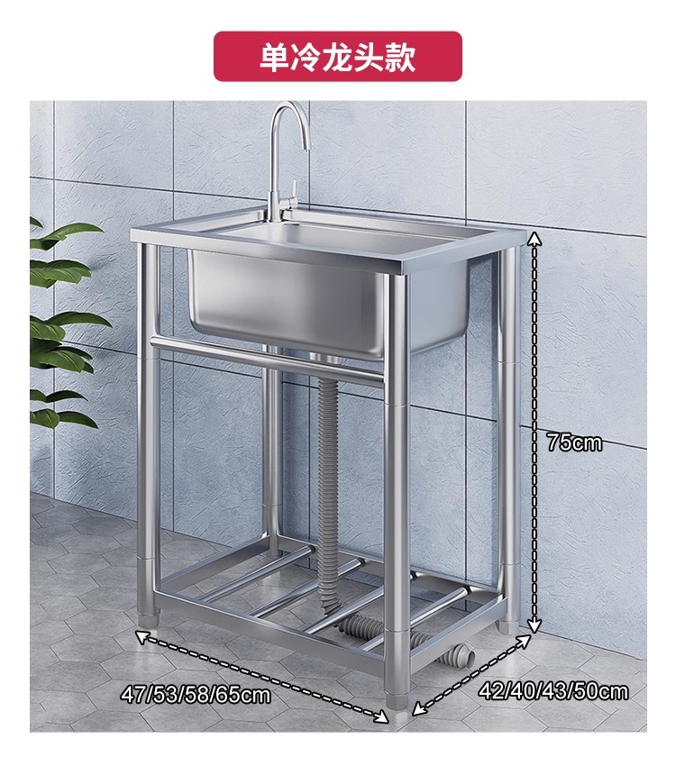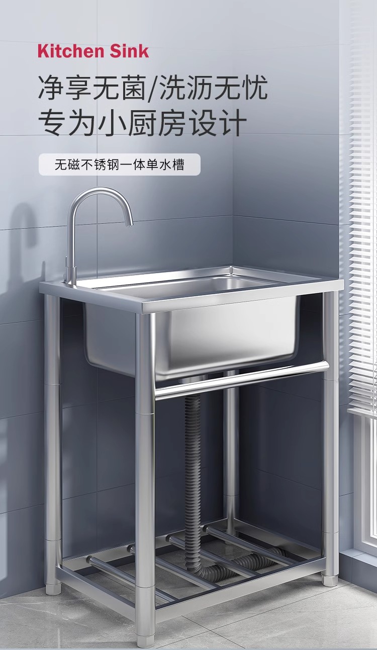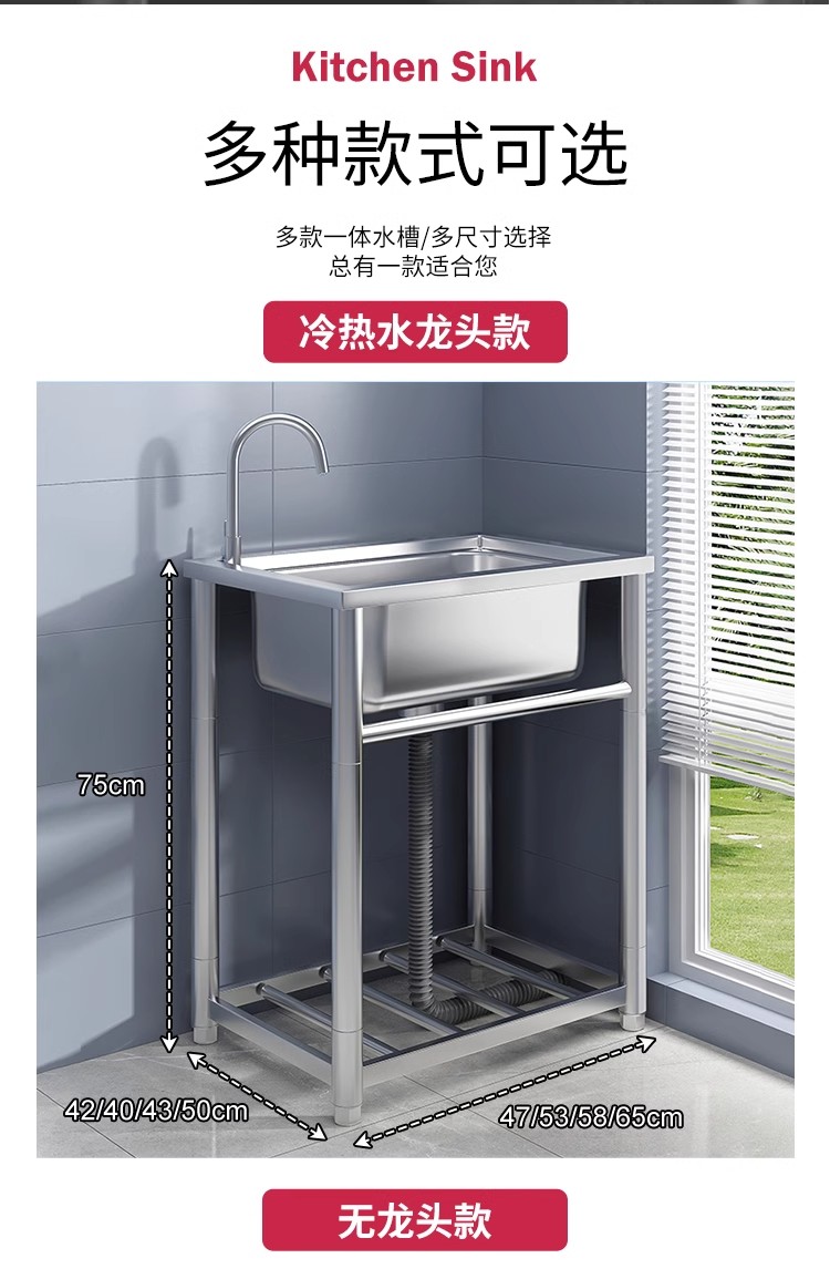 304不锈钢厨房水槽大单槽带支架家用洗菜盆加厚水池洗碗槽洗手池