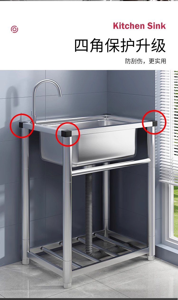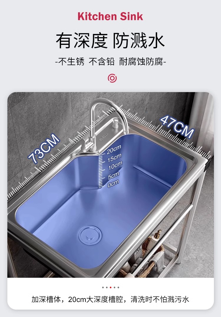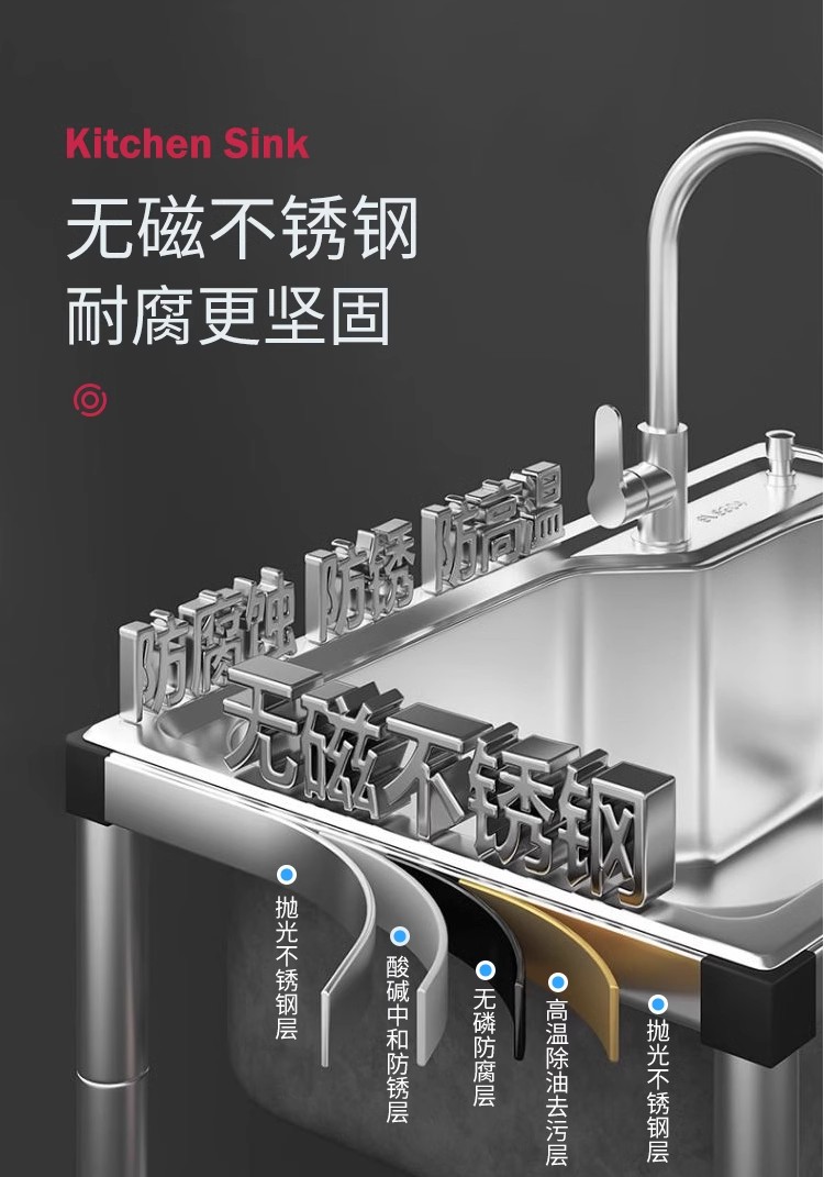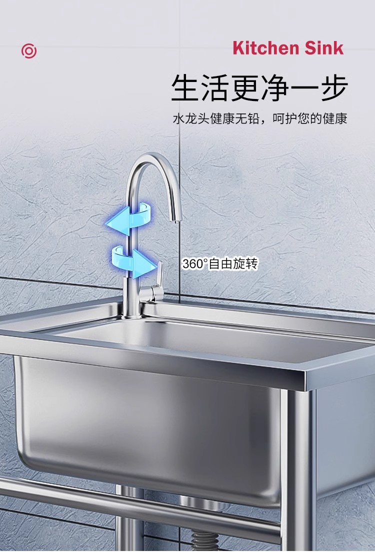 304不锈钢厨房水槽大单槽带支架家用洗菜盆加厚水池洗碗槽洗手池