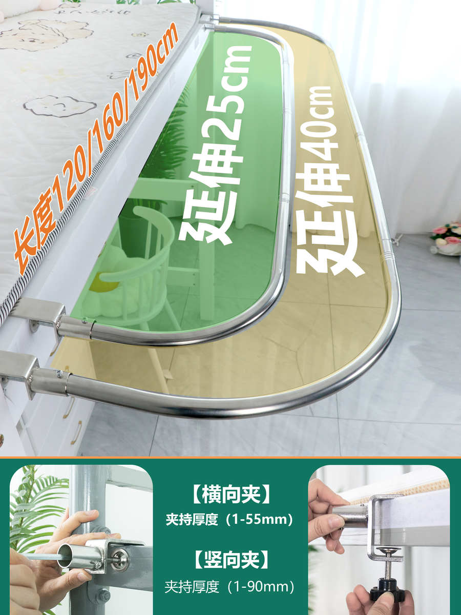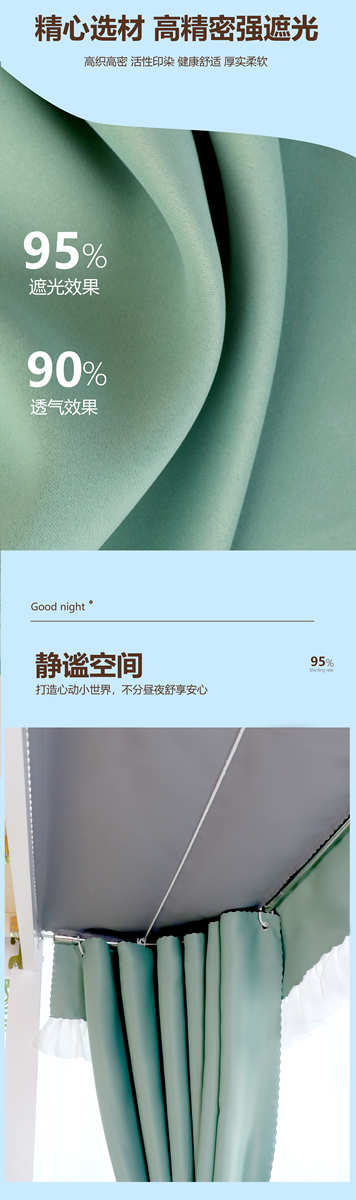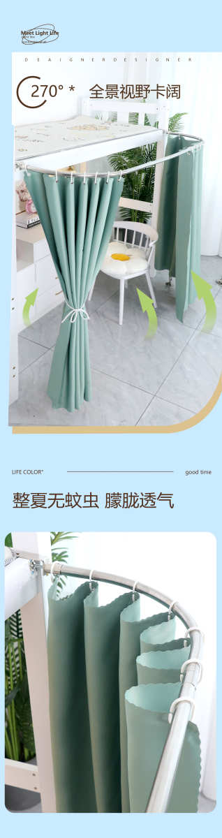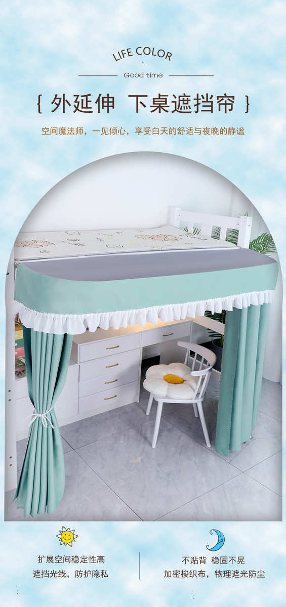 轩墨家居宿舍下桌遮挡帘u型外扩遮光布床下帘子隐私挡布滑轨支架