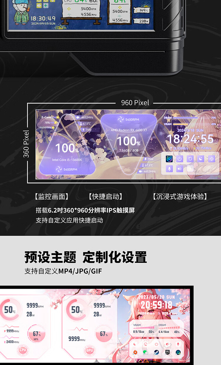 瓦尔基里VK03-M机箱曲面海景房6.2寸触摸屏台式电脑支持360水冷
