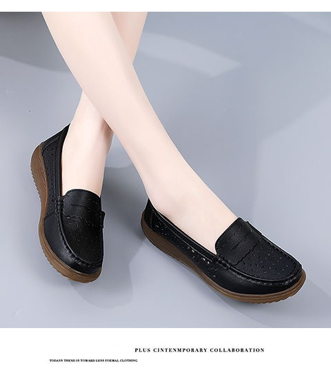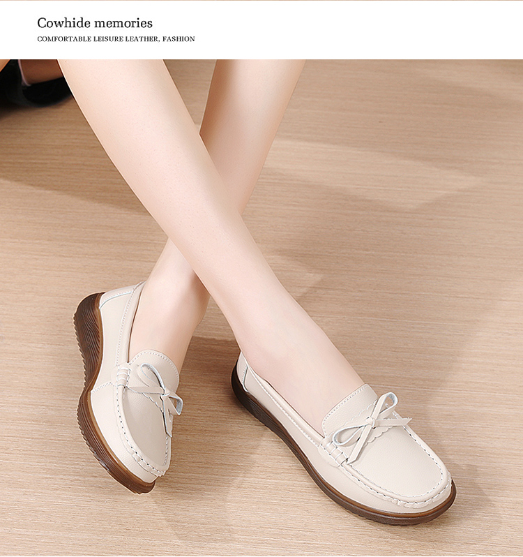 真皮豆豆鞋女2024春夏浅口平底棉鞋百搭防滑软底坡跟妈妈休闲单鞋