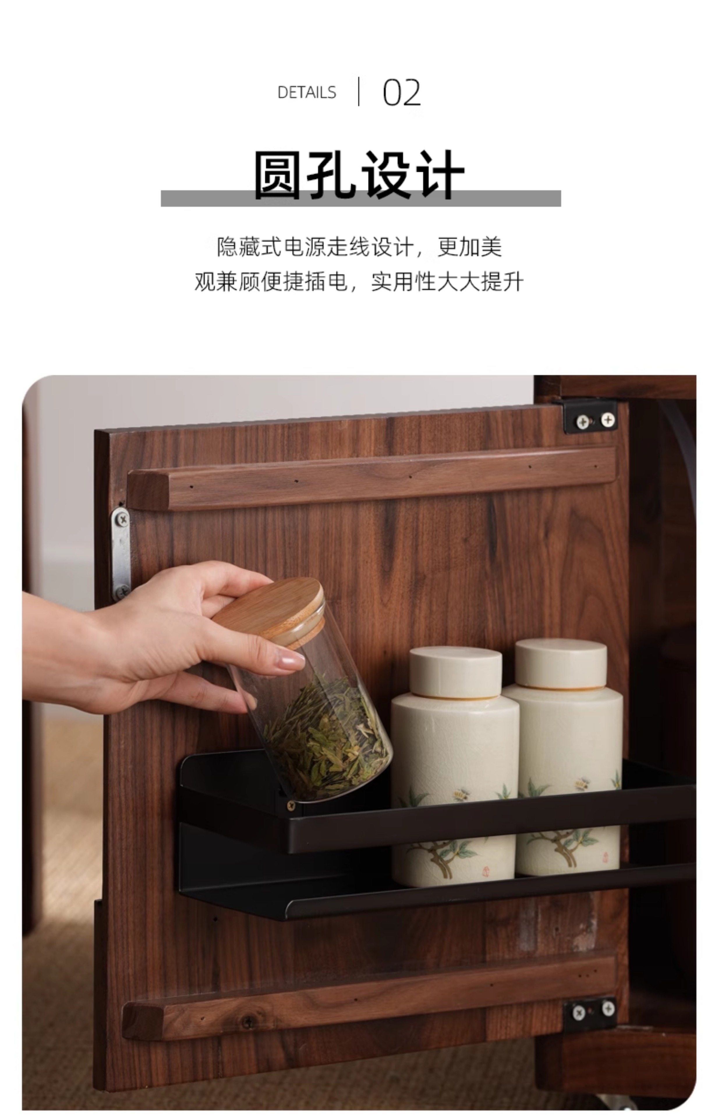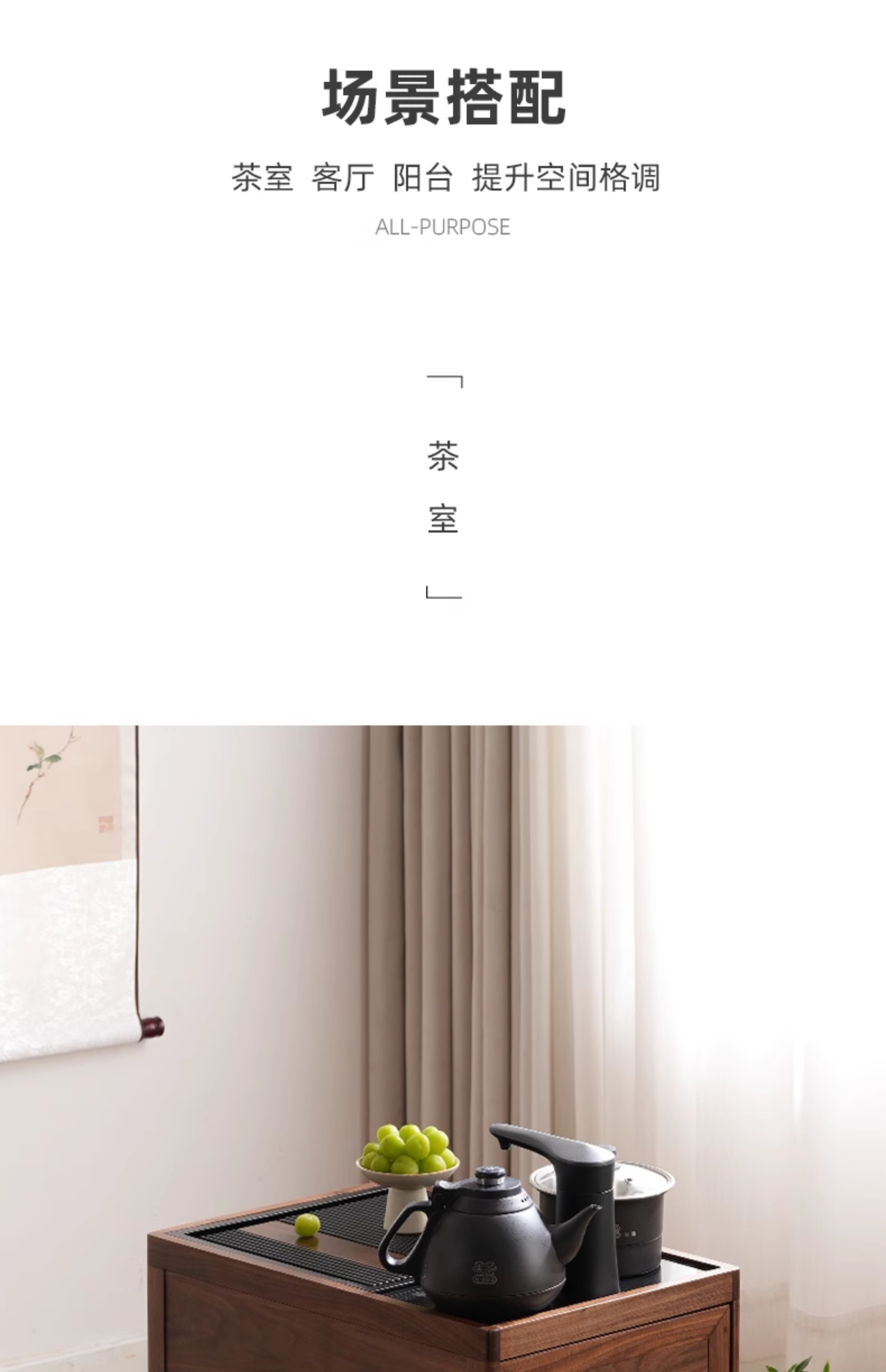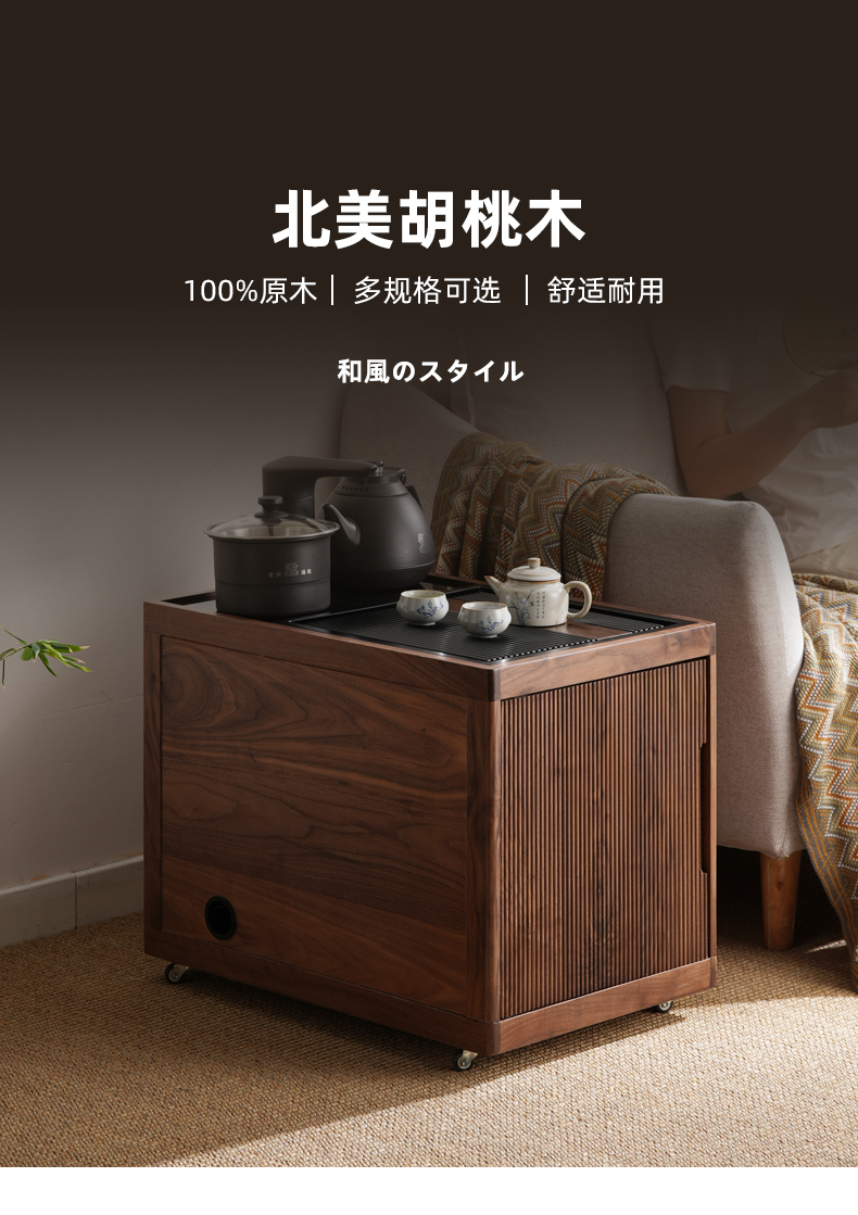 北美黑胡桃木烧水壶一体茶几边柜实木可移动边几茶水柜沙发侧边柜