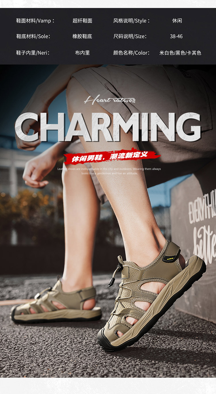 夏季新款亚马逊热销大码男鞋户外运动透气休闲男士沙滩包头凉鞋