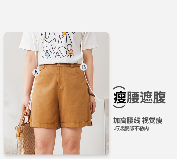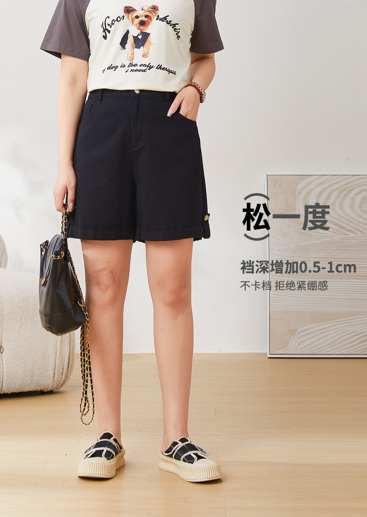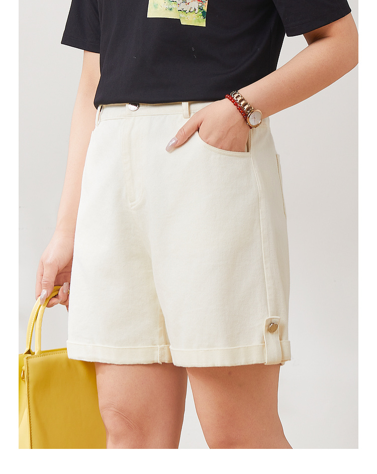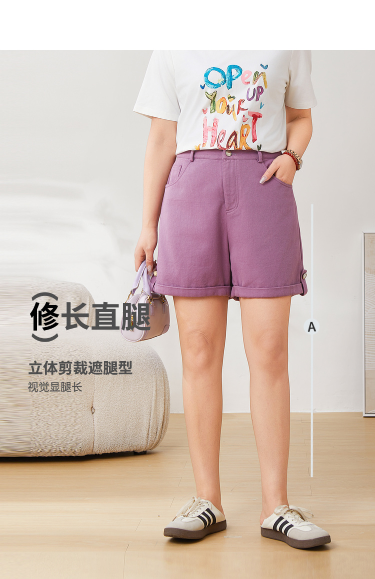 采多宝高端大码女装胖mm显瘦舒适穿搭夏季新款宽松卷边牛仔短裤潮