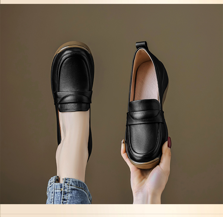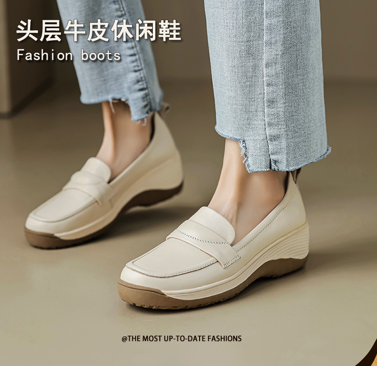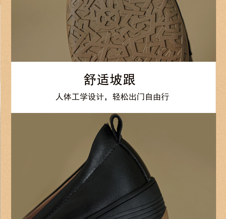 红青蜓一脚蹬休闲单鞋女坡跟软底妈妈鞋2025春新款温州真皮小皮鞋