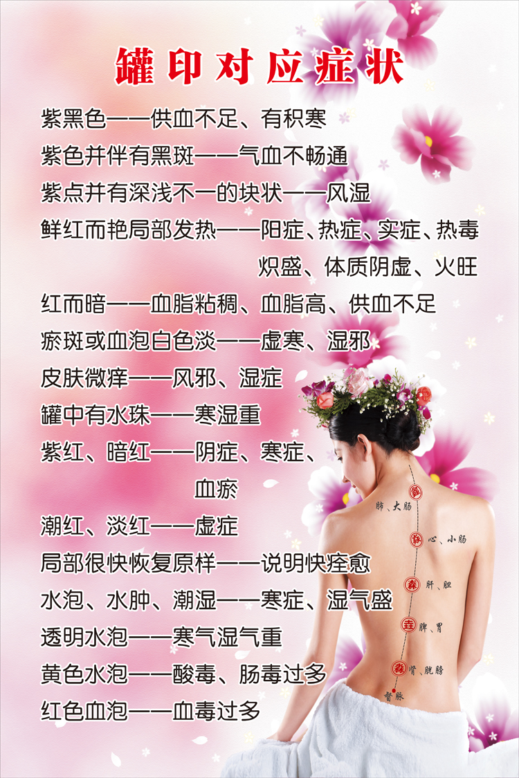 罐印对应症状中医养生馆美容院艾灸拔罐脊椎肩颈保养宣传海报挂图