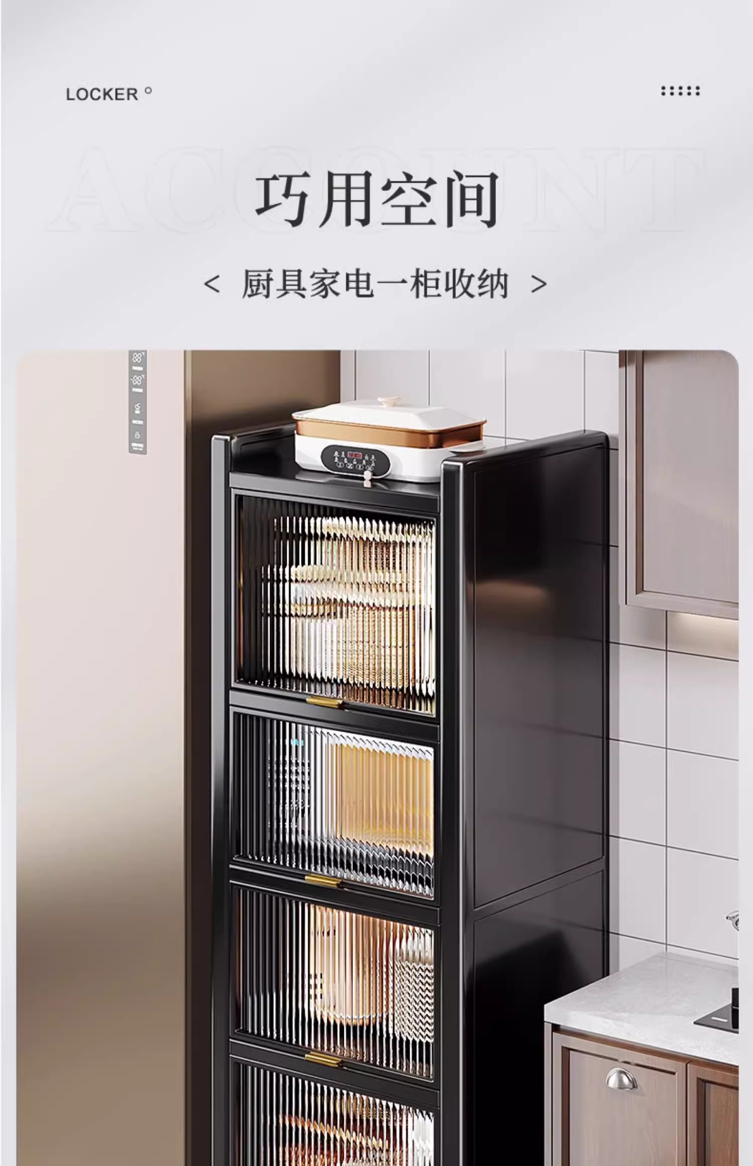 厨房置物架落地多层微波炉收纳橱柜置物柜多功能储物夹缝极窄收纳