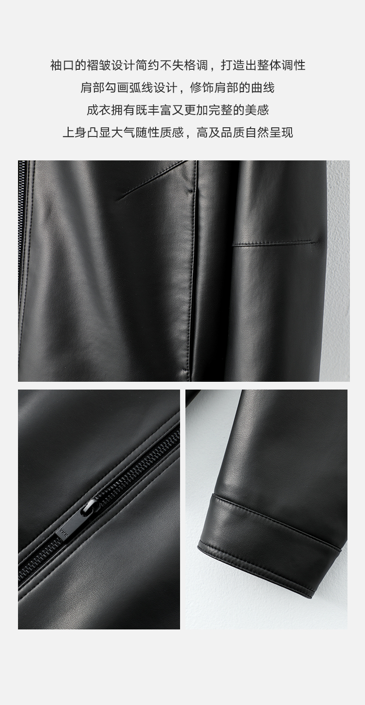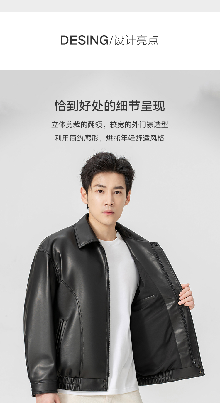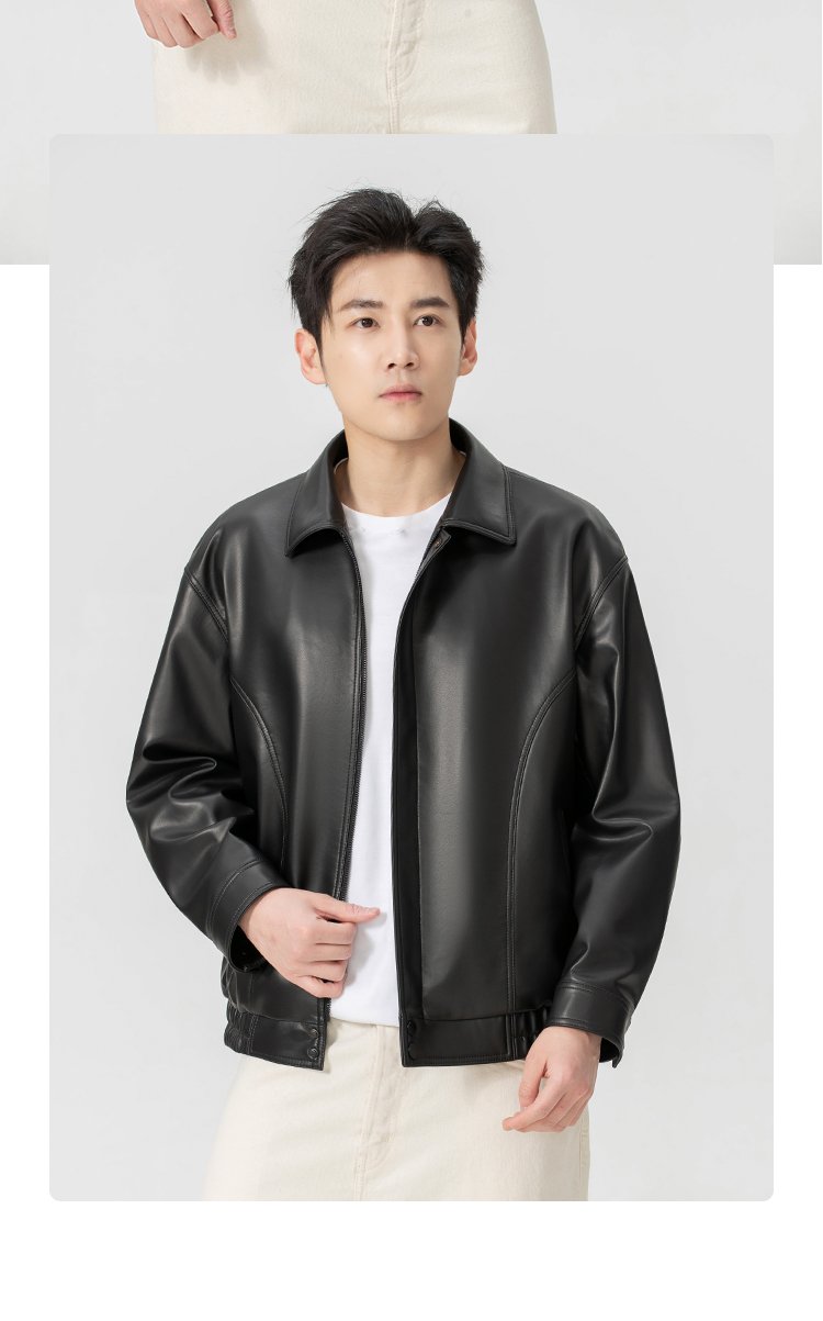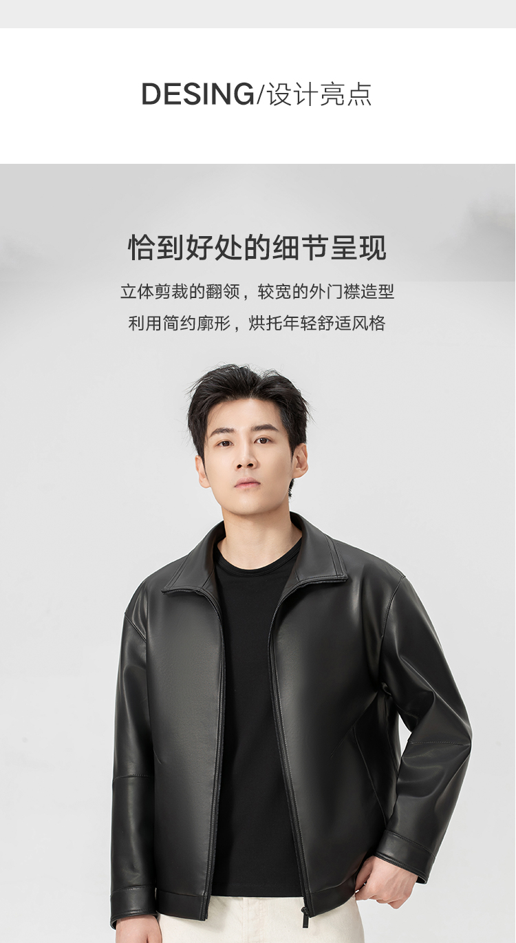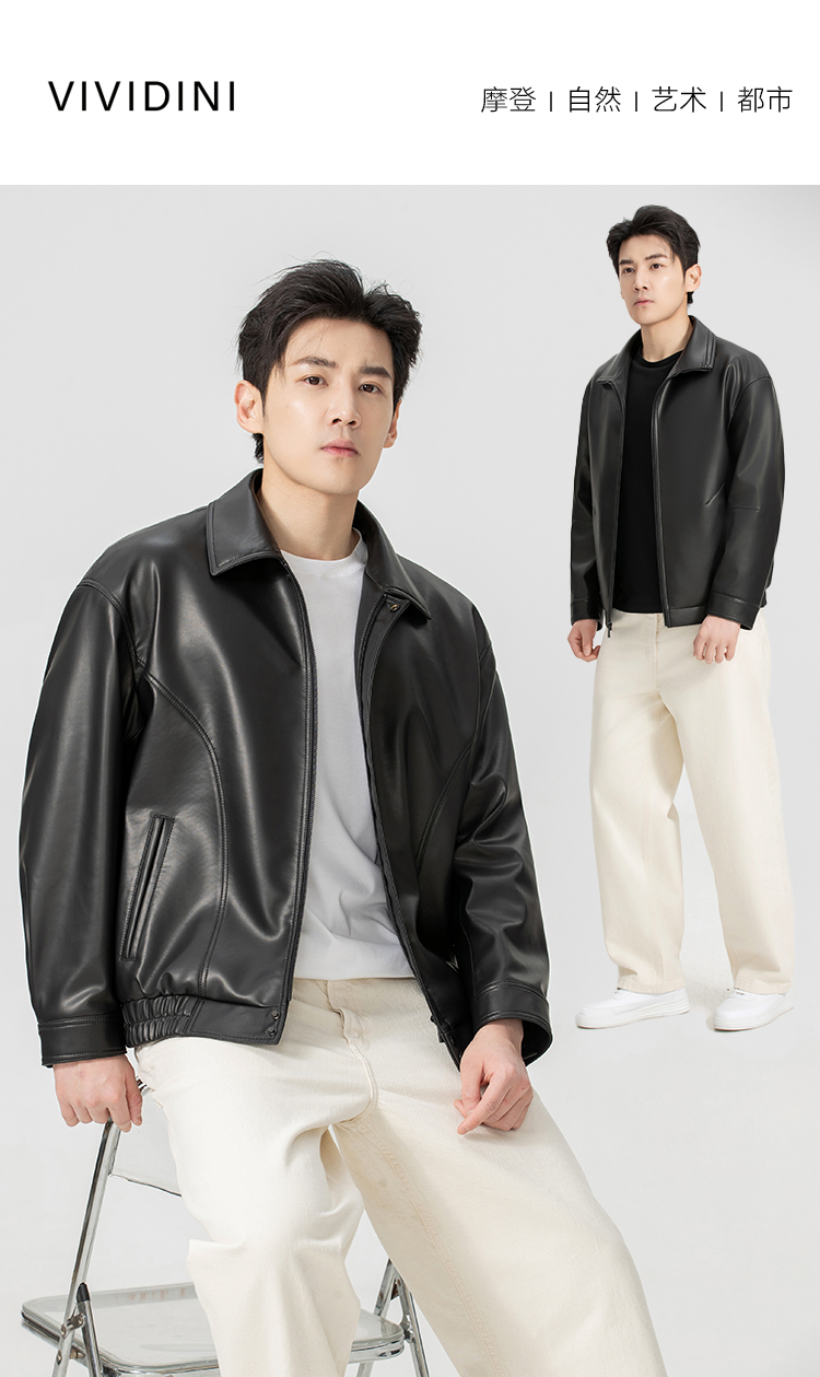 VIVIDINI 男士翻领绵羊皮单皮皮衣外套