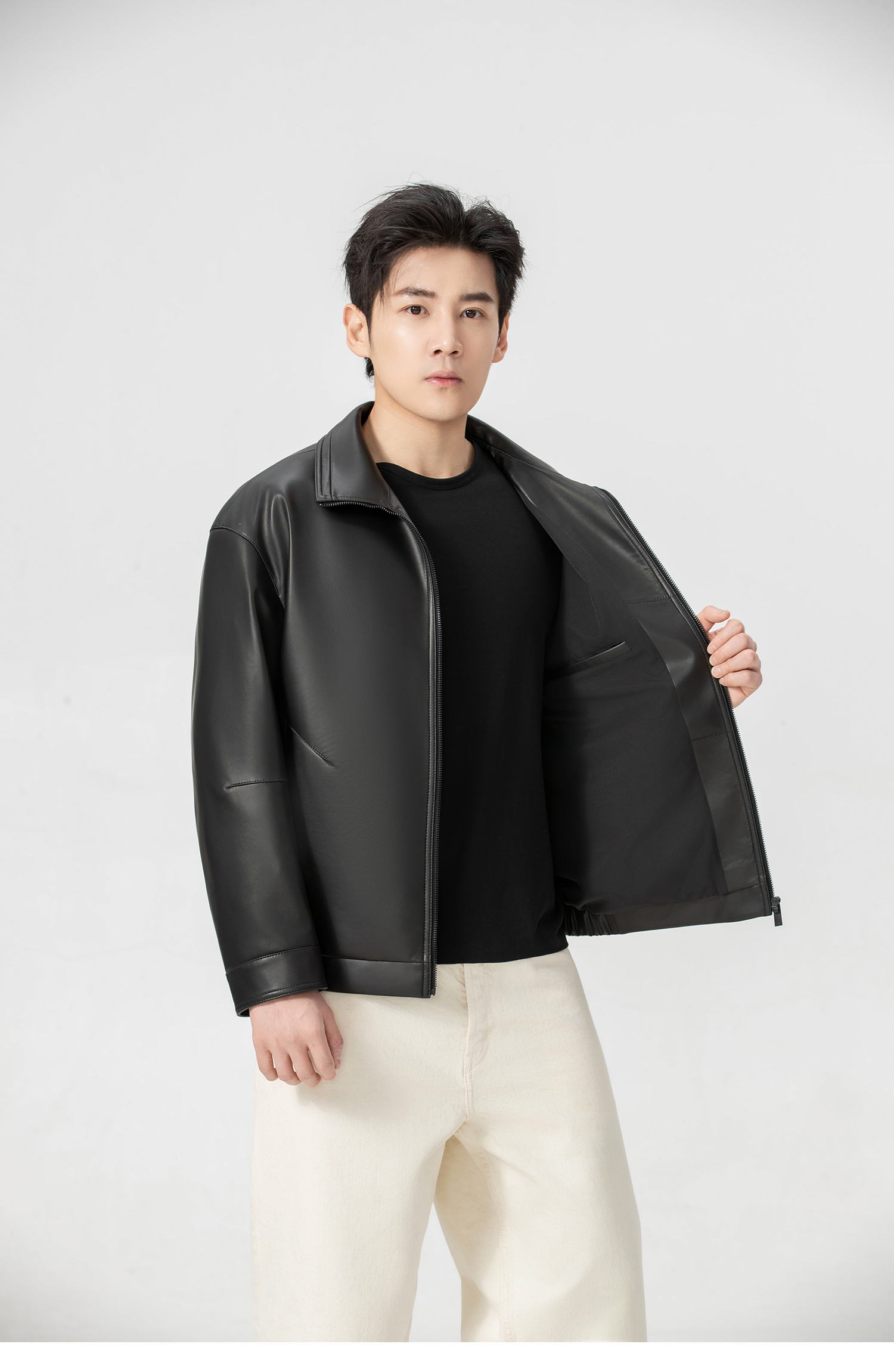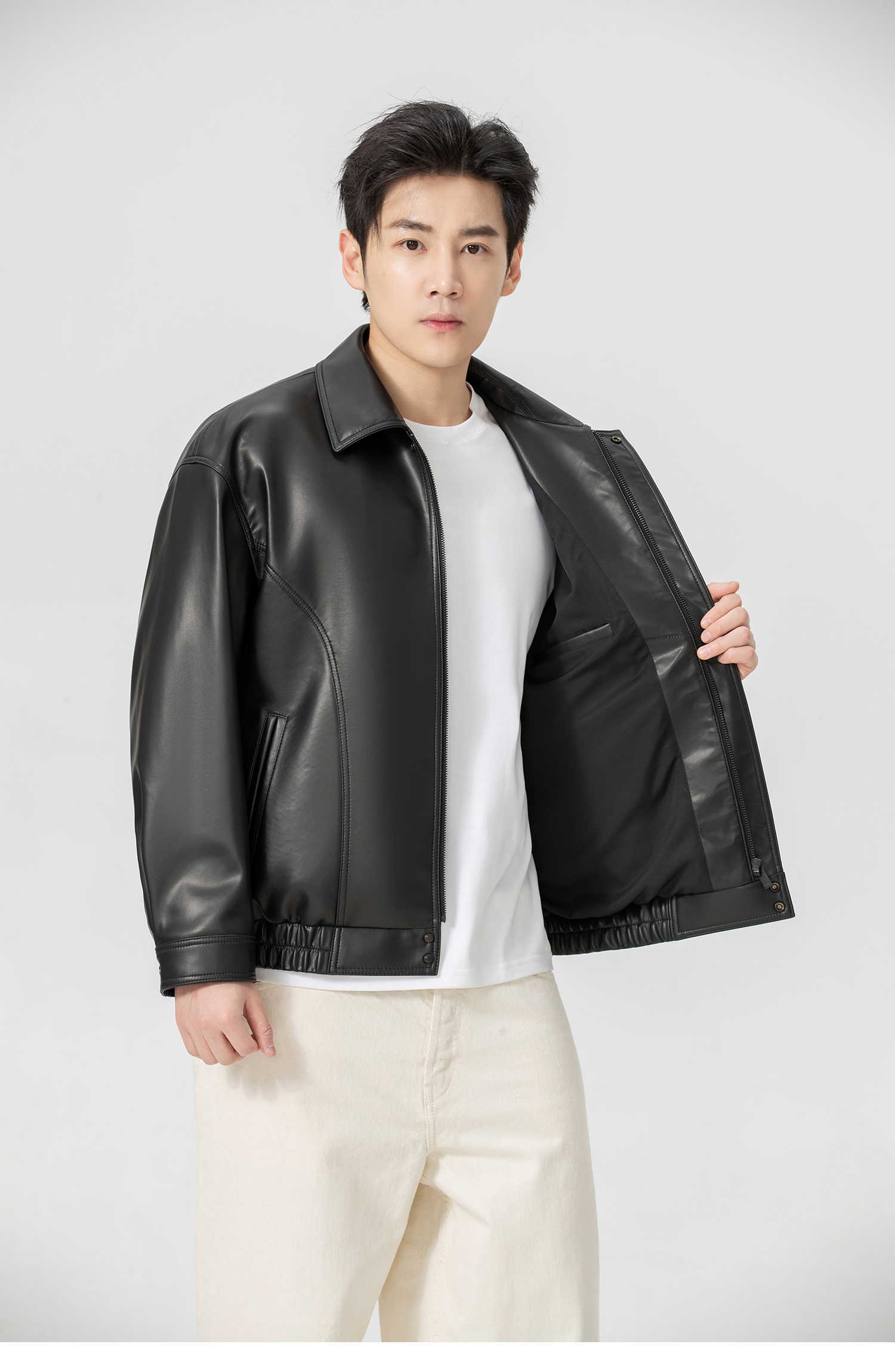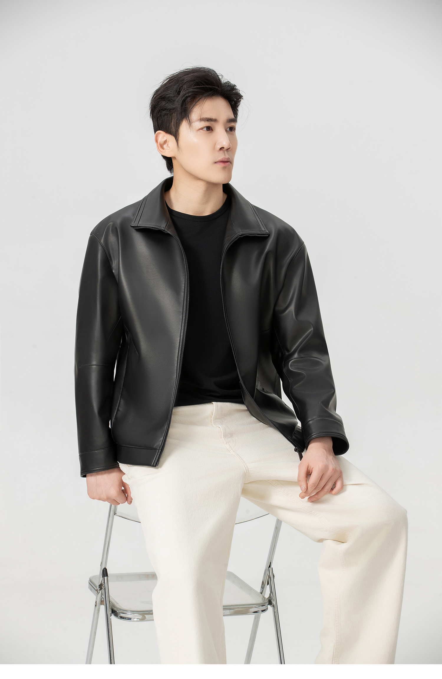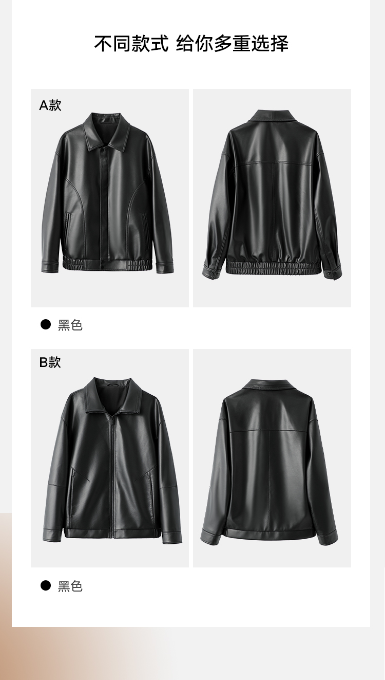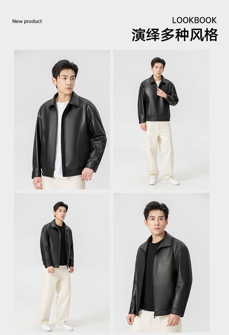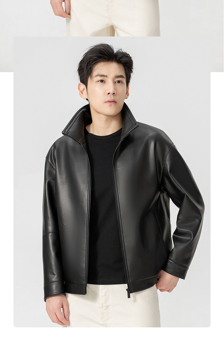 VIVIDINI 男士翻领绵羊皮单皮皮衣外套