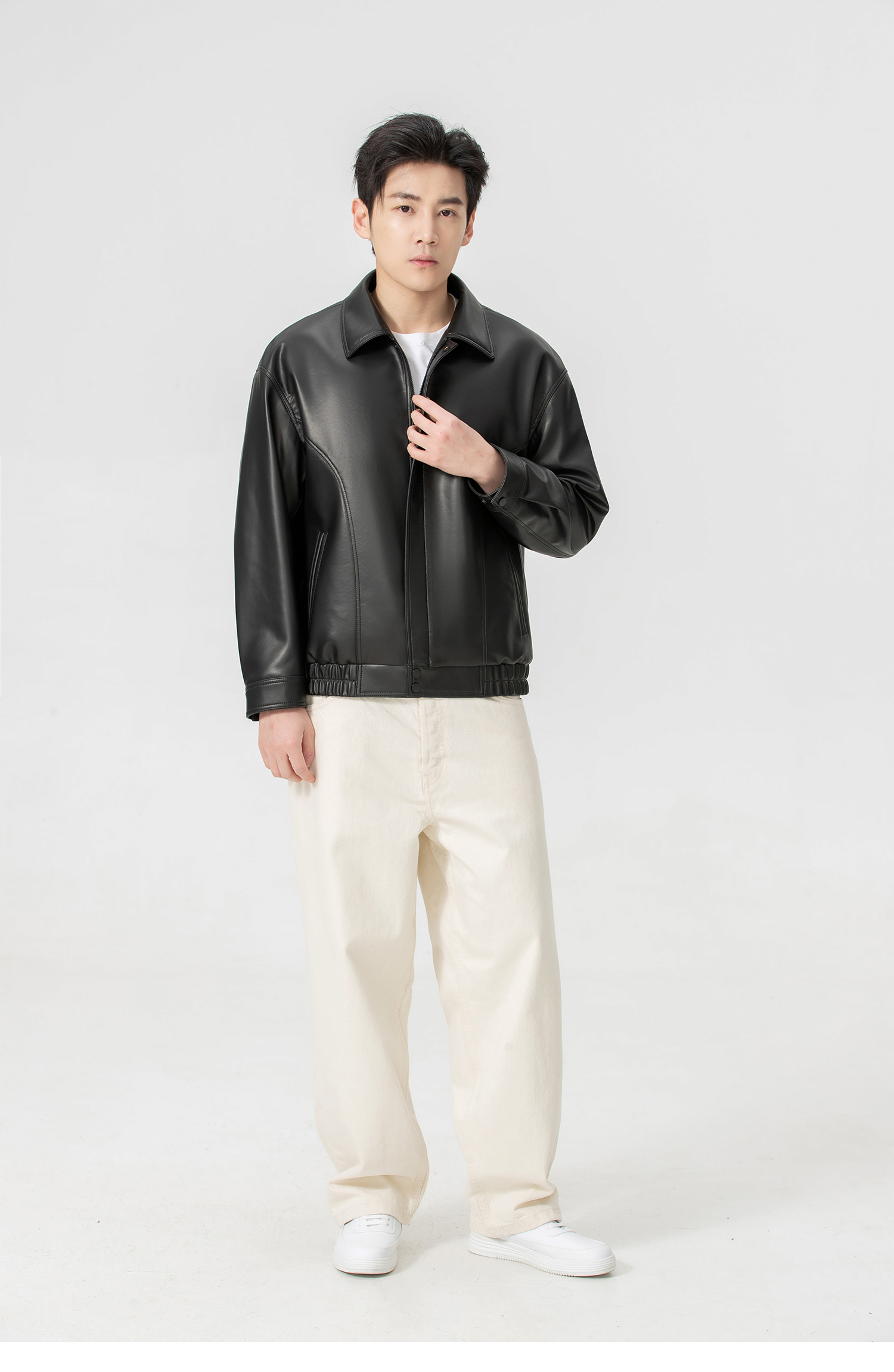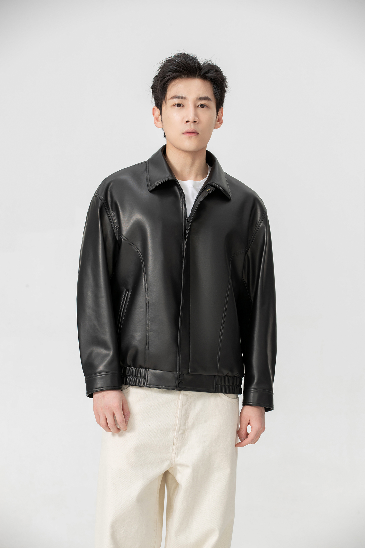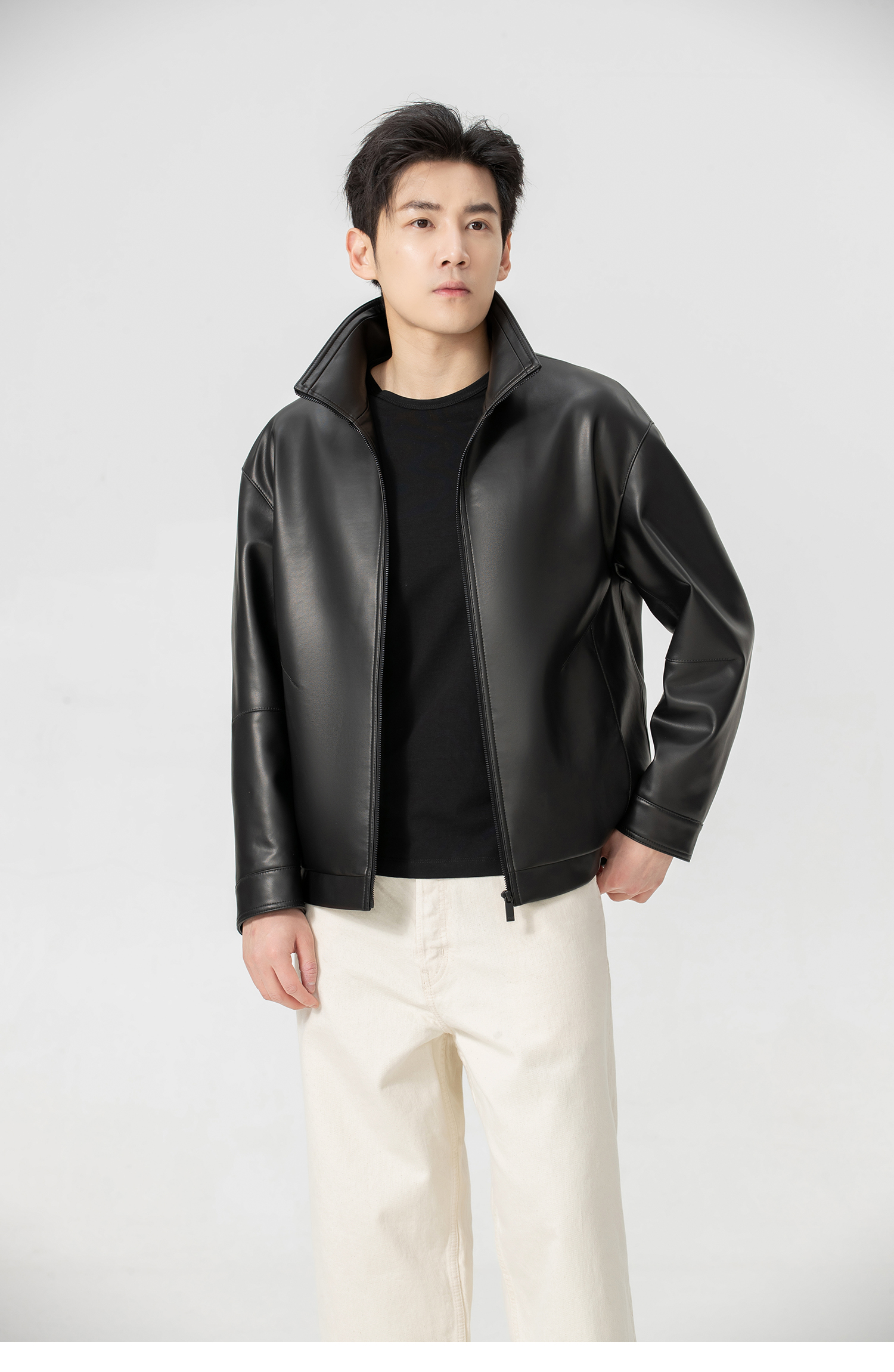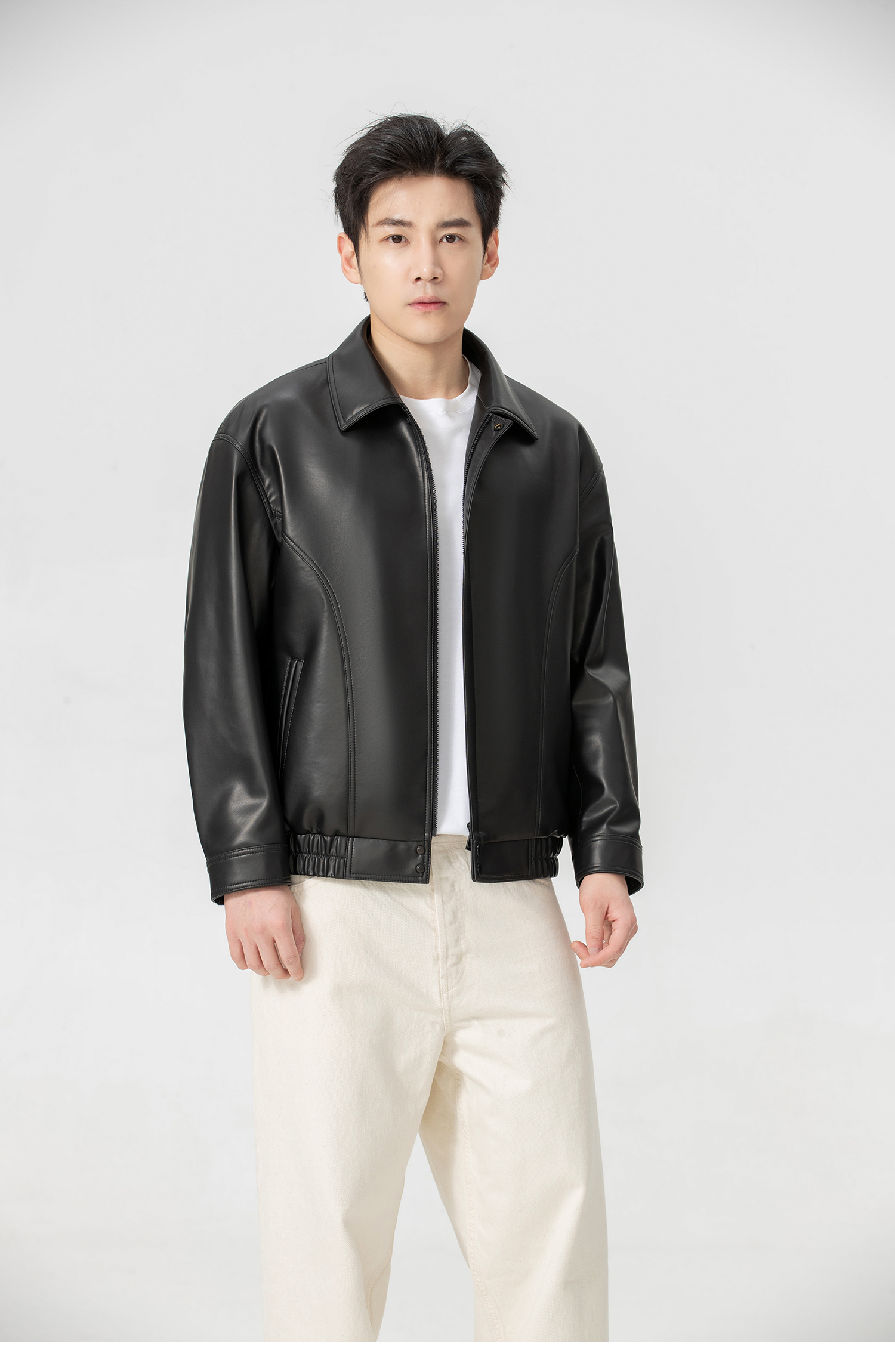 VIVIDINI 男士翻领绵羊皮单皮皮衣外套
