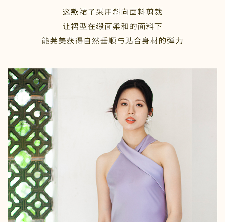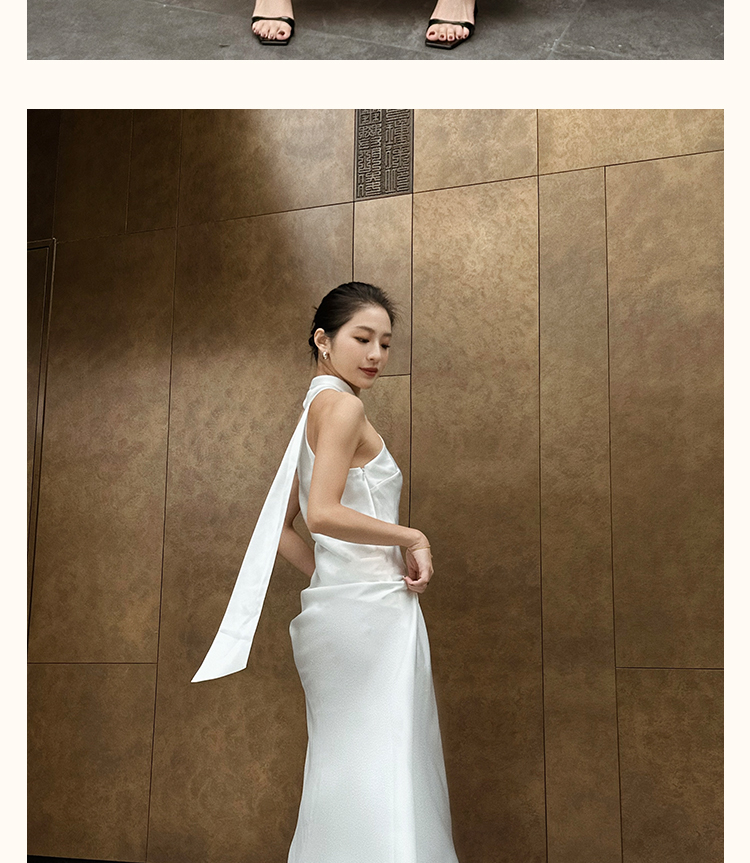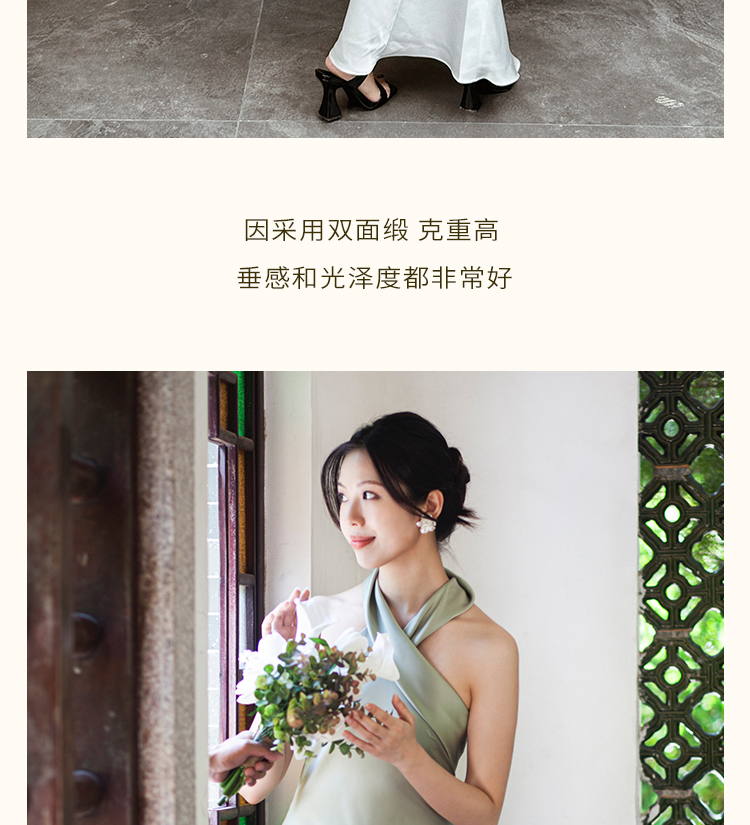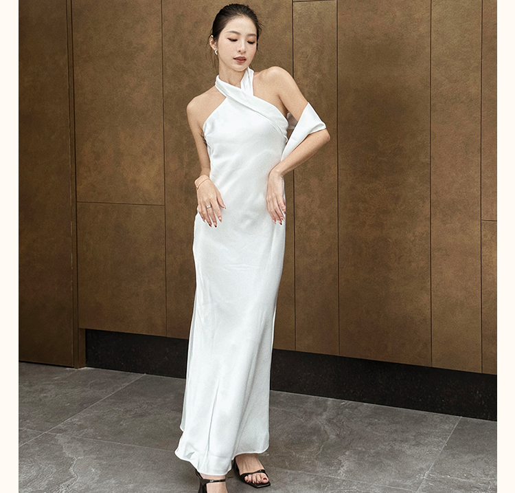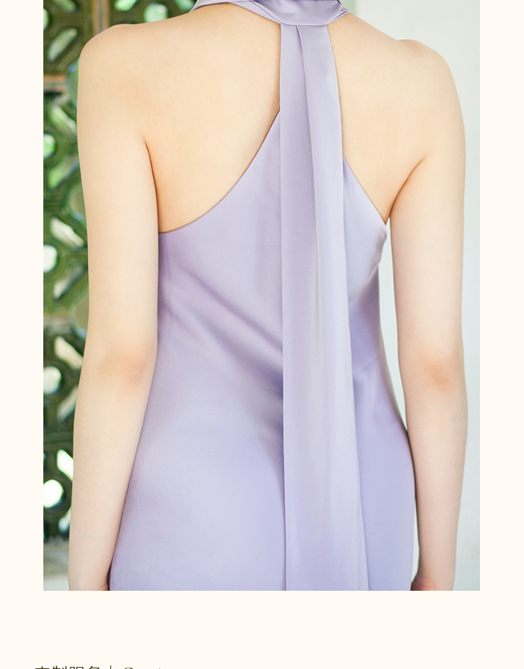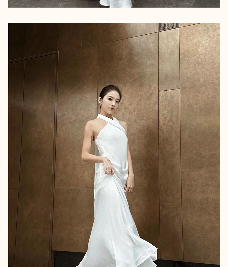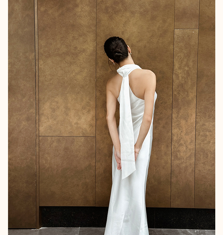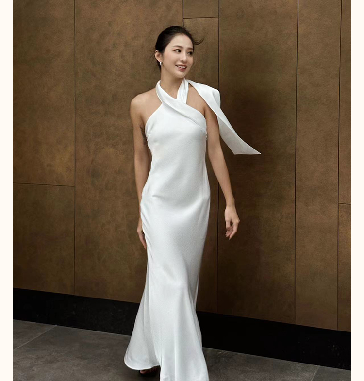 之既offical不对称挂脖缎面新娘晨袍小众高级轻奢伴娘晚礼服