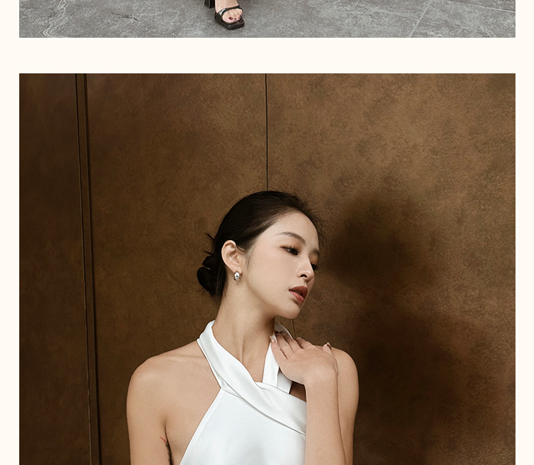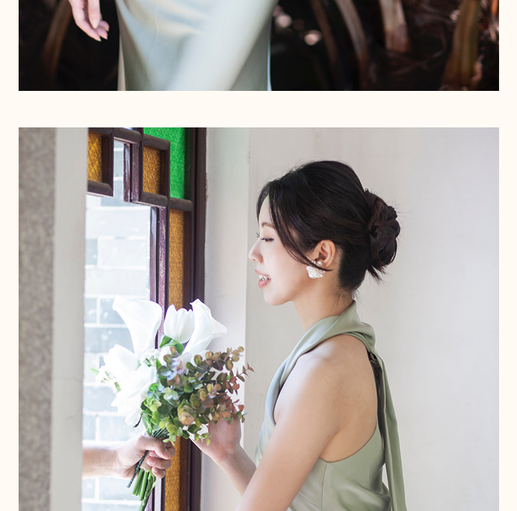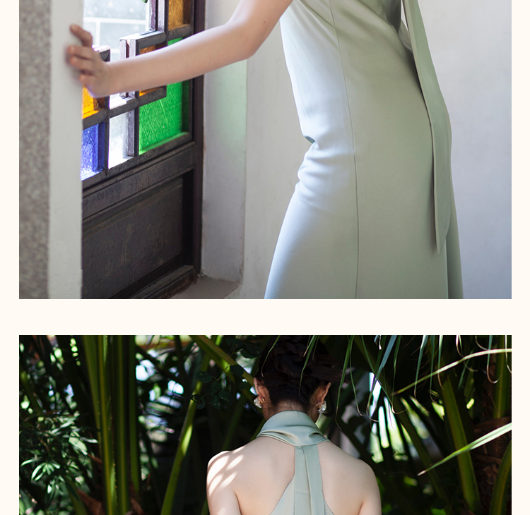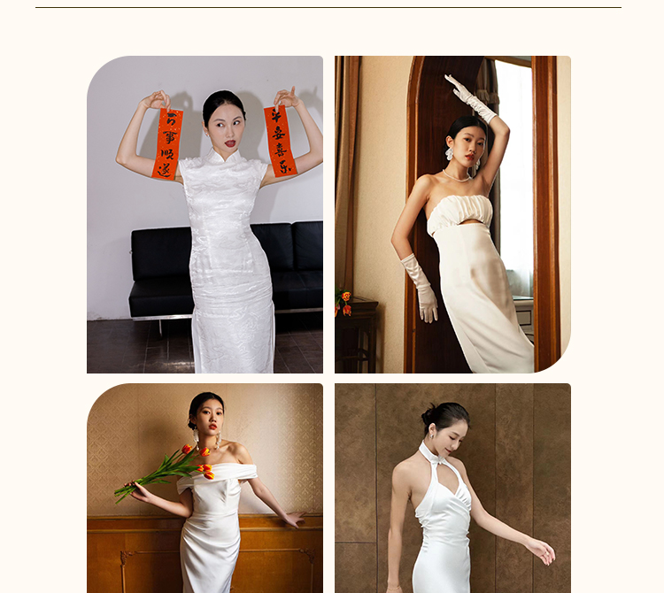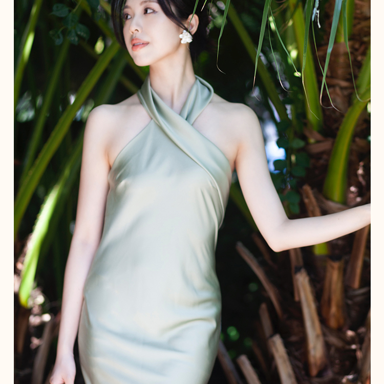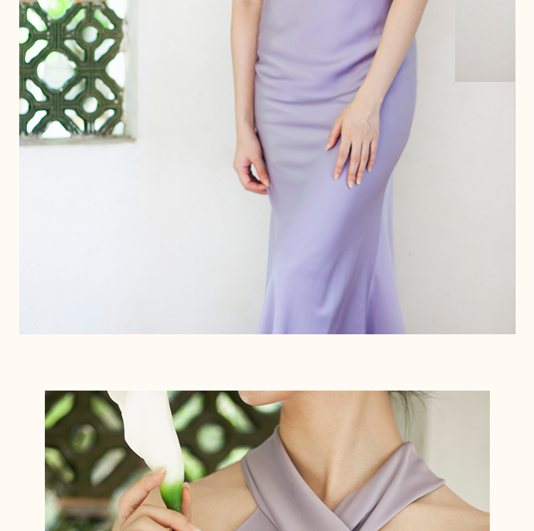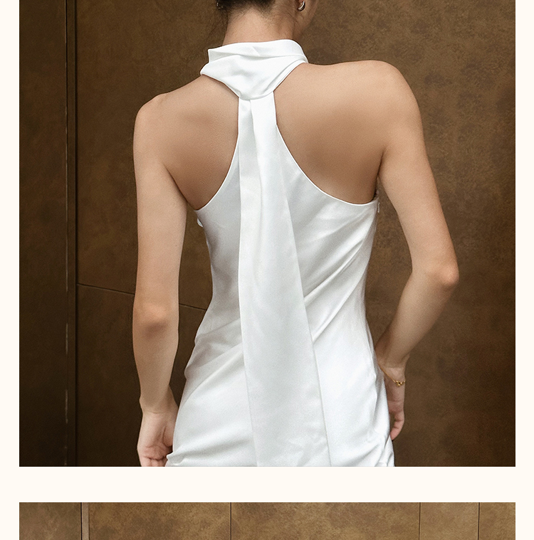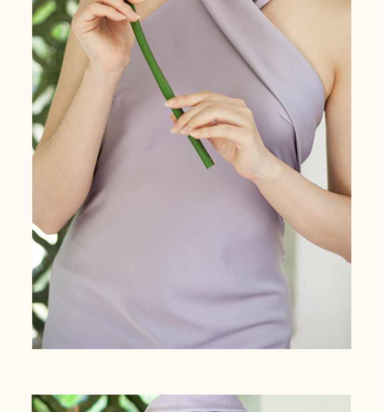 之既offical不对称挂脖缎面新娘晨袍小众高级轻奢伴娘晚礼服