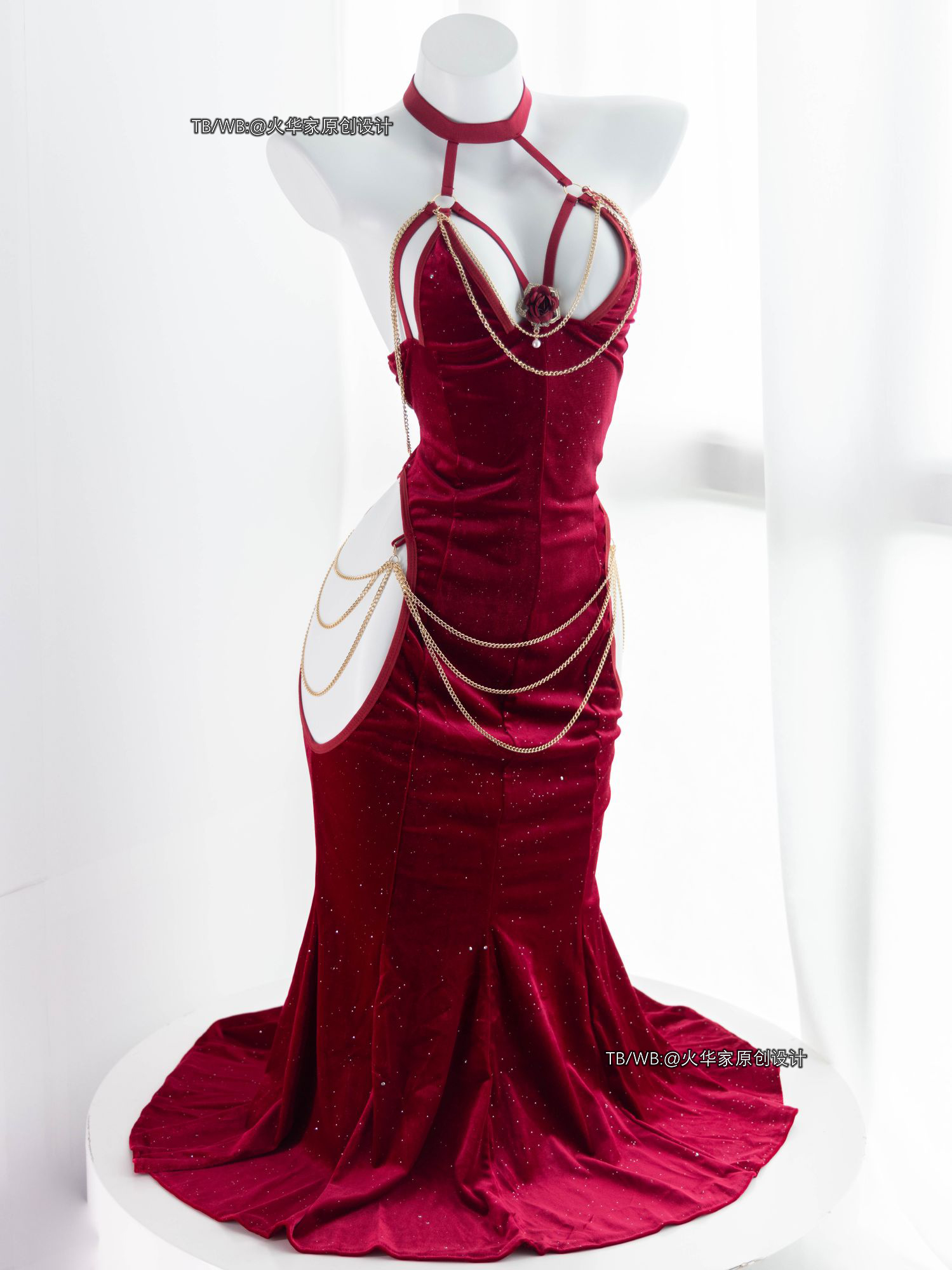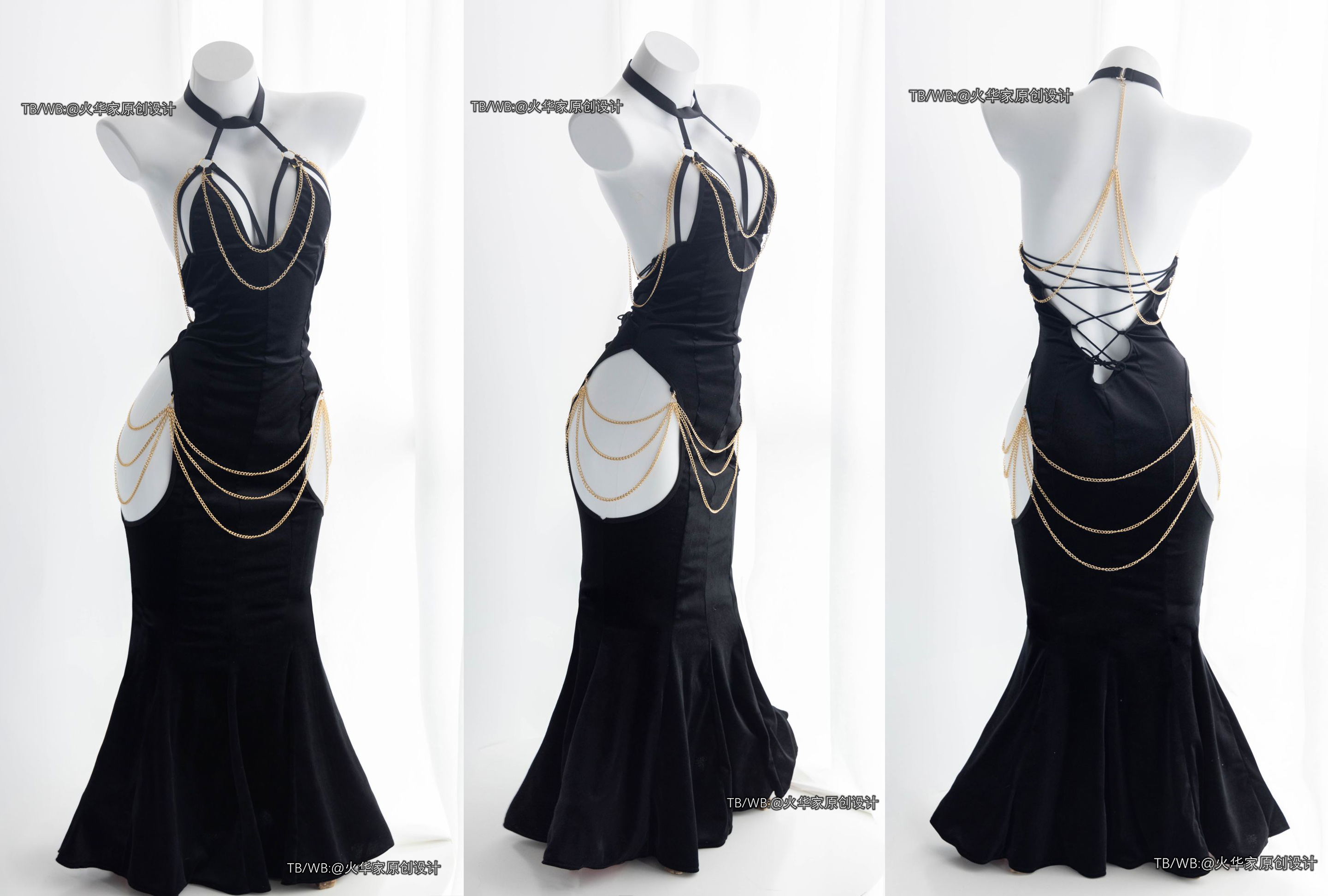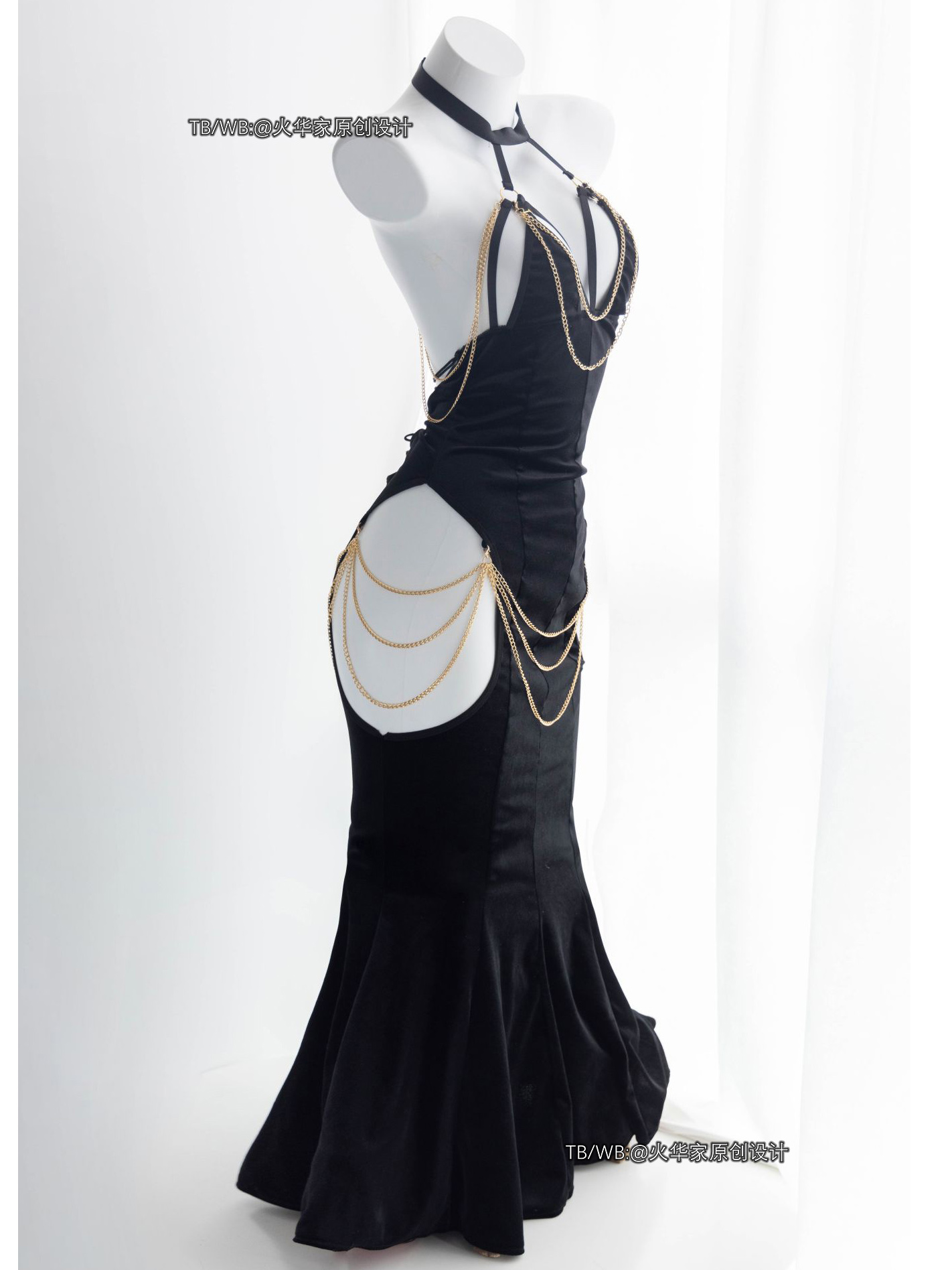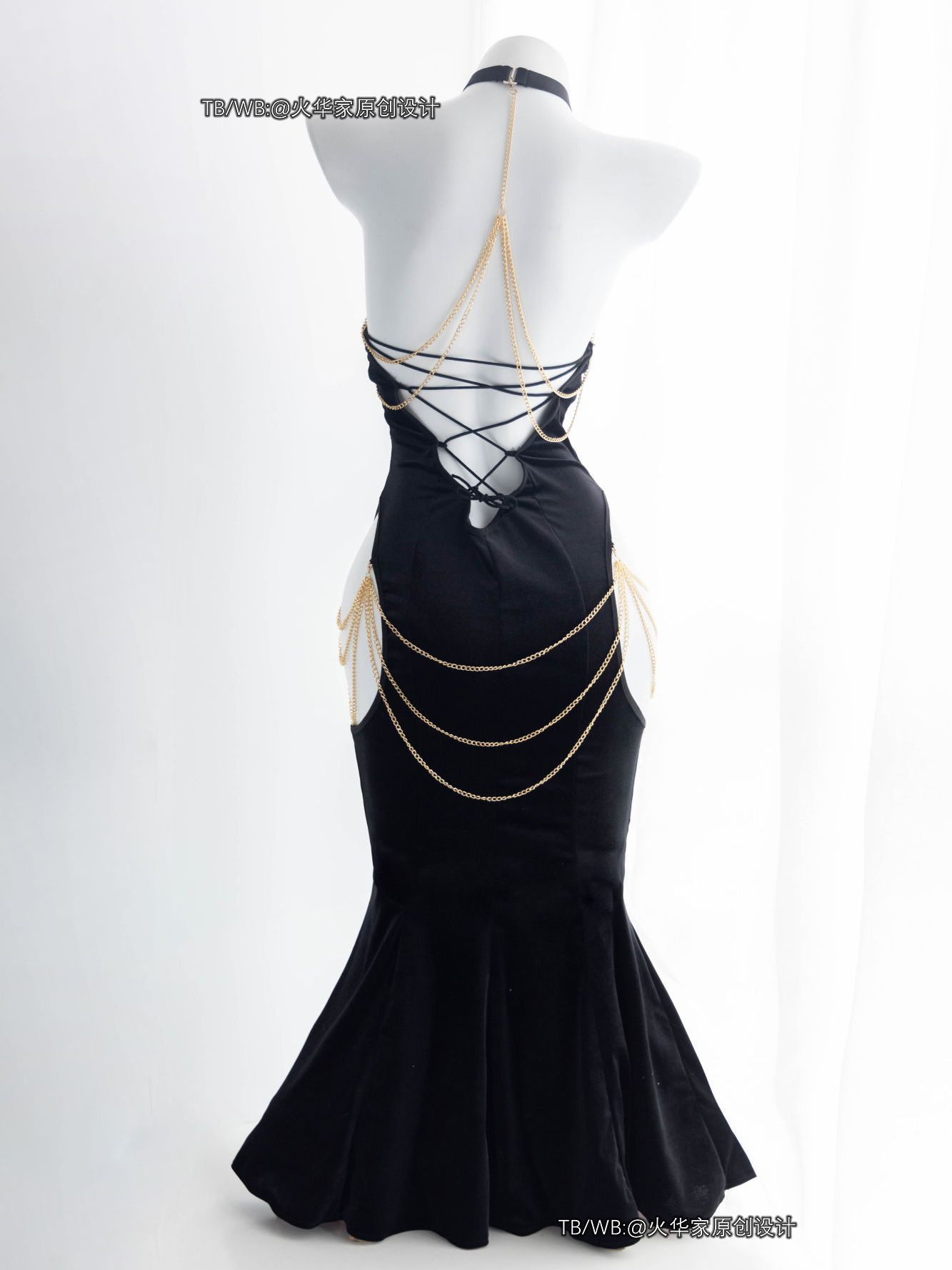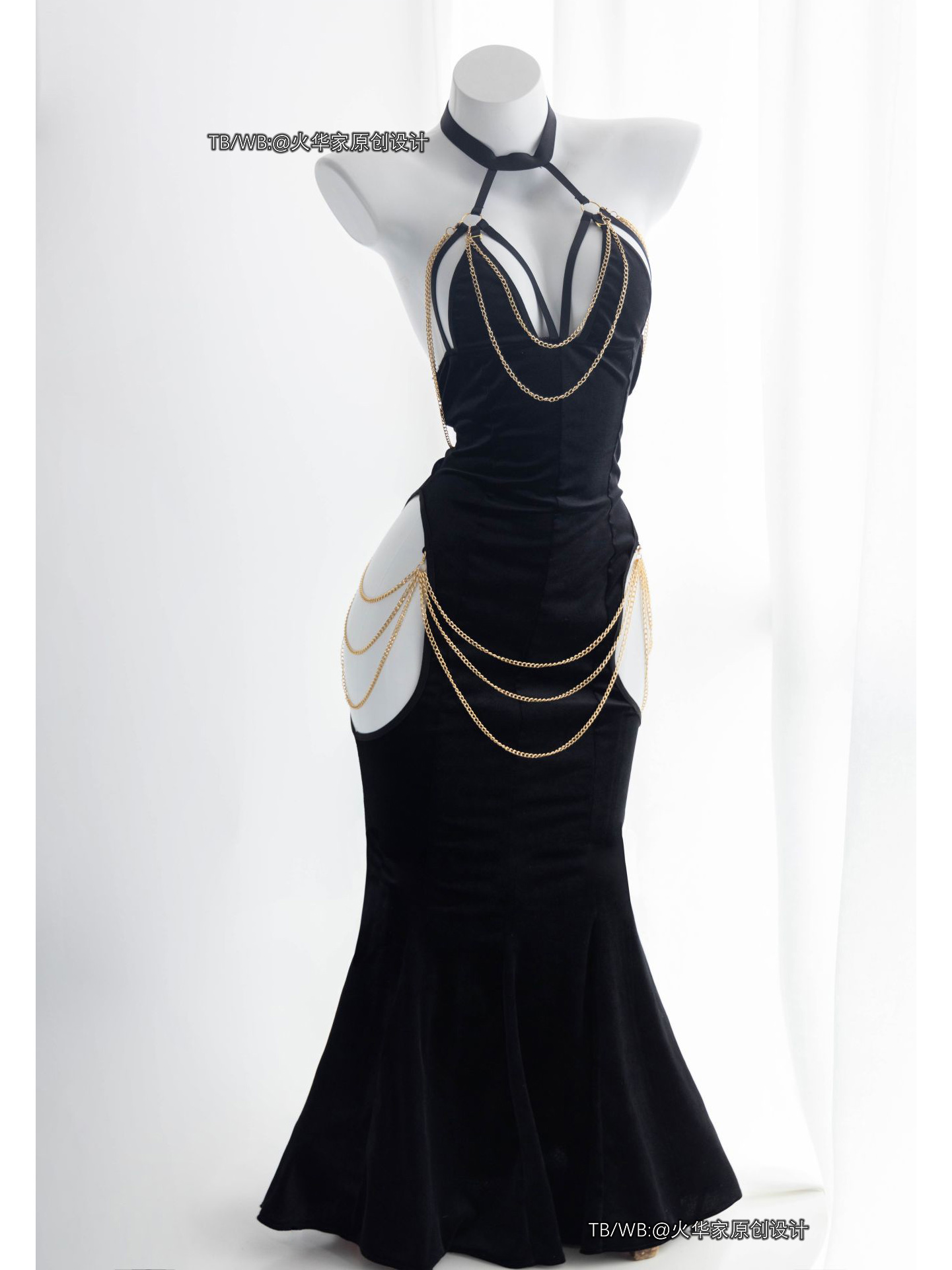 火华家原创设计 魅魔的晚宴 性感开胸绑带包臀露胯鱼尾裙礼服现货