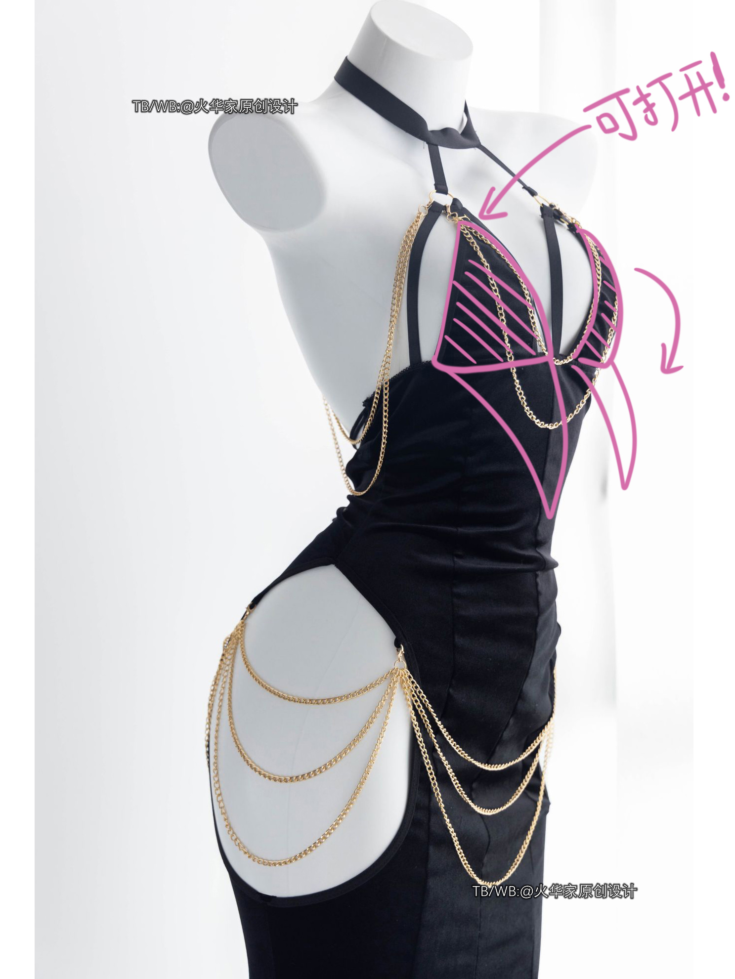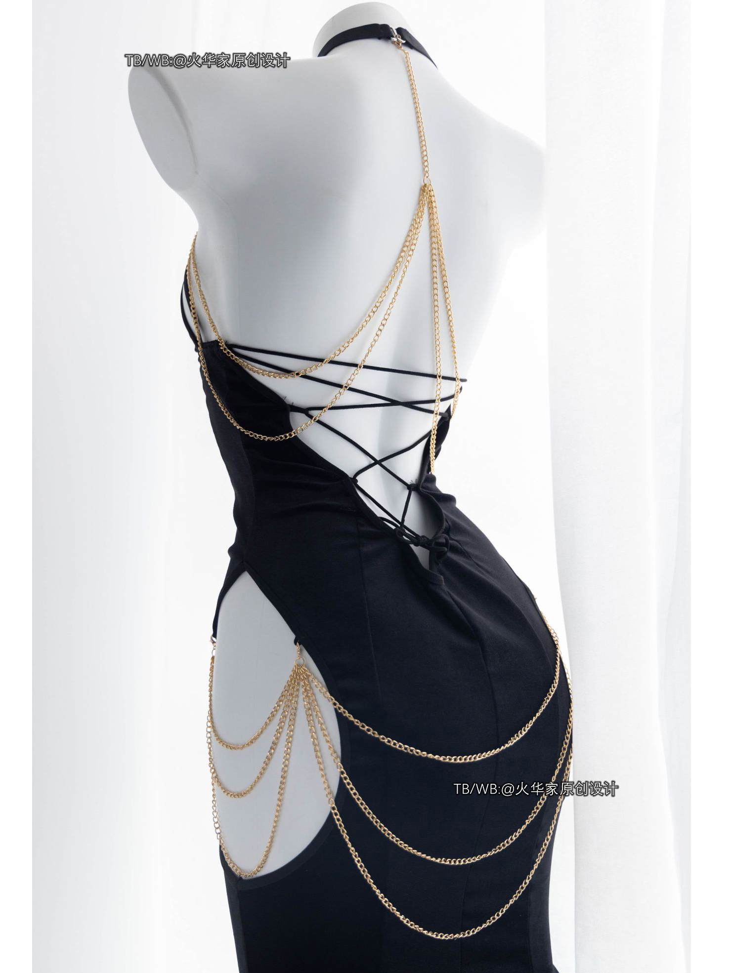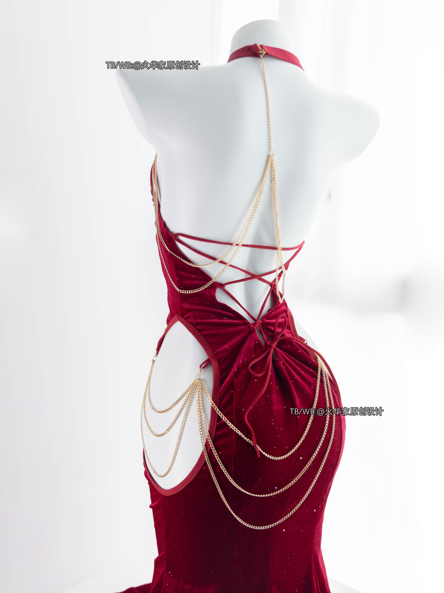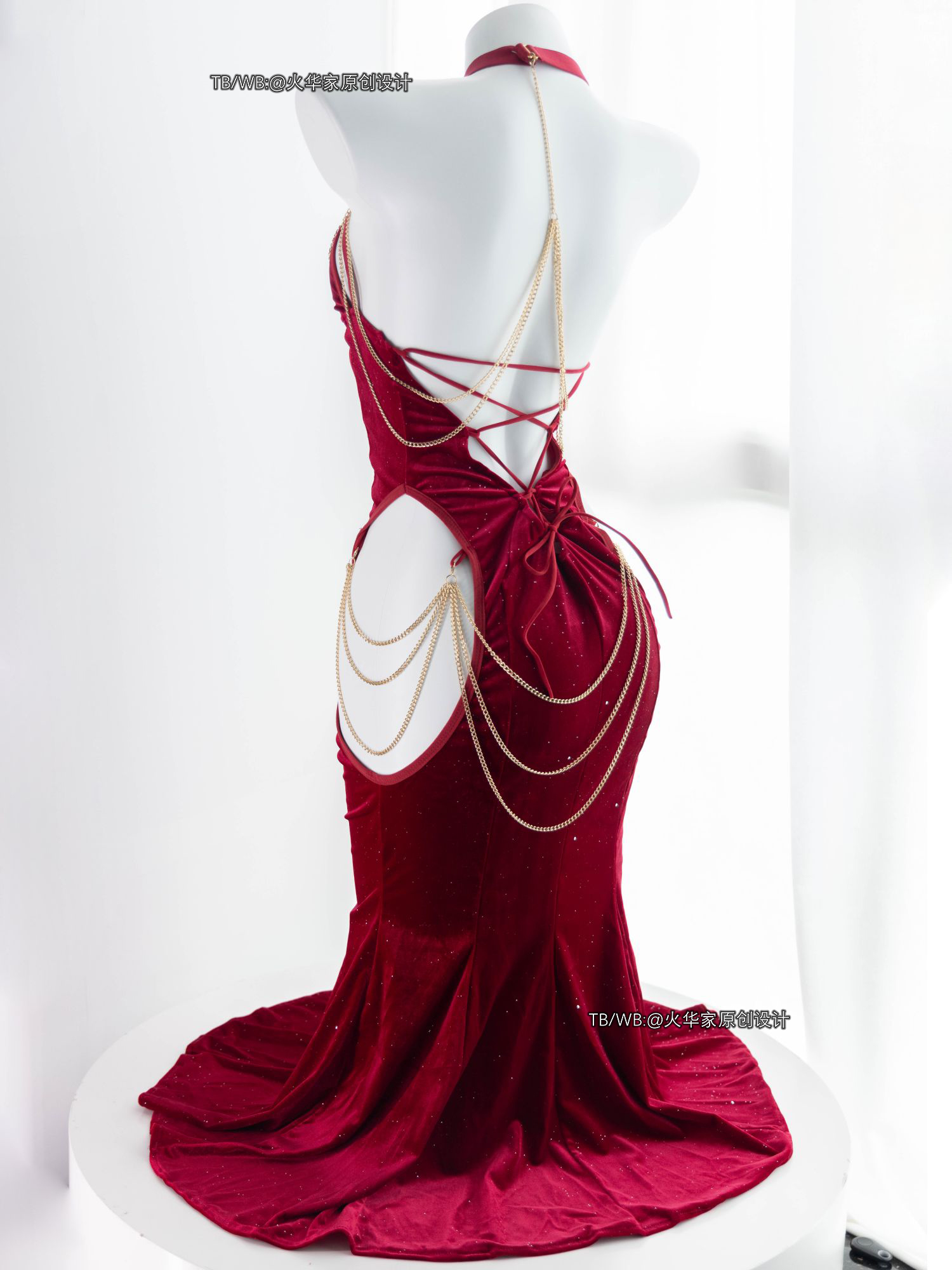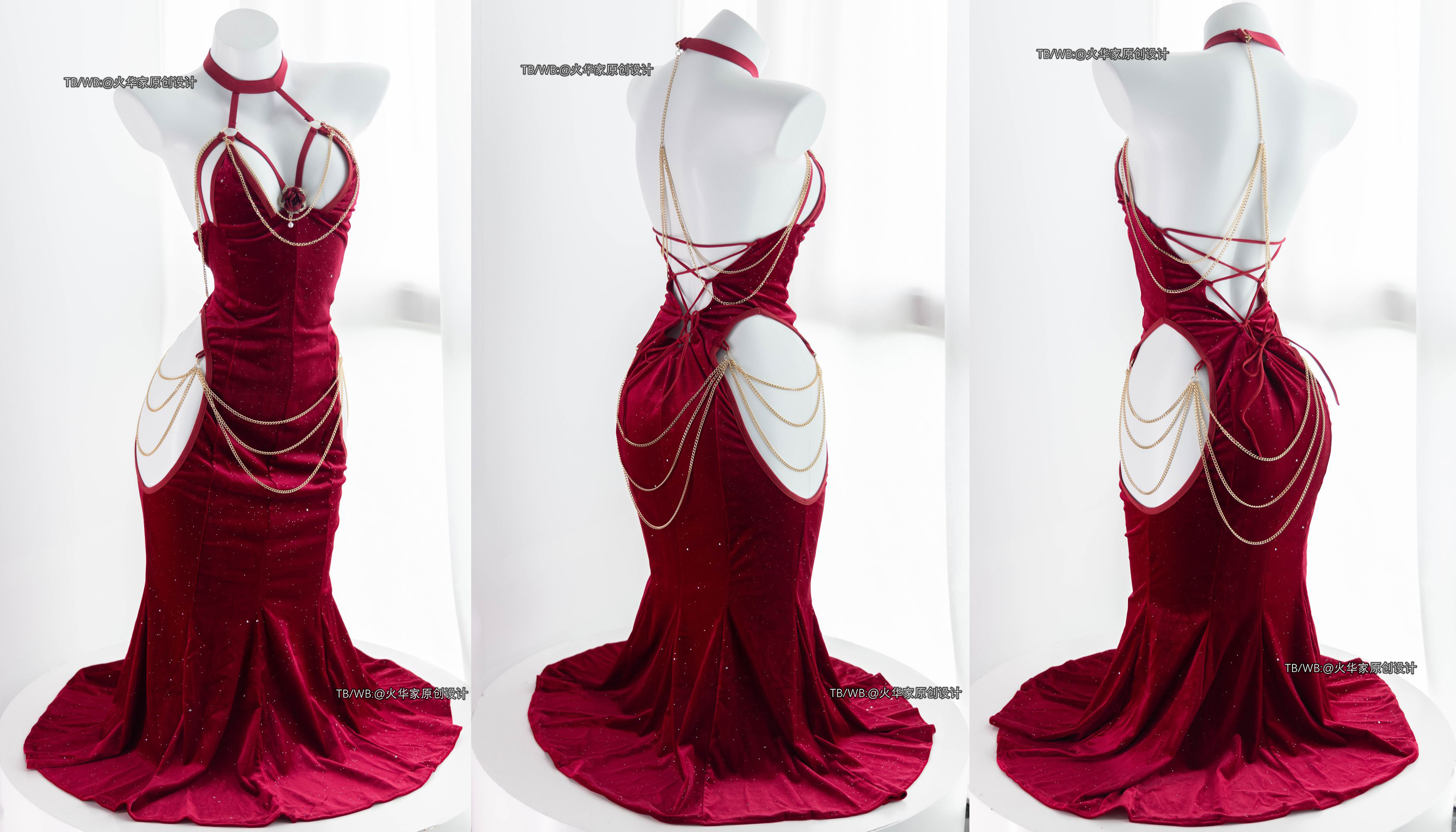 火华家原创设计 魅魔的晚宴 性感开胸绑带包臀露胯鱼尾裙礼服现货