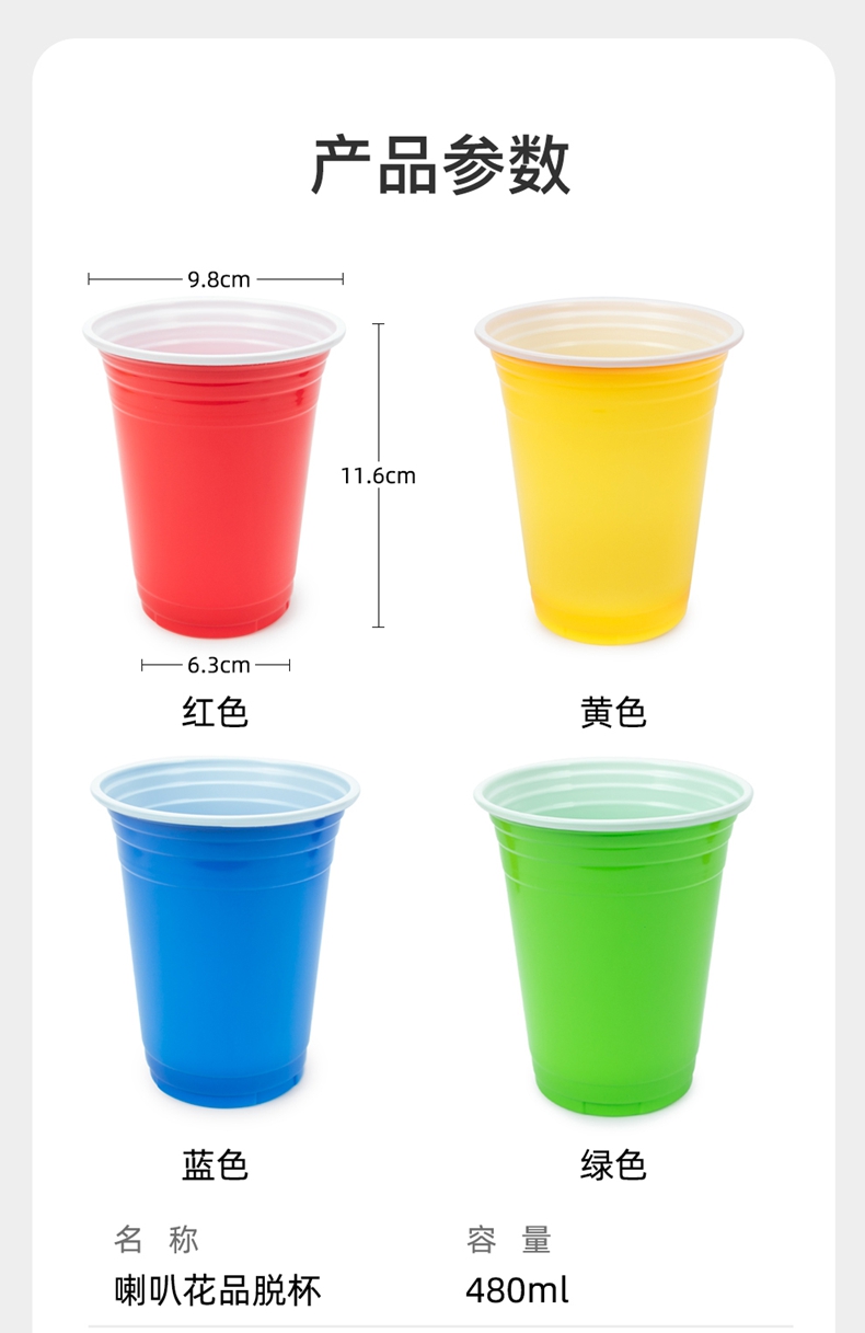 喇叭花一次性杯子品脱杯塑料杯水杯饮料杯酒吧派对杯子partycups