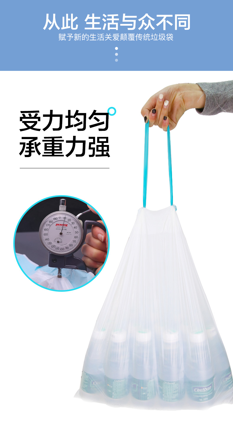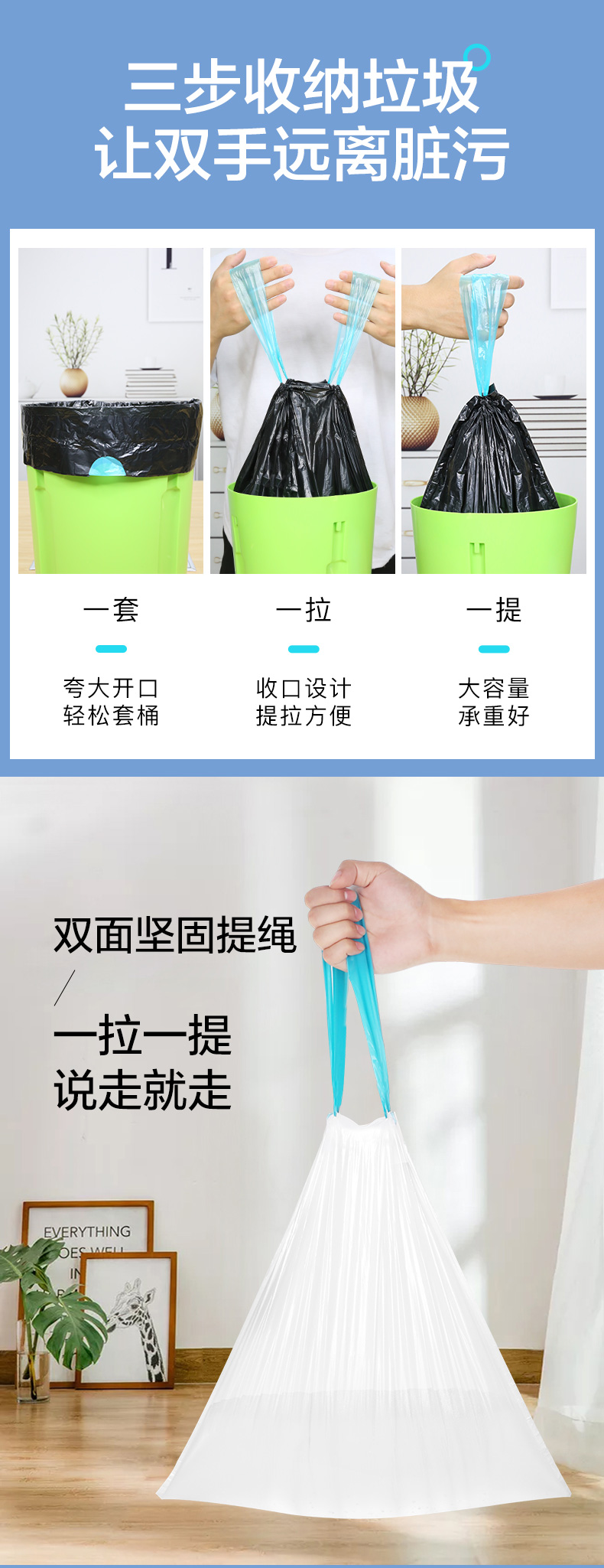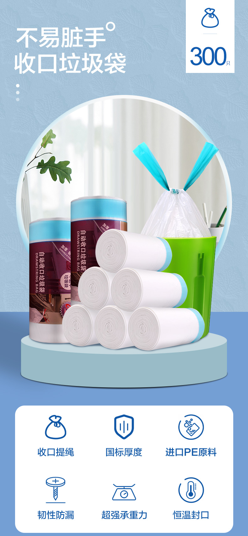 e洁300只垃圾袋手提抽绳式家用加厚一次性塑料袋