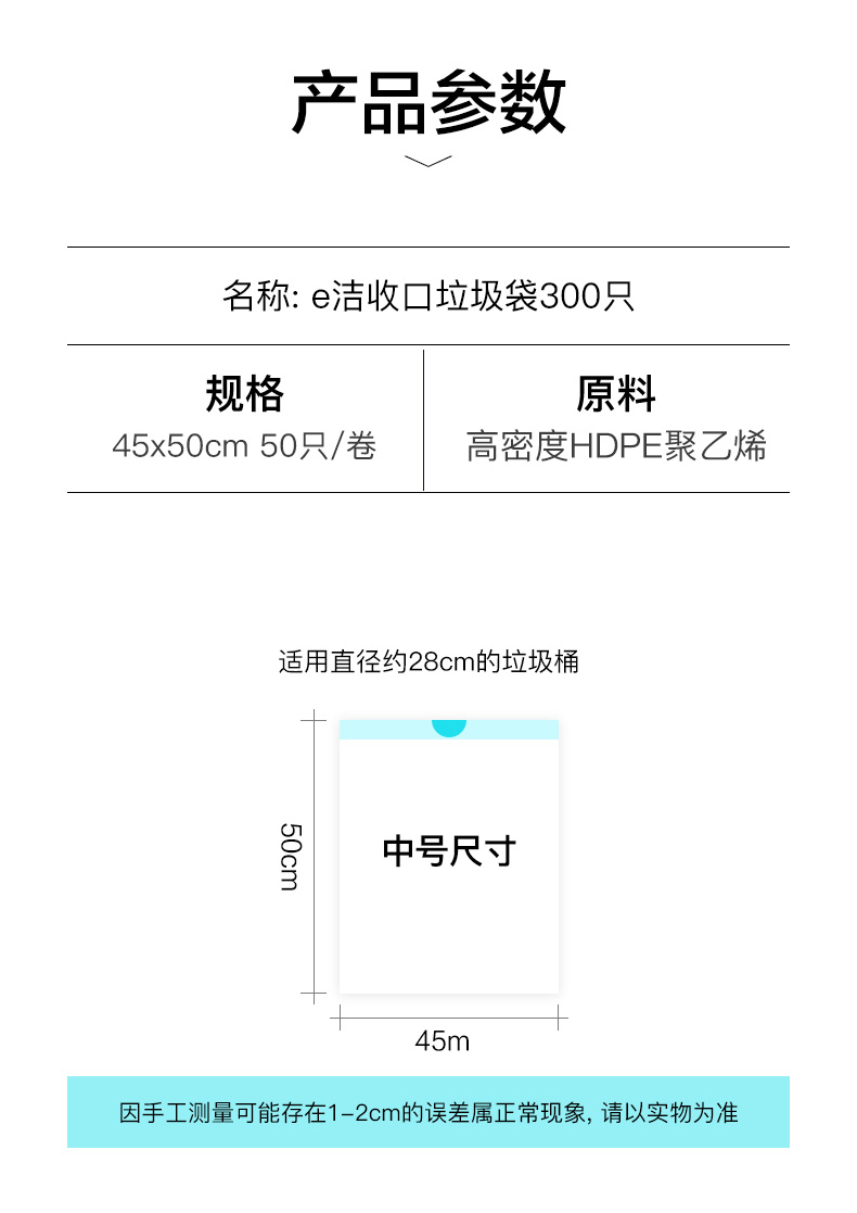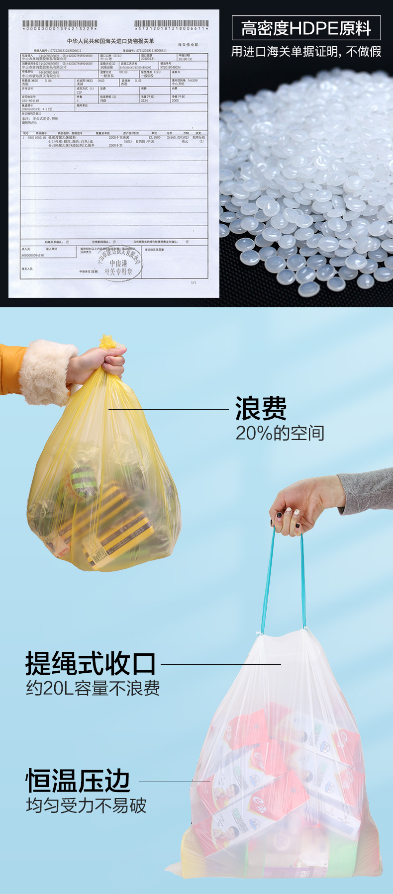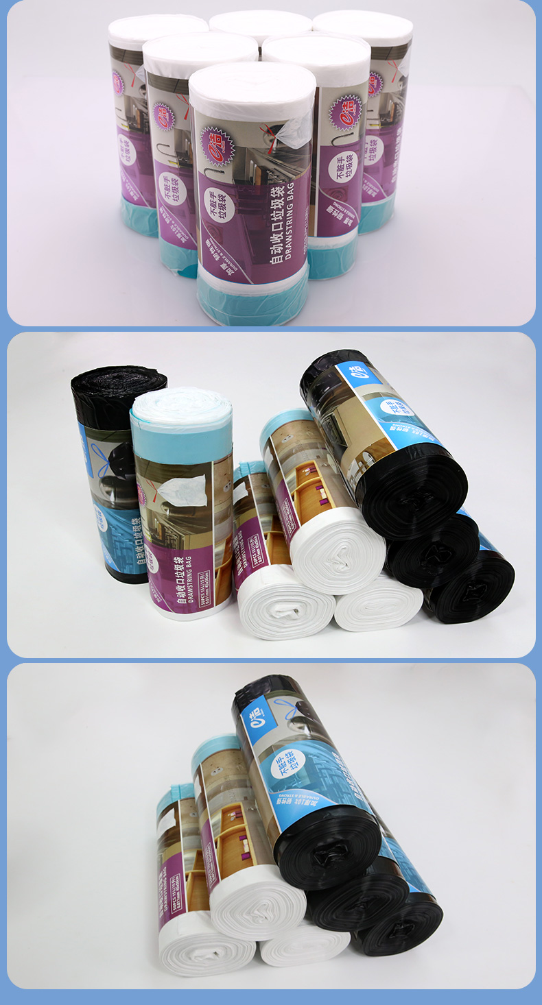 e洁300只垃圾袋手提抽绳式家用加厚一次性塑料袋