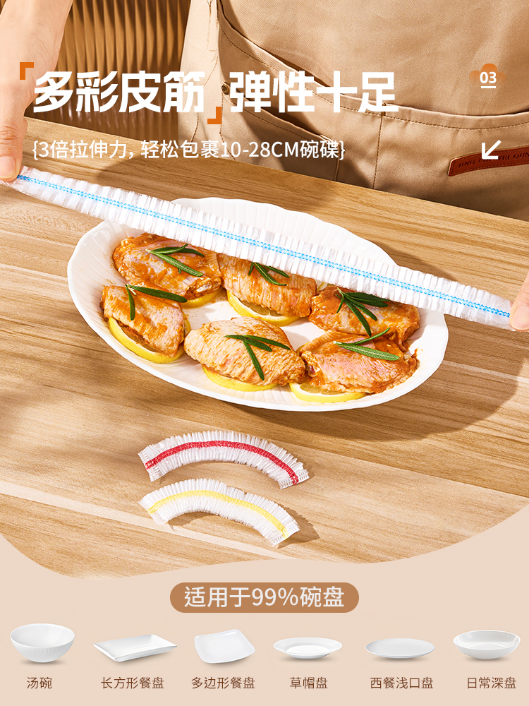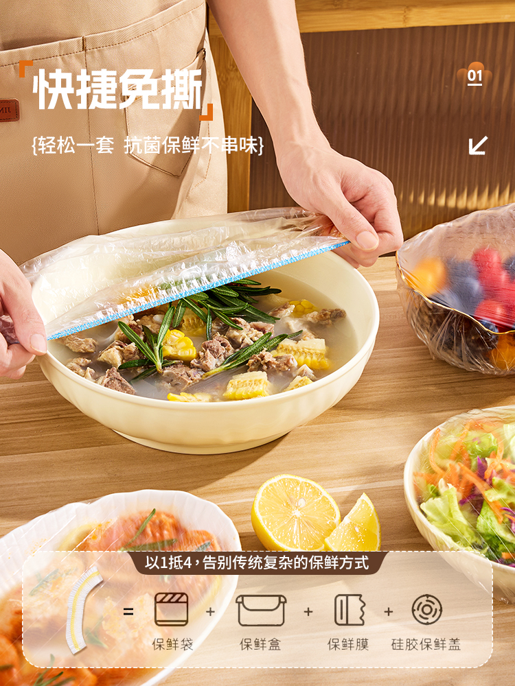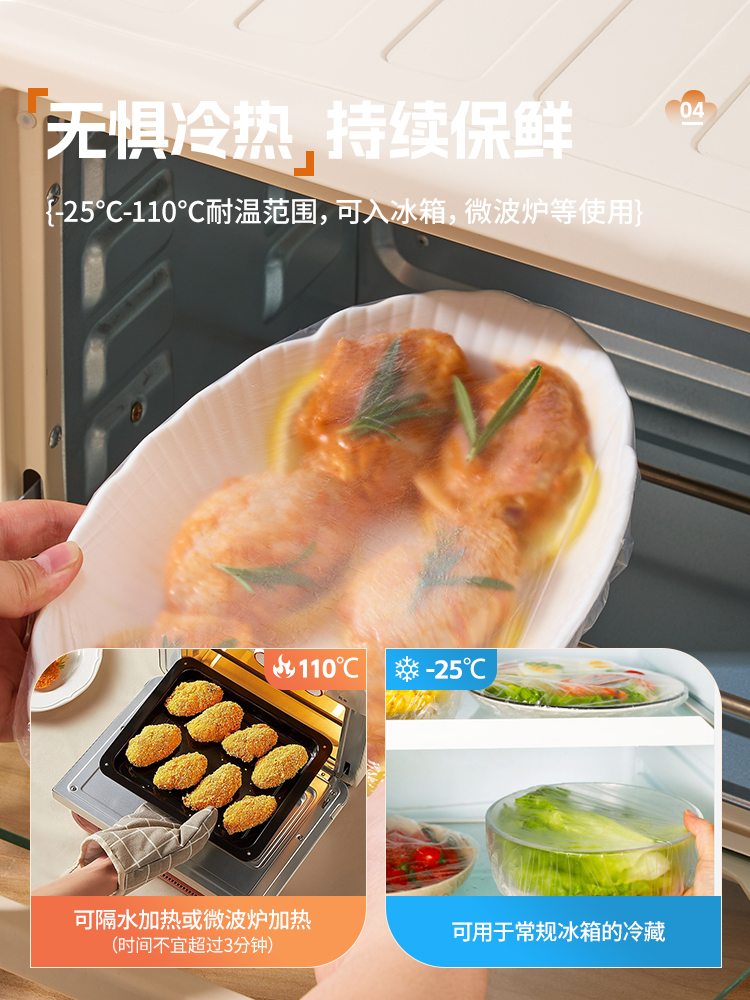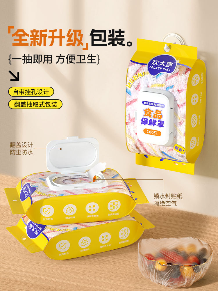 炊大皇一次性保鲜膜套罩食品级pe家用冰箱带松紧剩饭菜保鲜膜碗罩