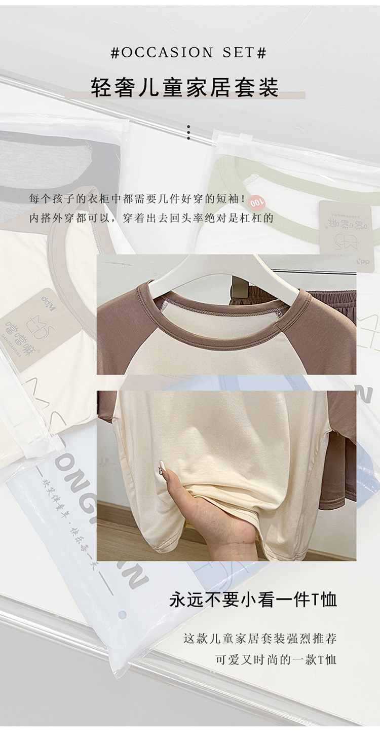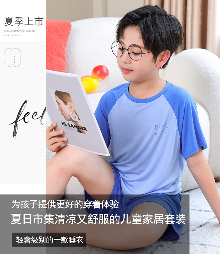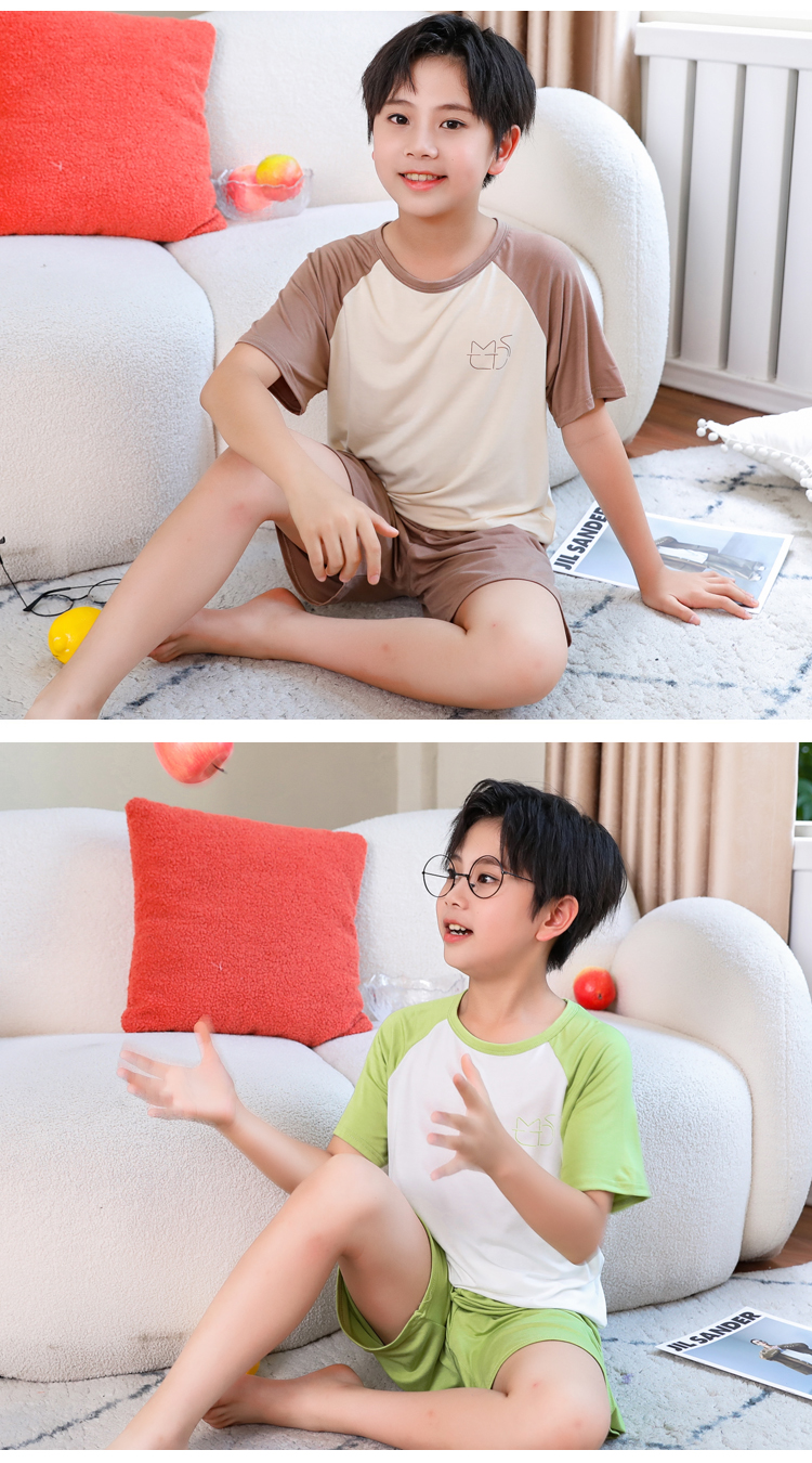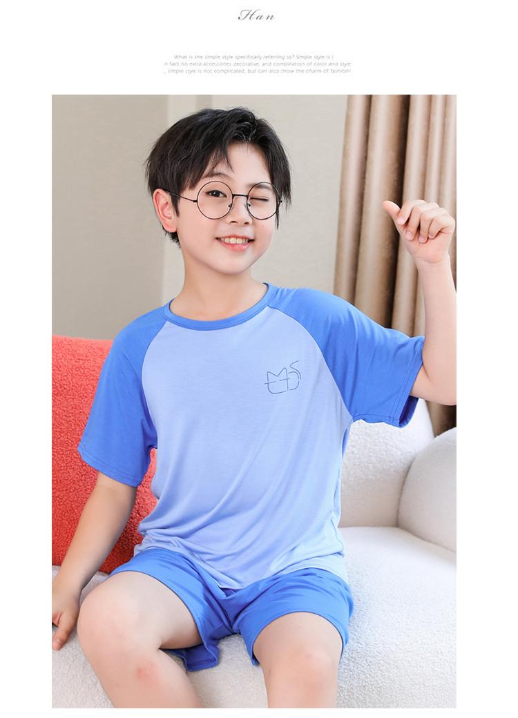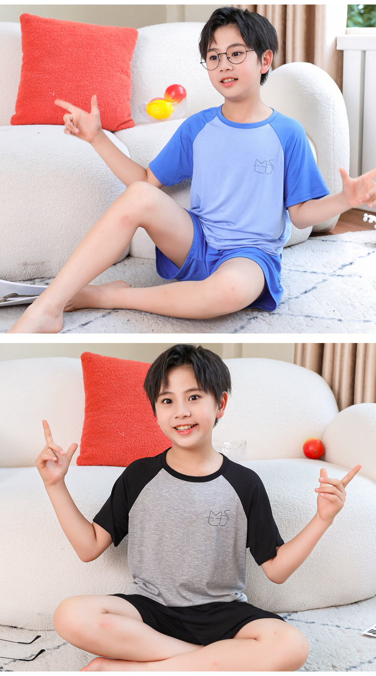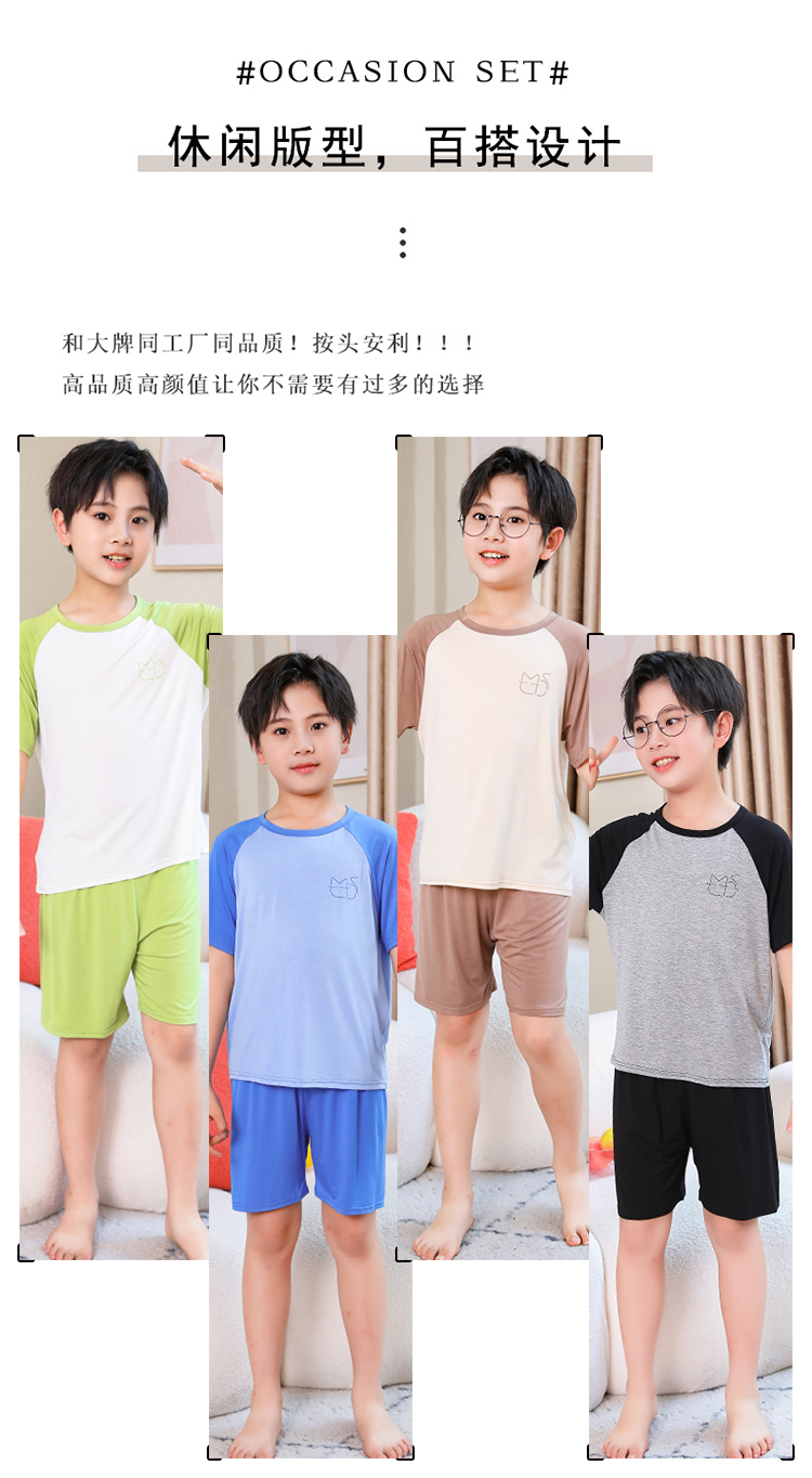 儿童男童睡衣夏季薄款冰丝莫代尔短袖青少年男孩空调家居服套装