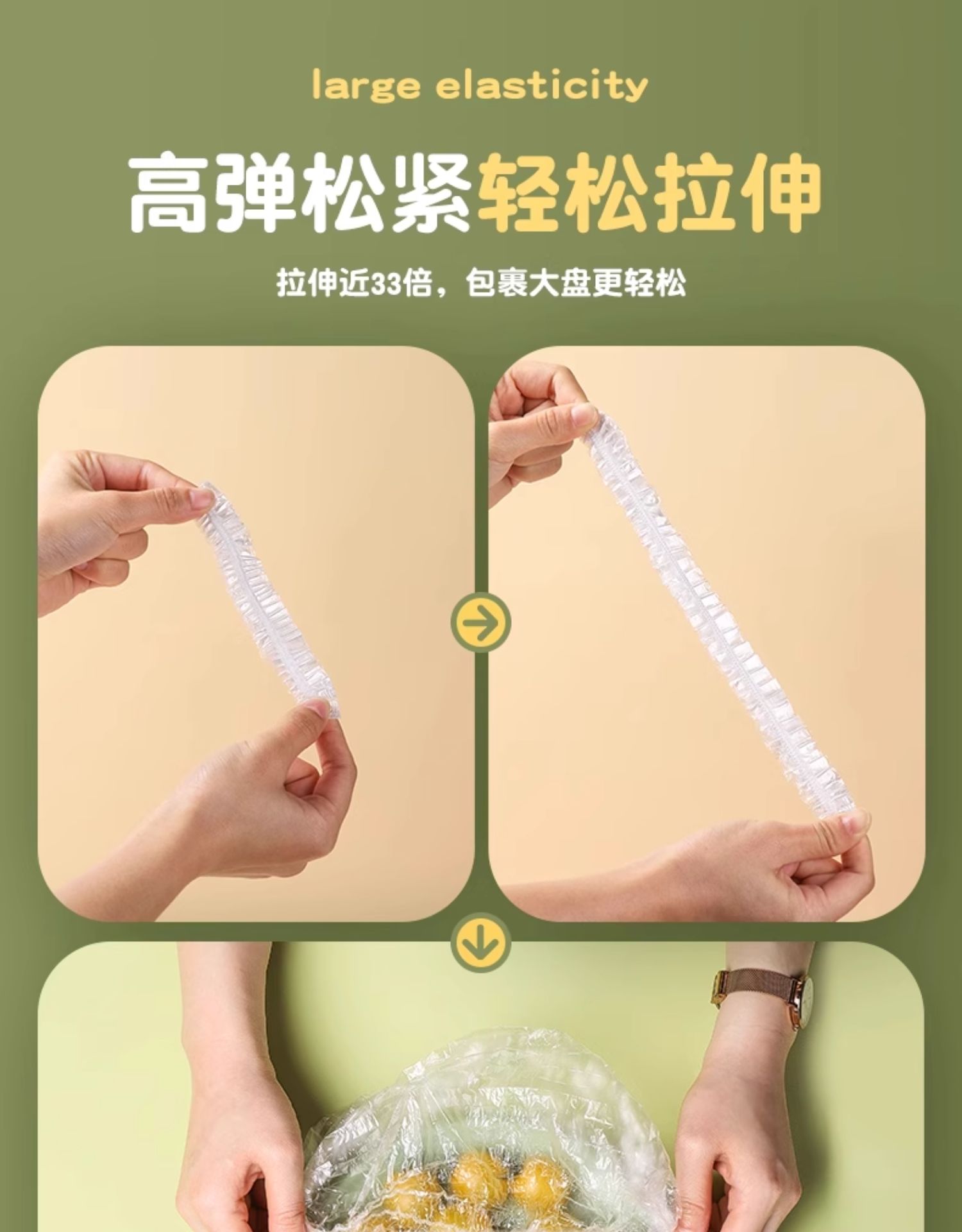 一次性保鲜膜套罩食品级家用保鲜袋专用带松紧口浴帽式套碗剩菜