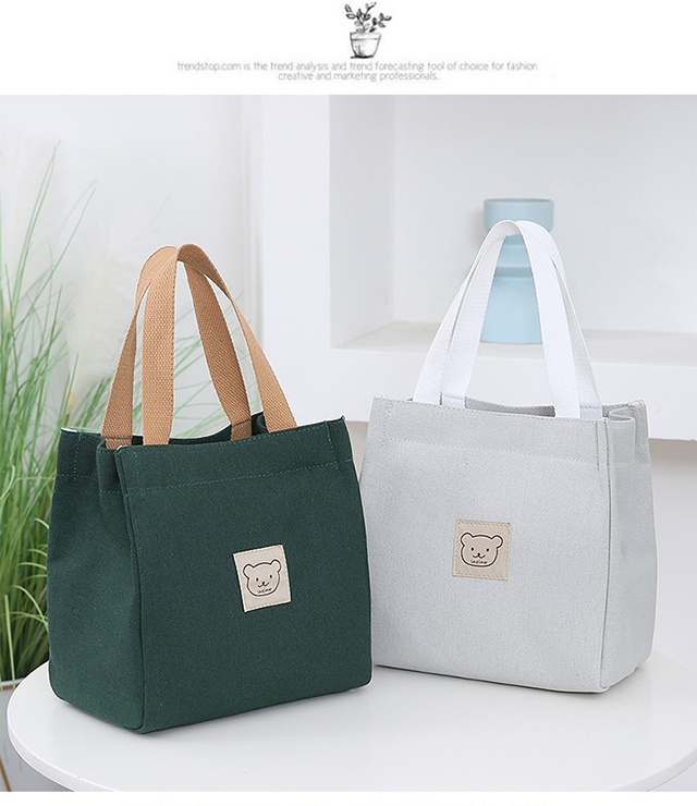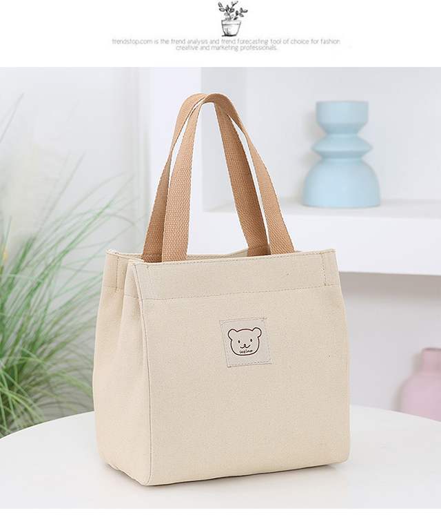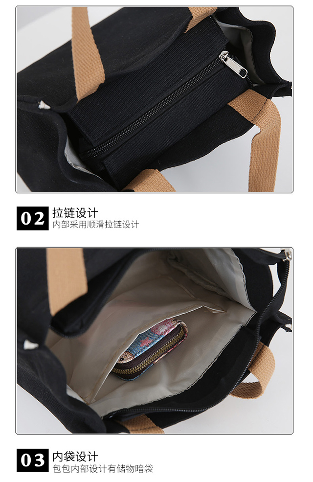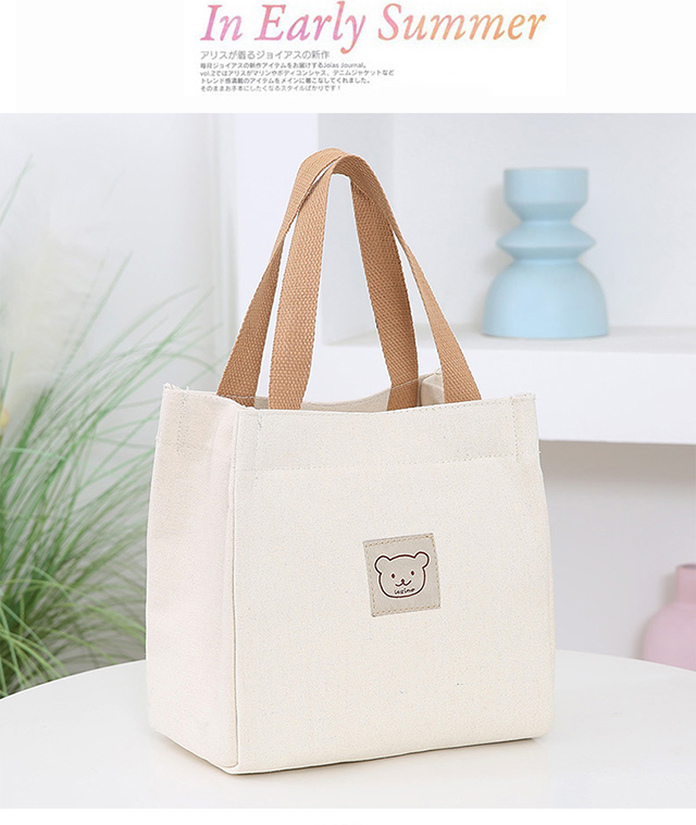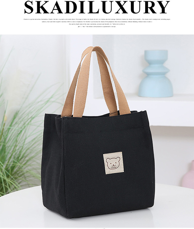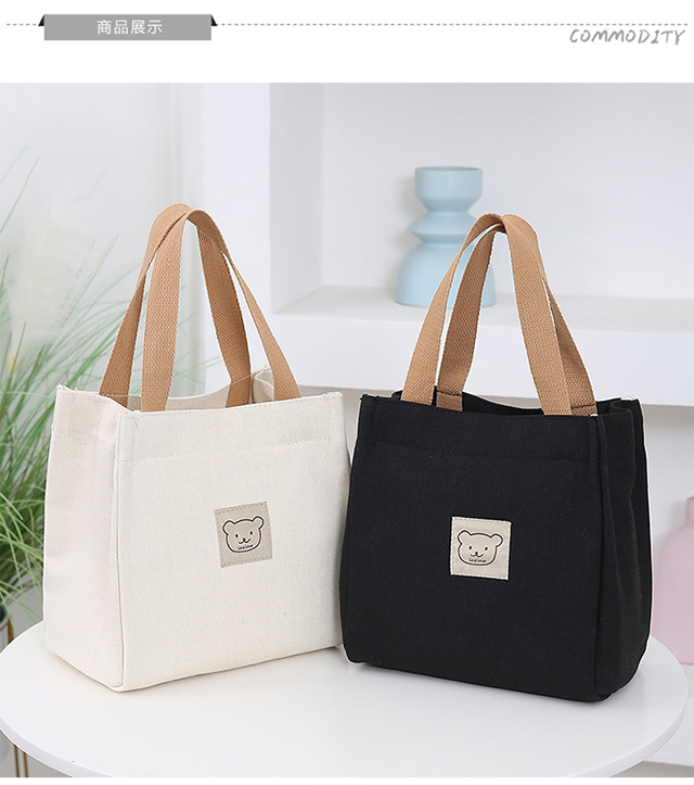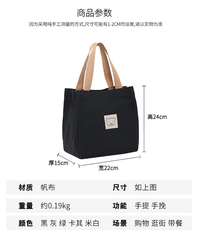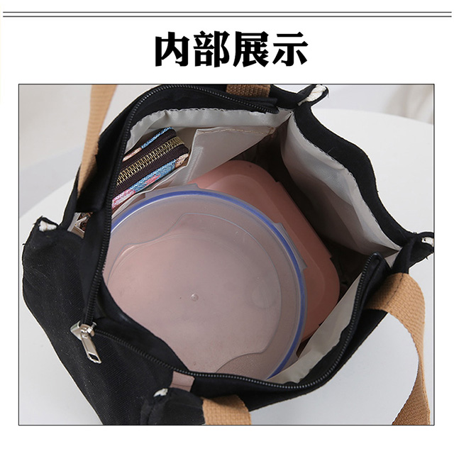 2024帆布手提袋原创日系水桶帆布包托特拉链便当餐盒简约包女百搭