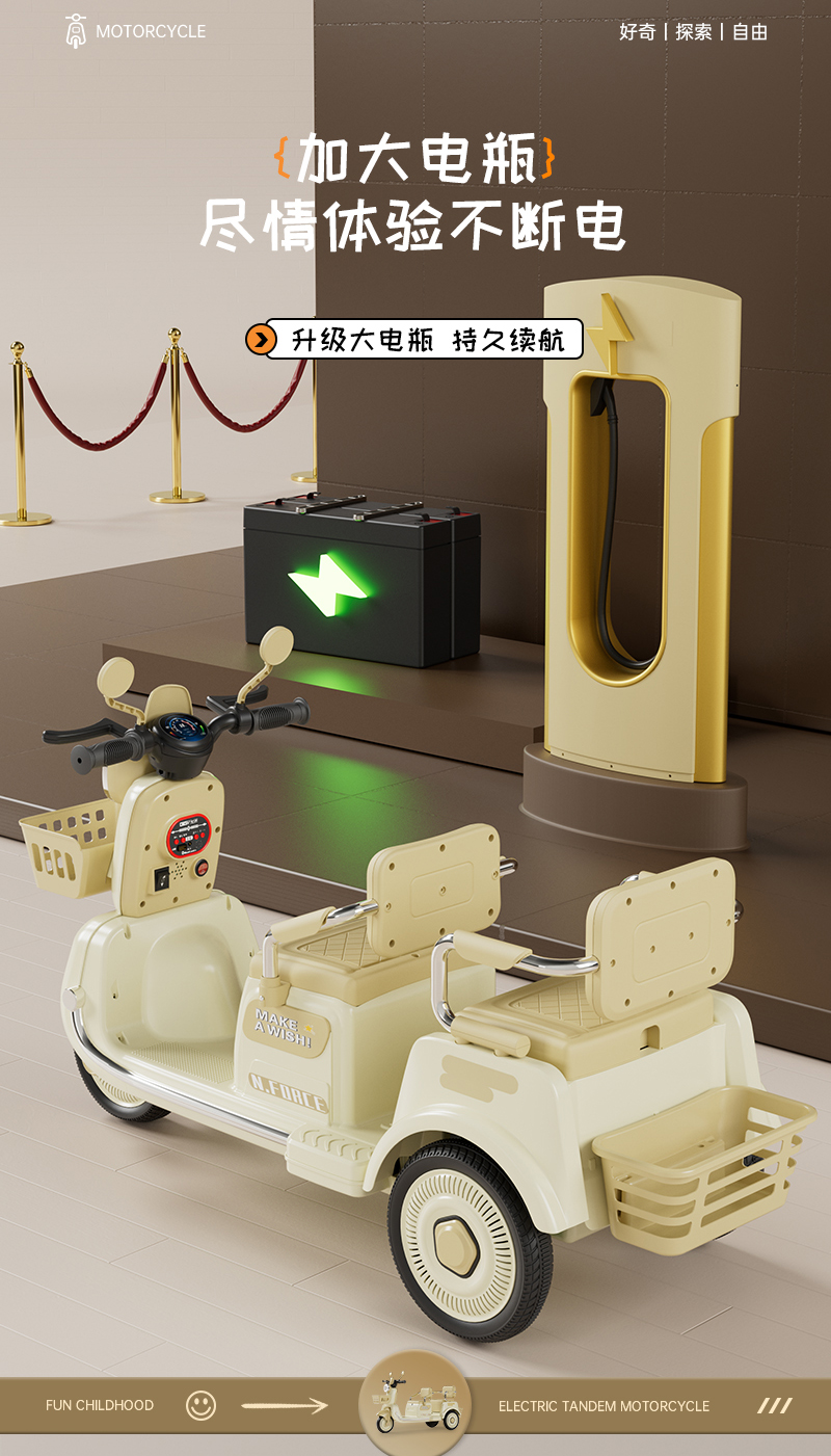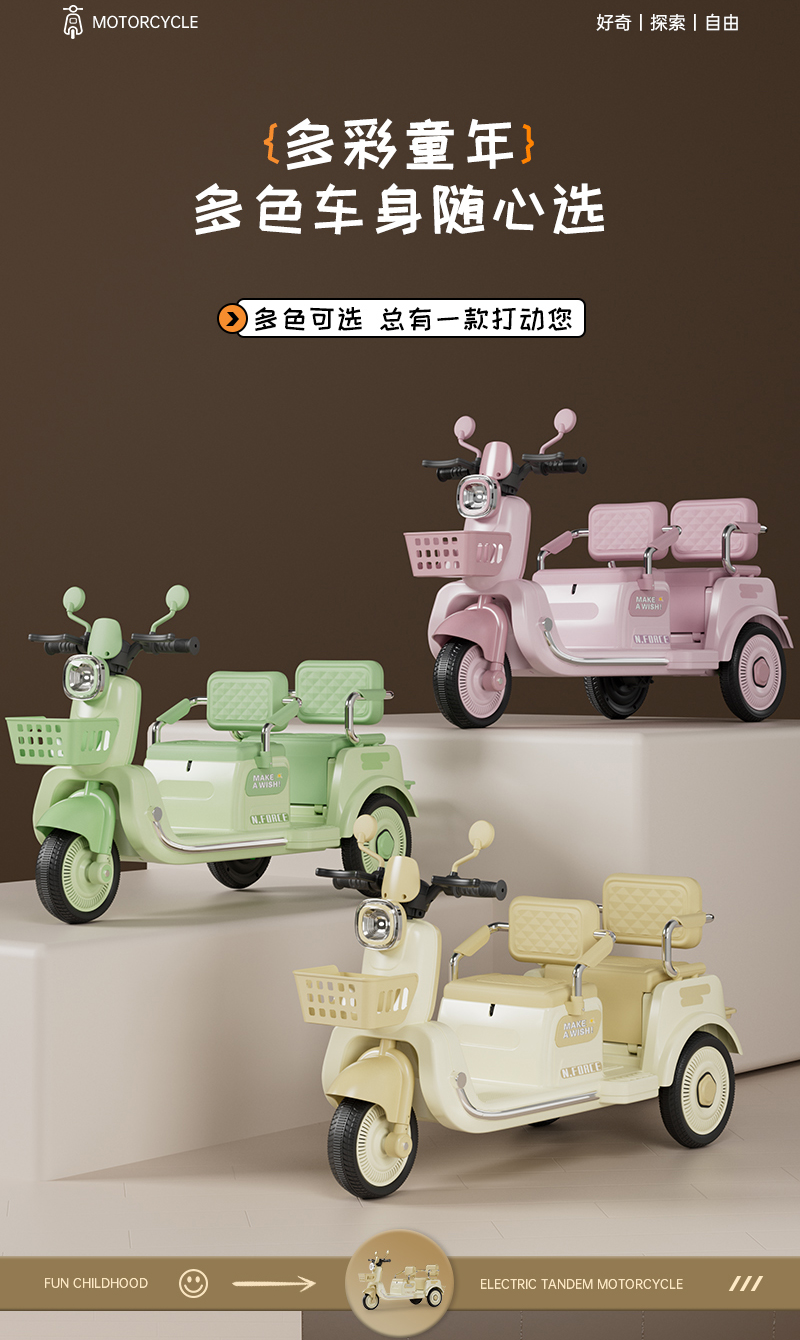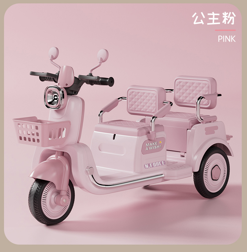 儿童电动摩托车三轮车宝宝双人充电遥控车男女小孩可坐玩具车新款