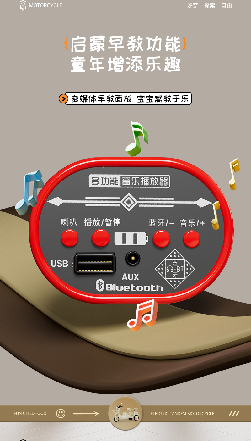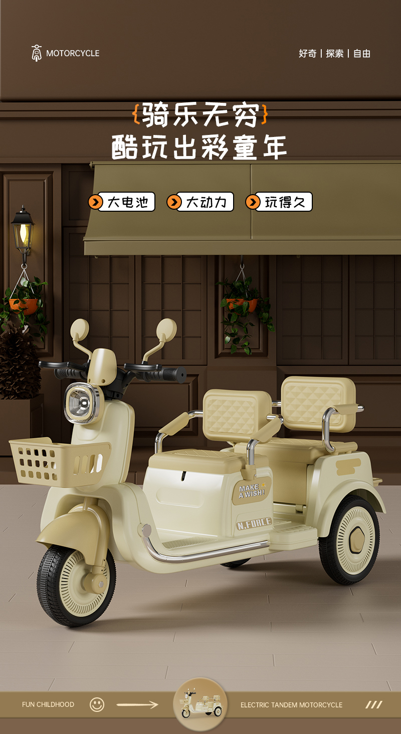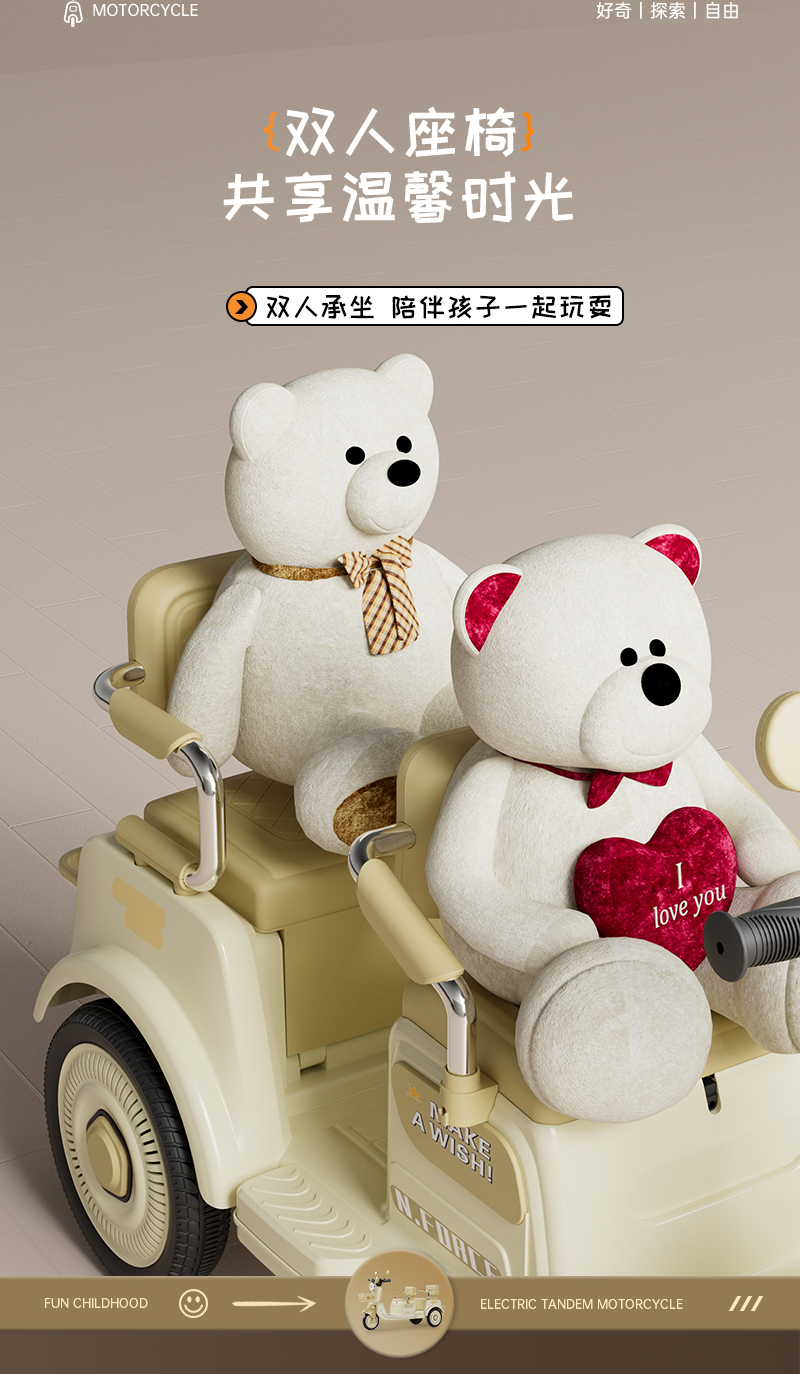 儿童电动摩托车三轮车宝宝双人充电遥控车男女小孩可坐玩具车新款