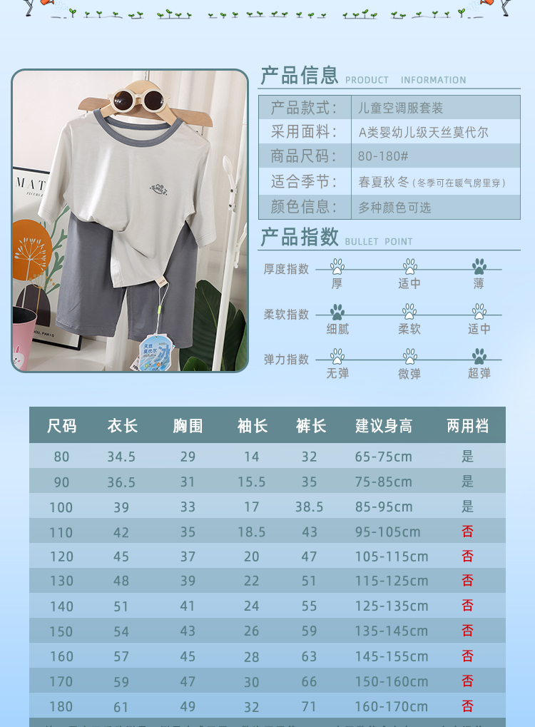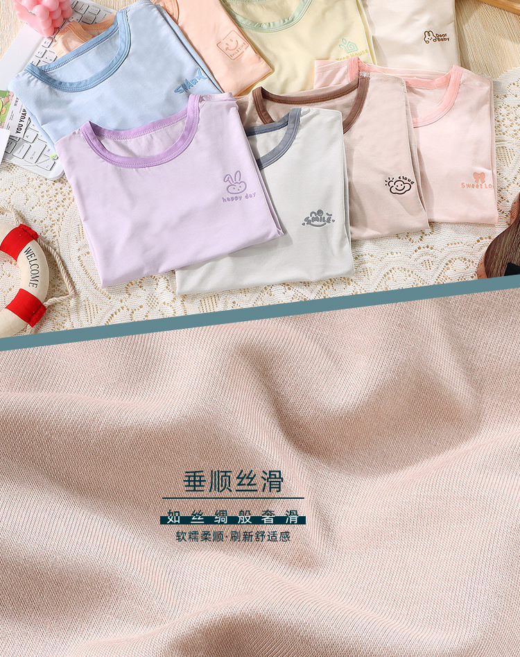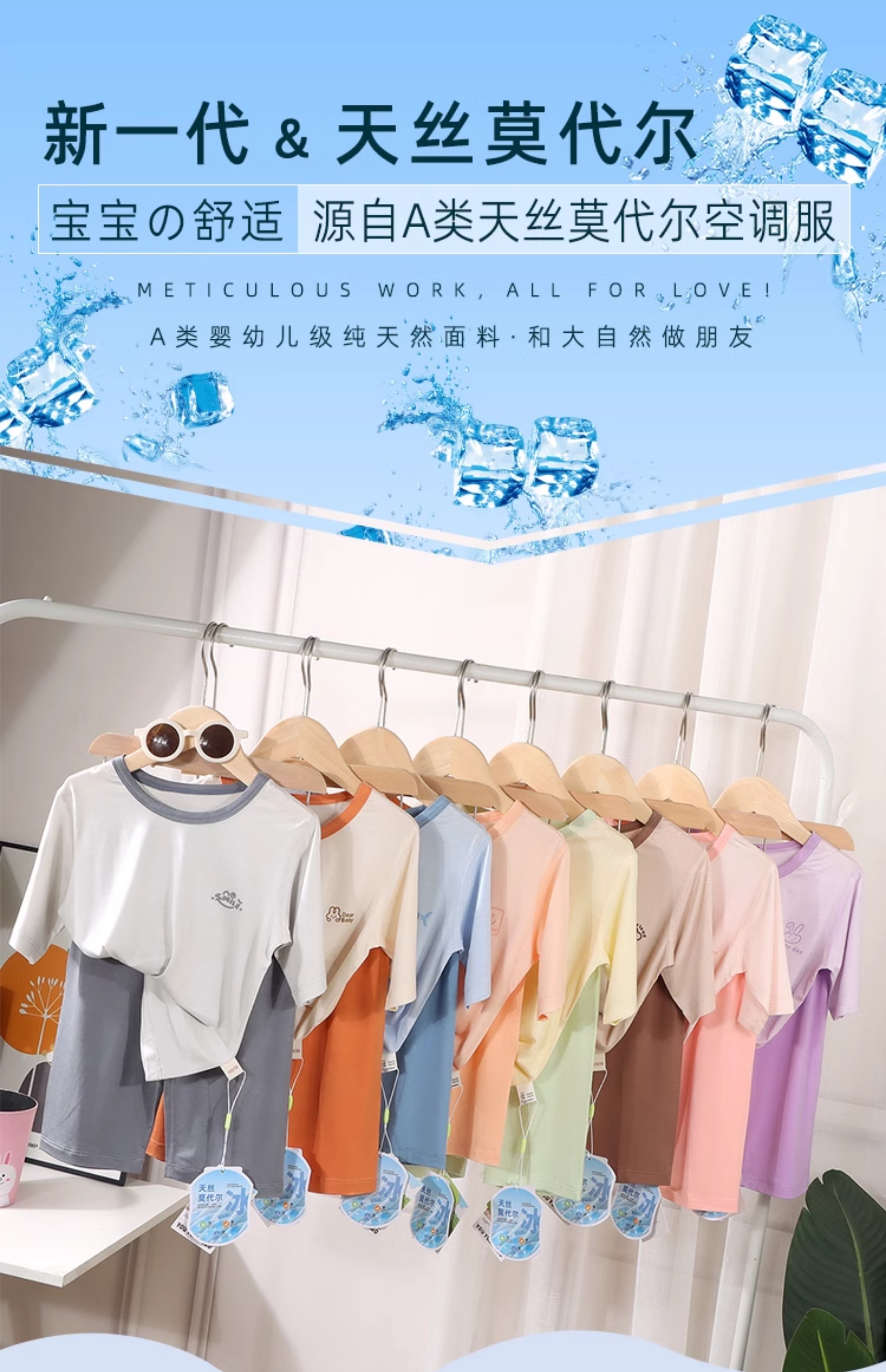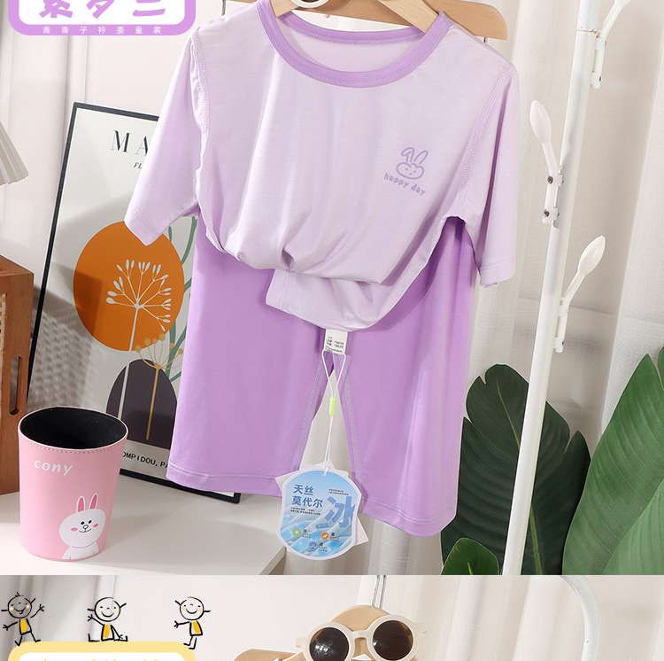 儿童睡衣七分袖裤天丝莫代尔无骨男女中大童空调家居服套装莱赛尔