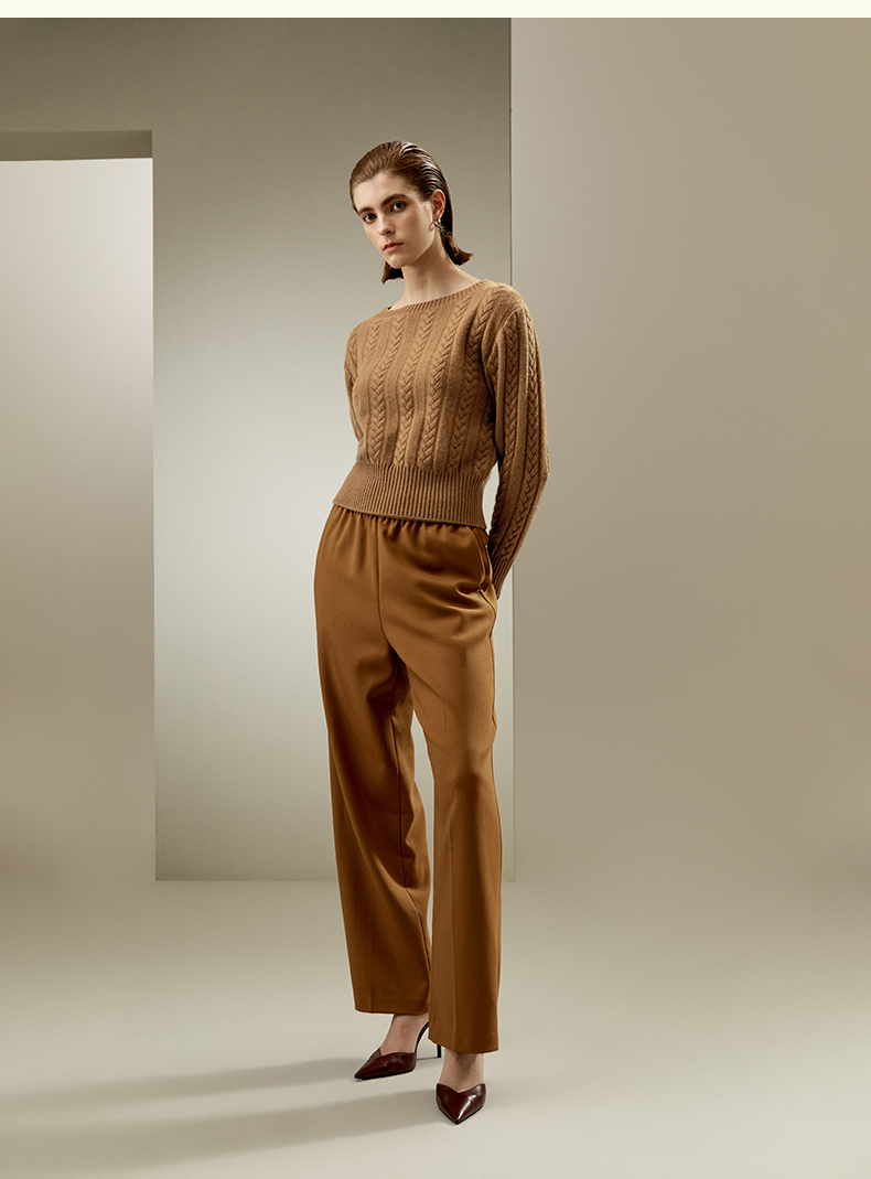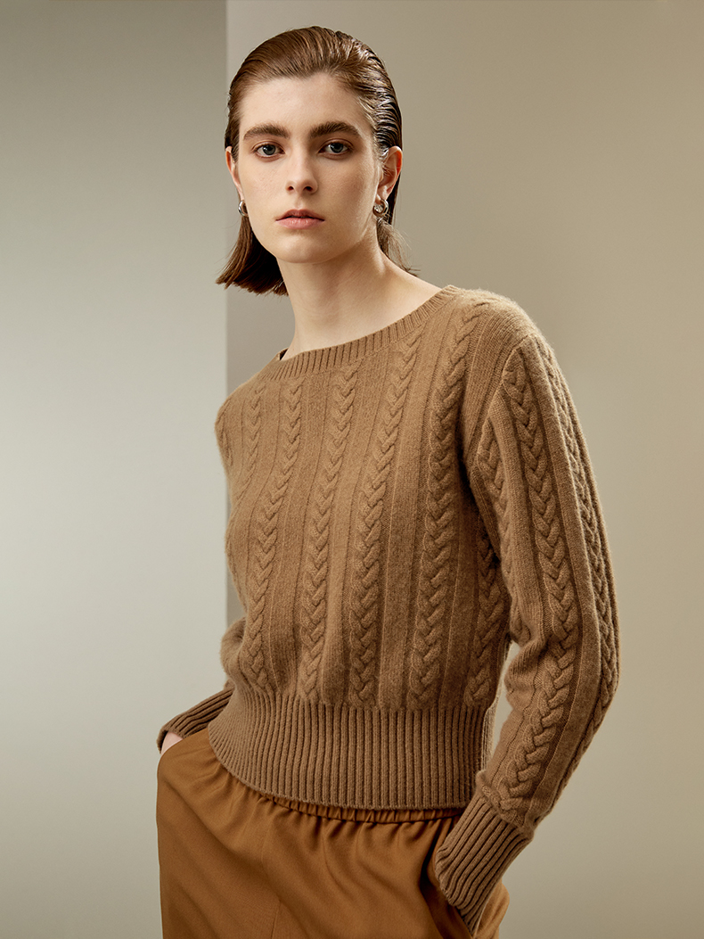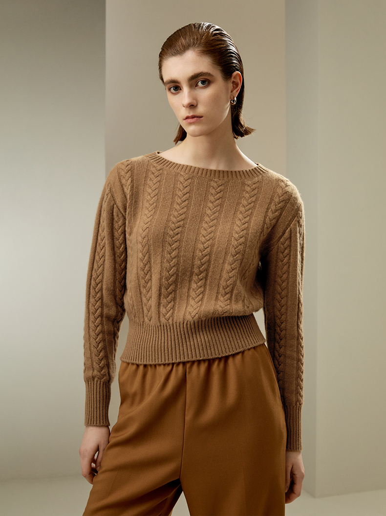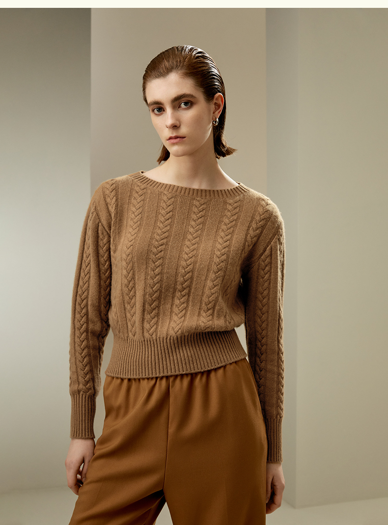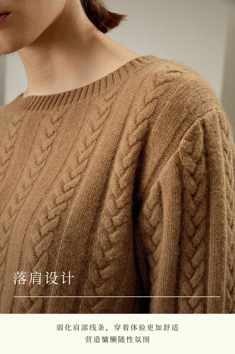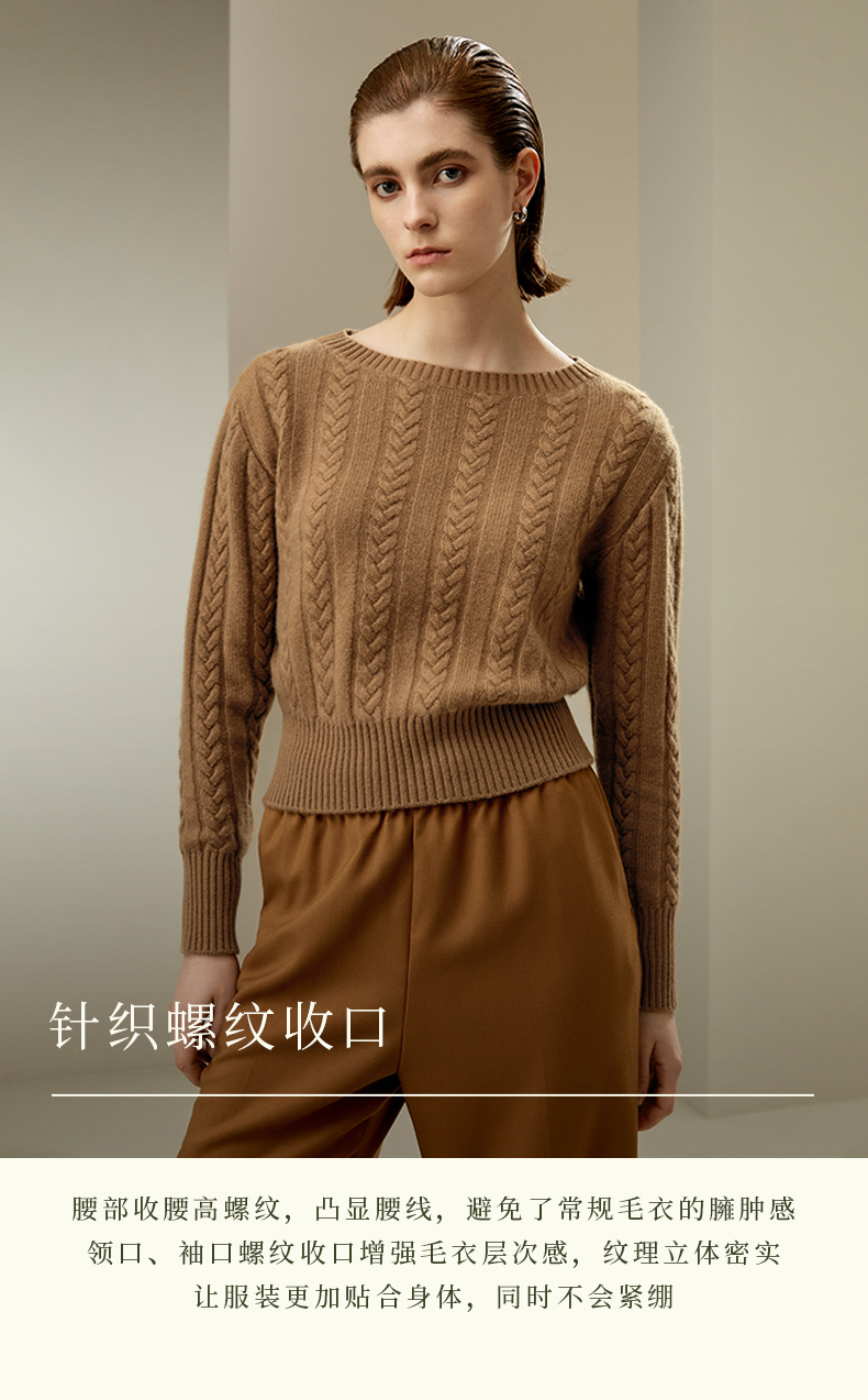 莉莉秀客LILYSILK秋冬新品山羊绒落肩一字领宽松套衫毛衣女