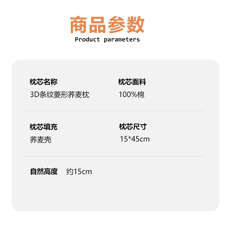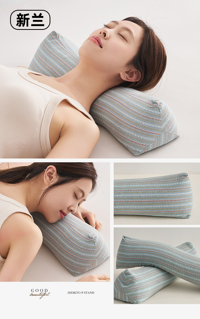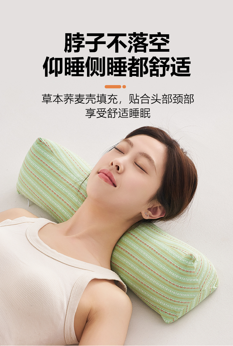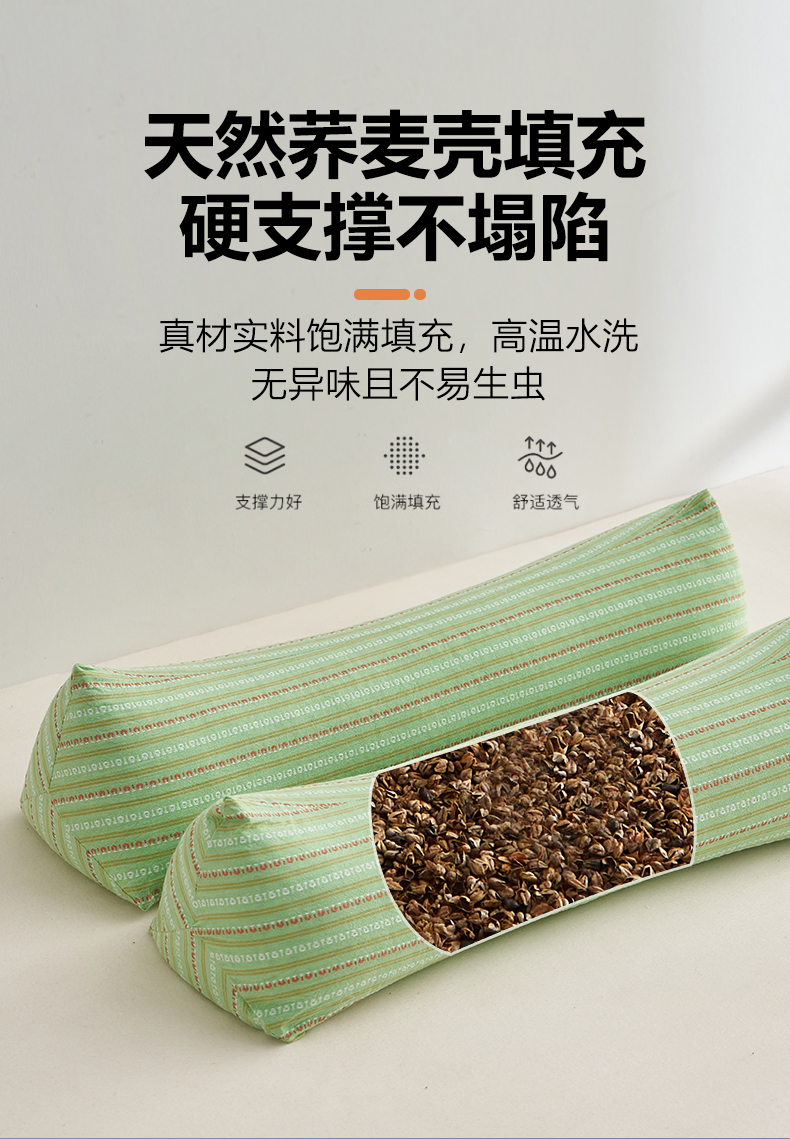 全棉全荞麦3D三角反牵引枕头护颈椎枕芯荞麦枕壳硬枕芯单人圆柱形