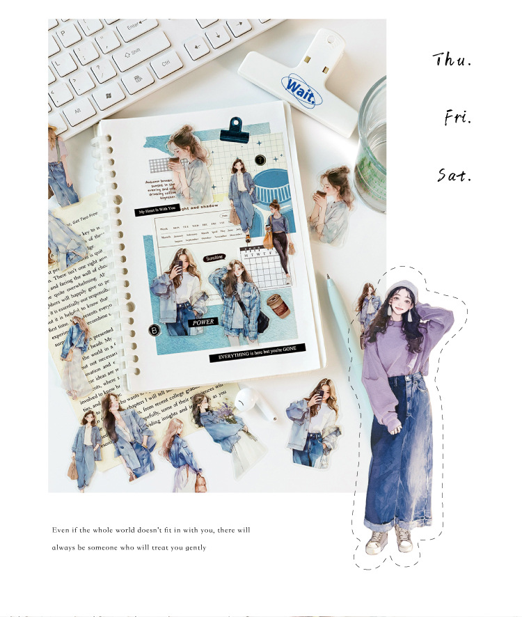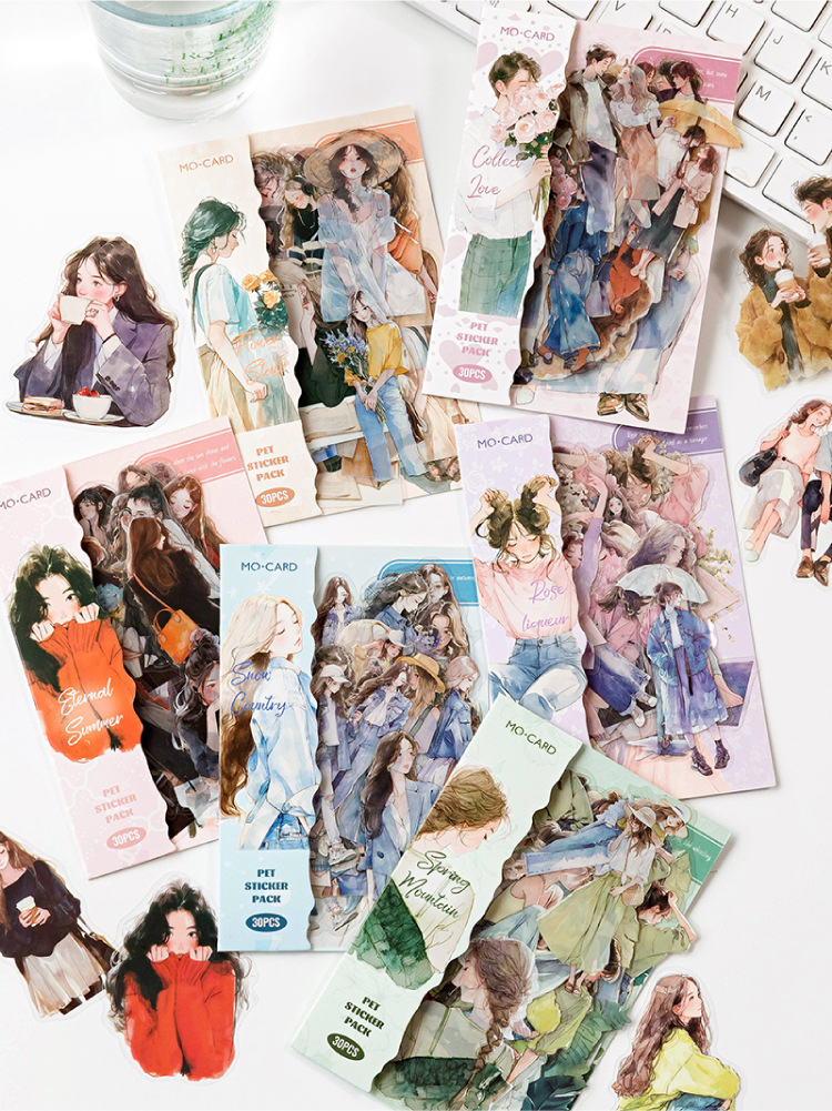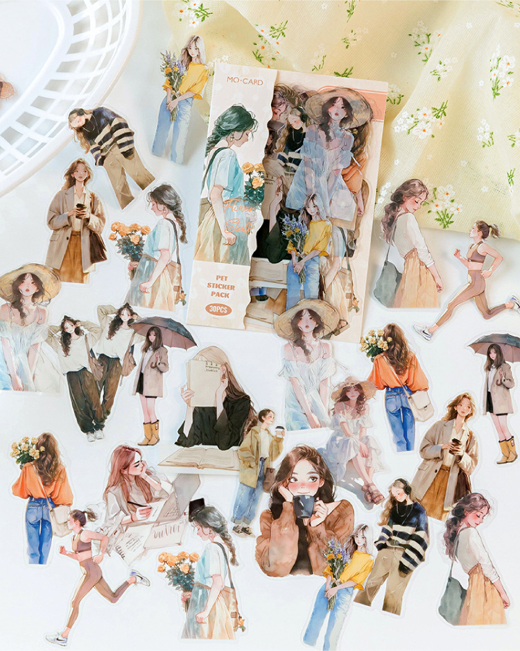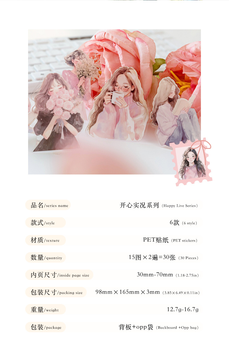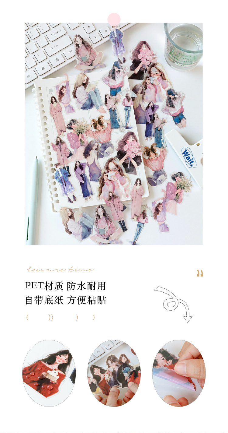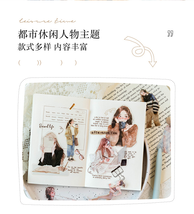 开心实况 PET白墨贴纸包 都市休闲人物手帐装饰素材贴6款造景贴画