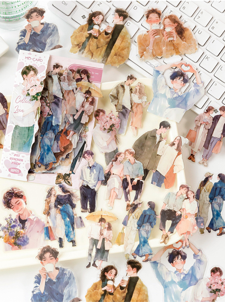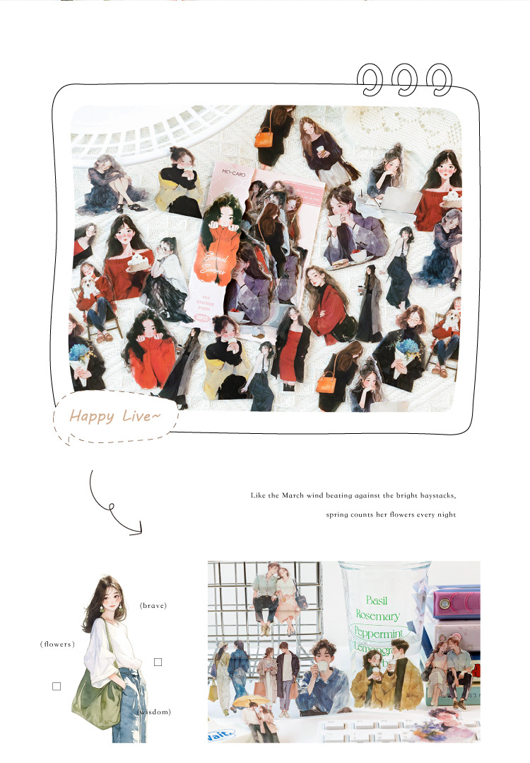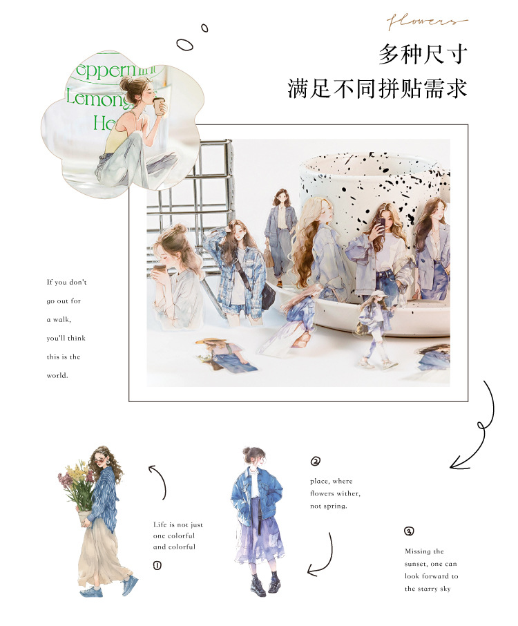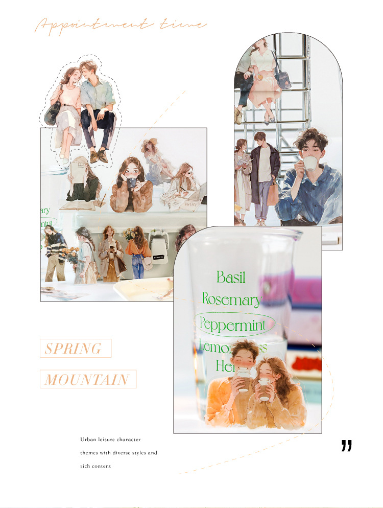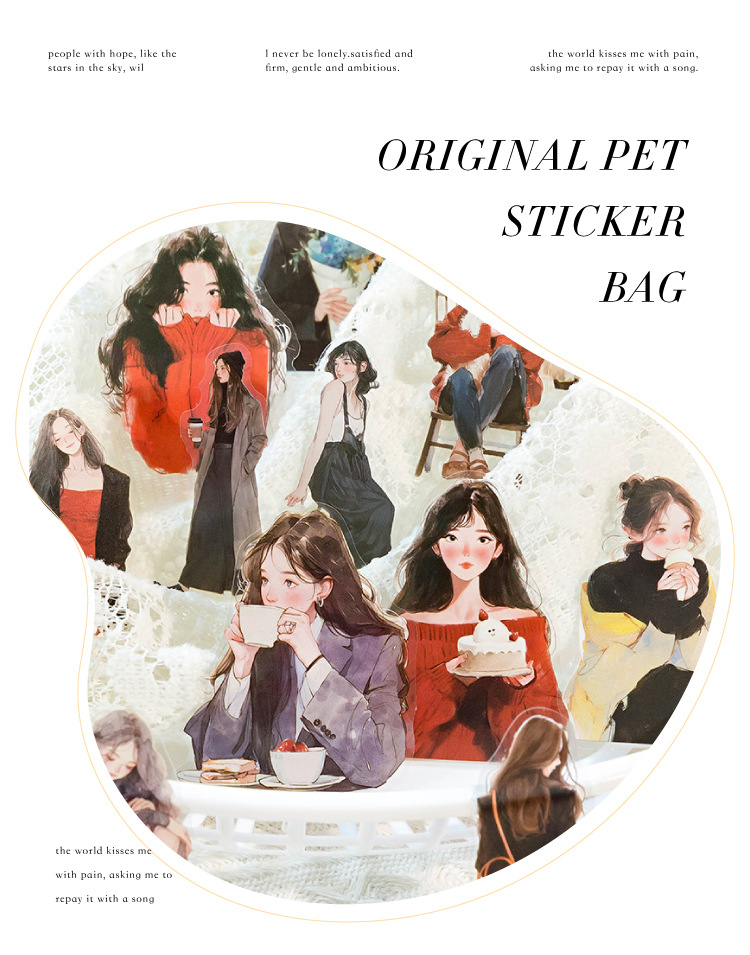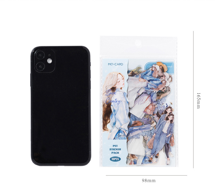开心实况 PET白墨贴纸包 都市休闲人物手帐装饰素材贴6款造景贴画
