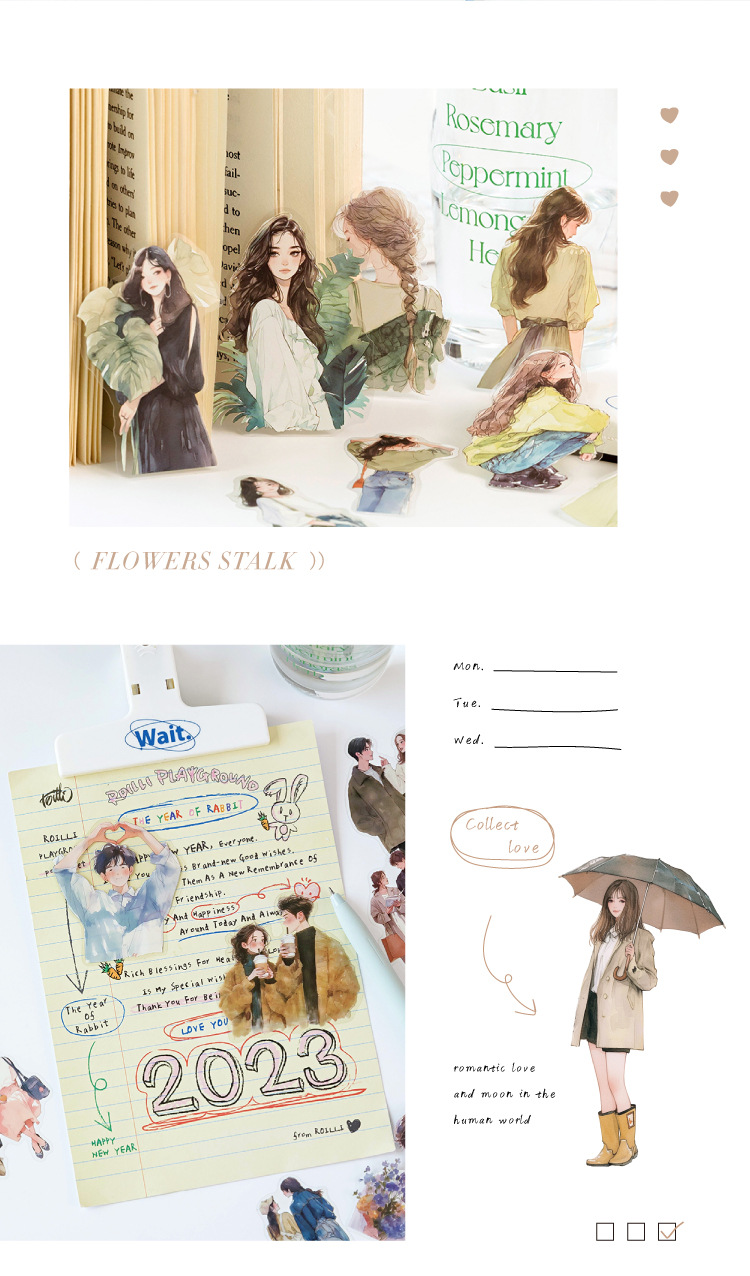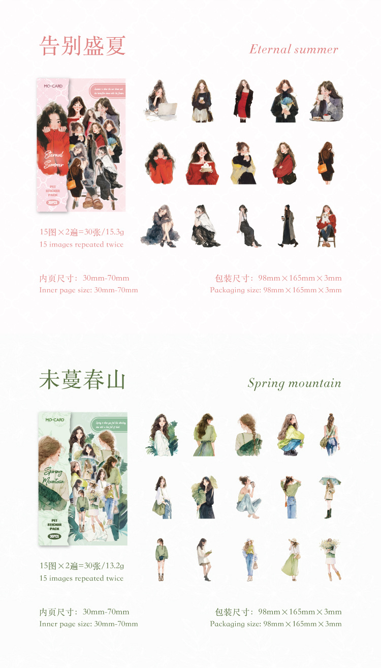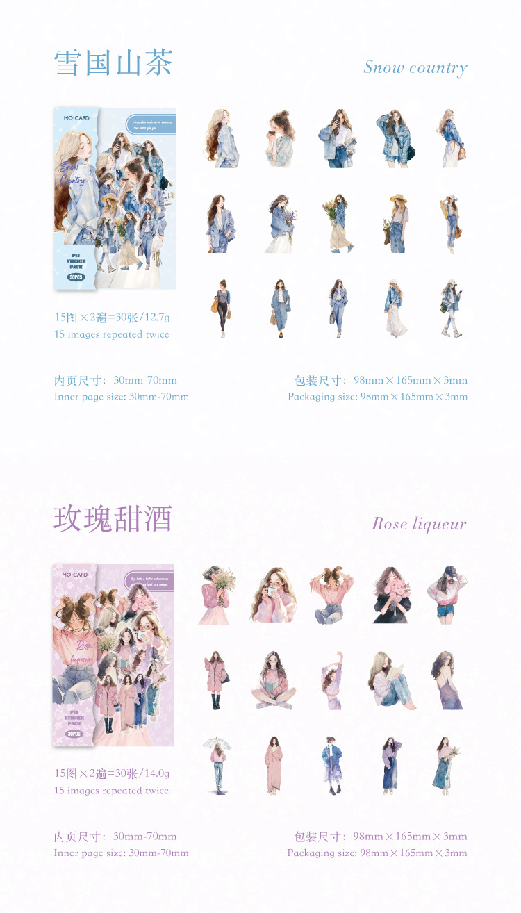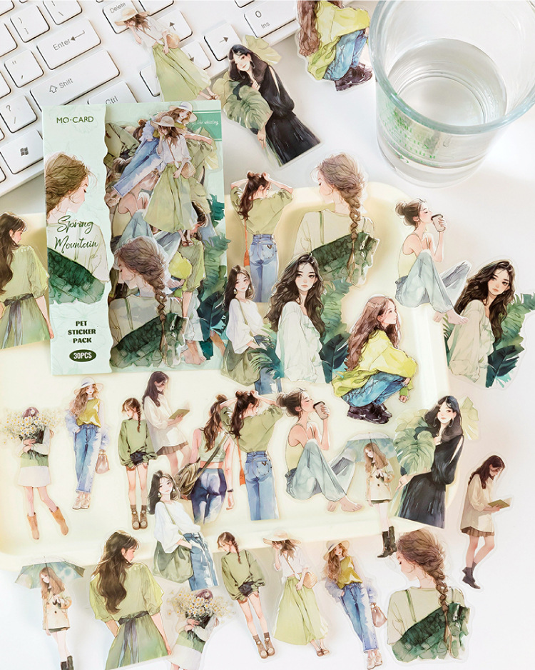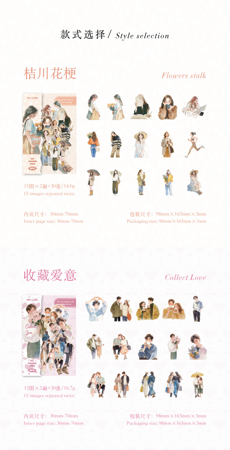 开心实况 PET白墨贴纸包 都市休闲人物手帐装饰素材贴6款造景贴画