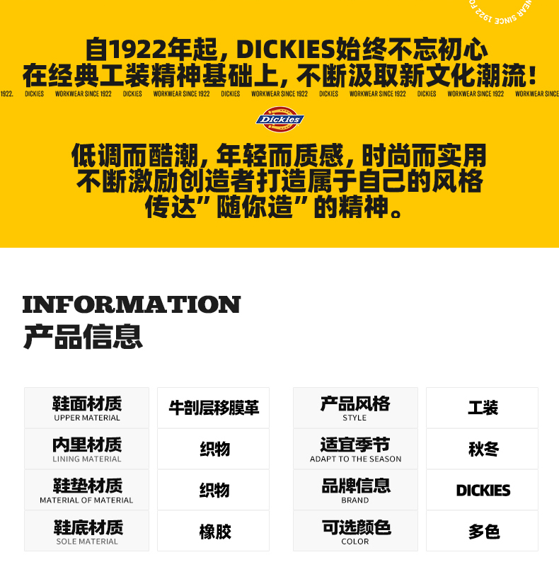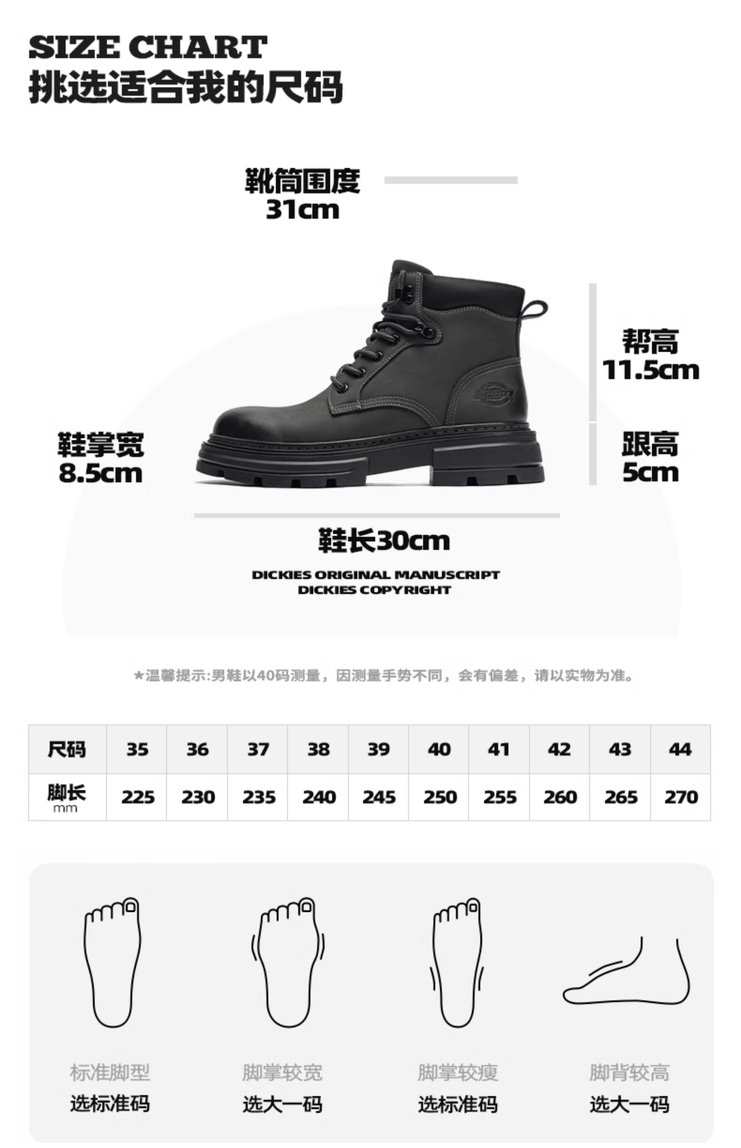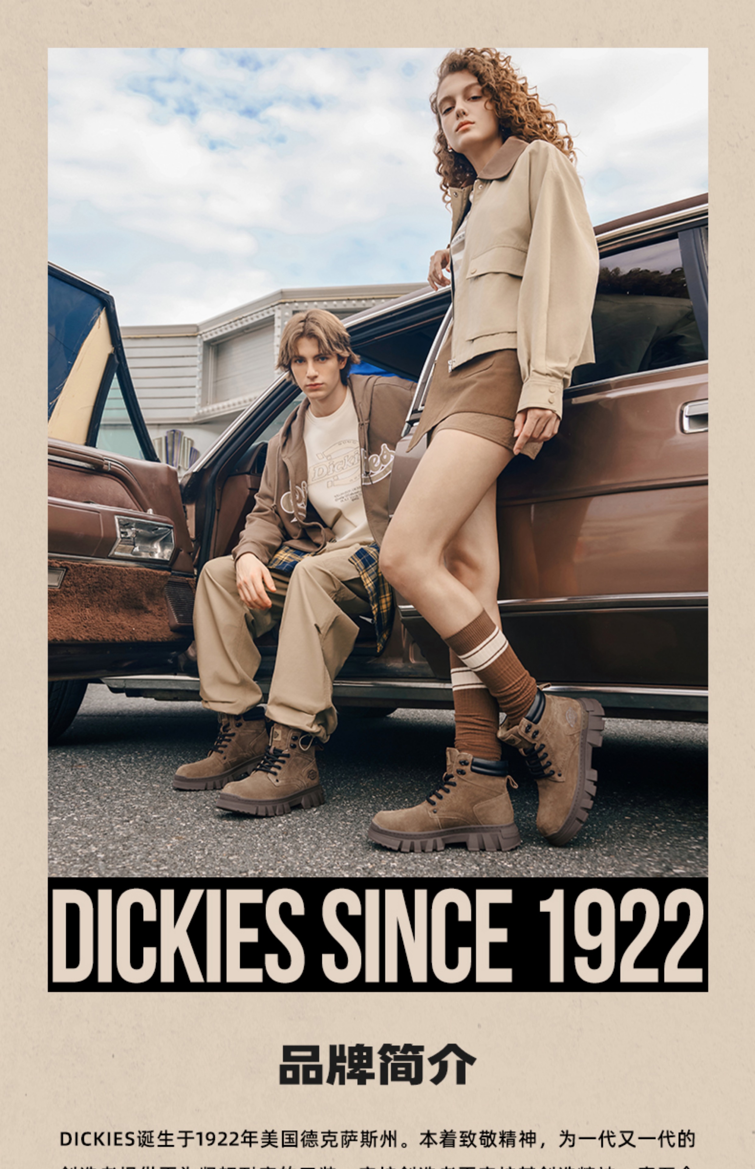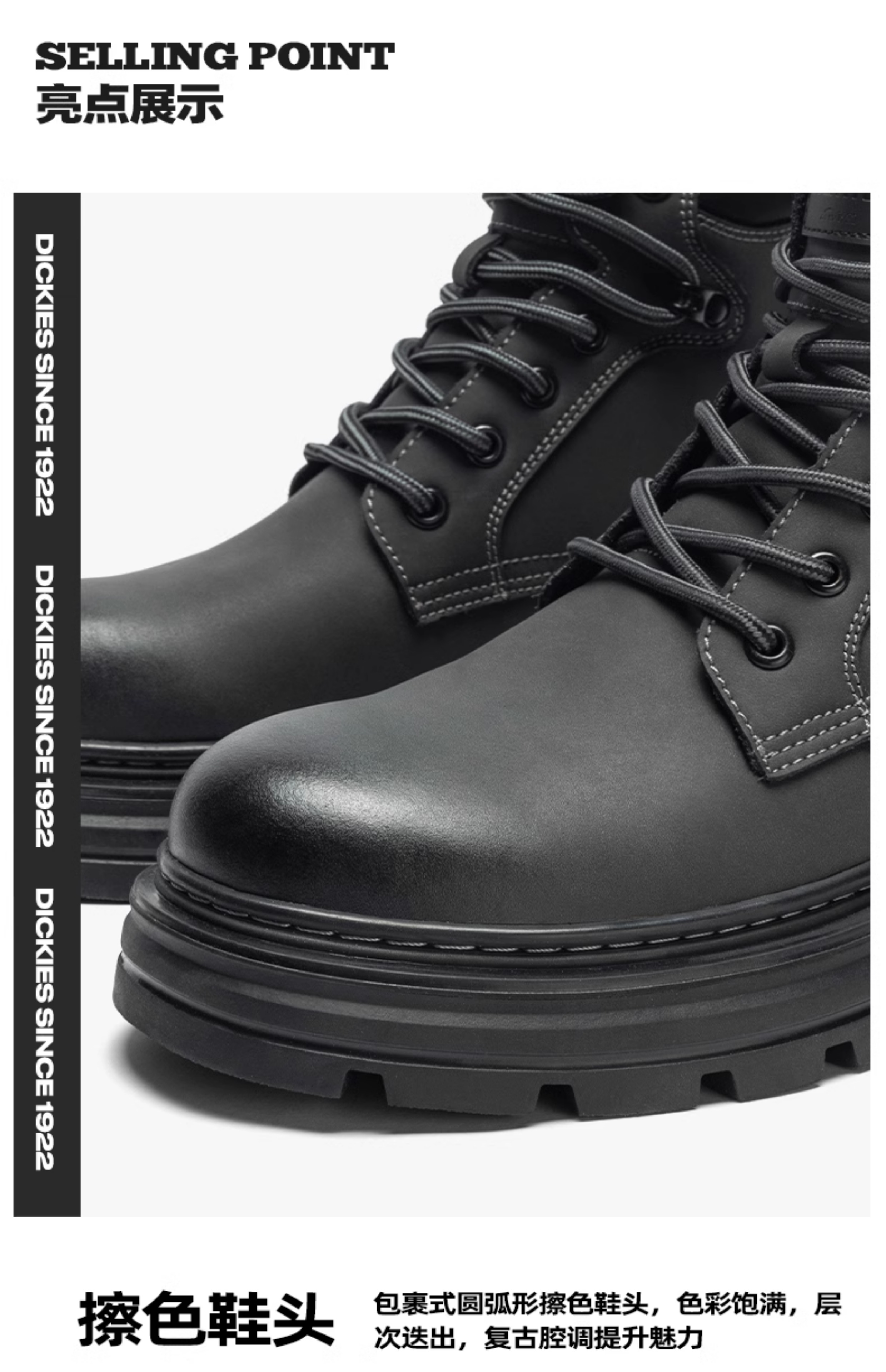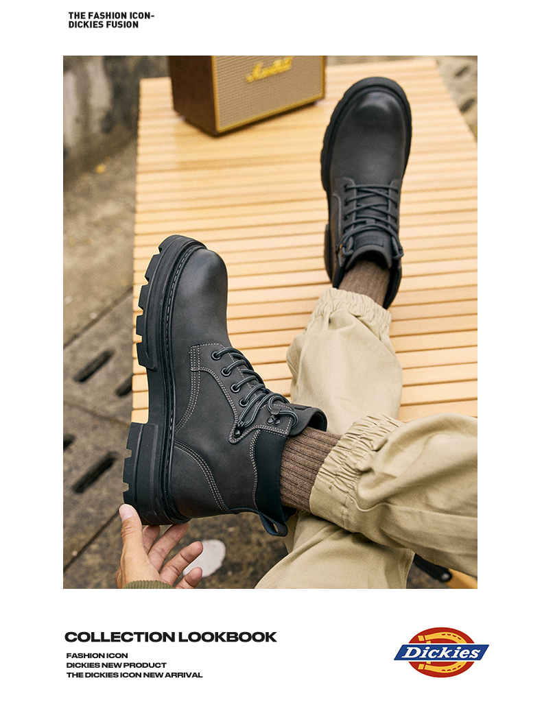 Dickies马丁靴男2024冬季新款靴子男英伦真皮短靴户外潮流工装靴