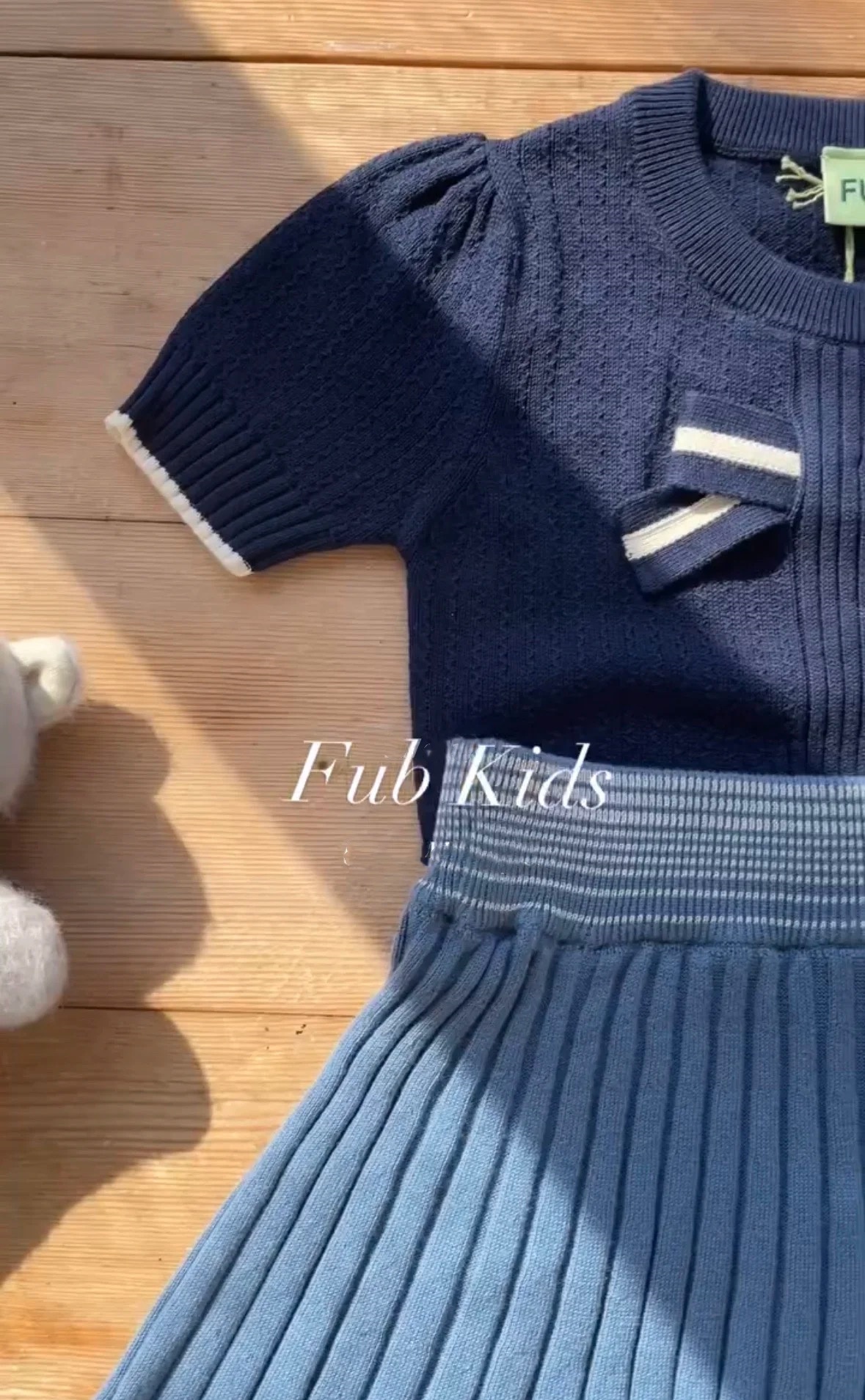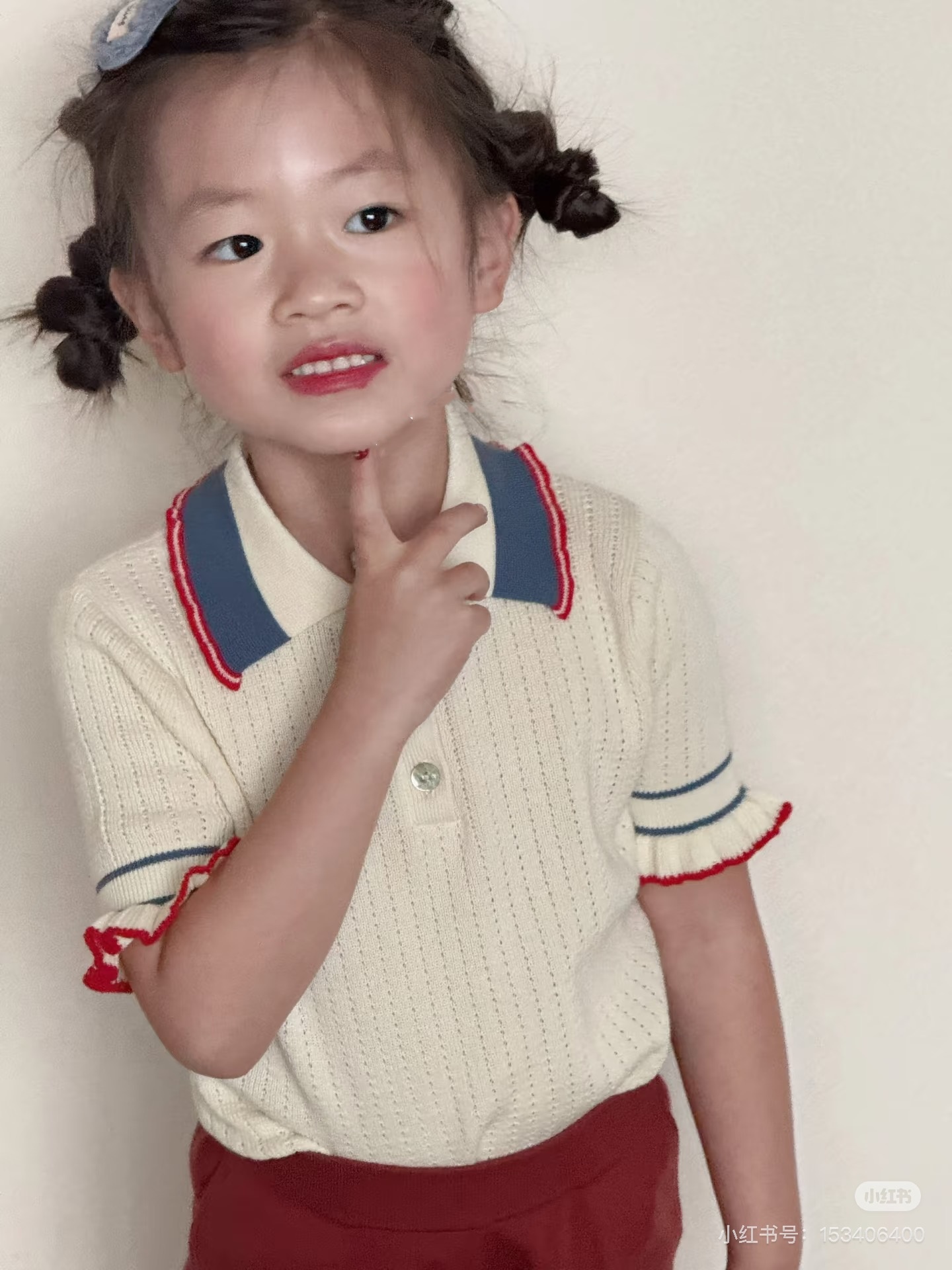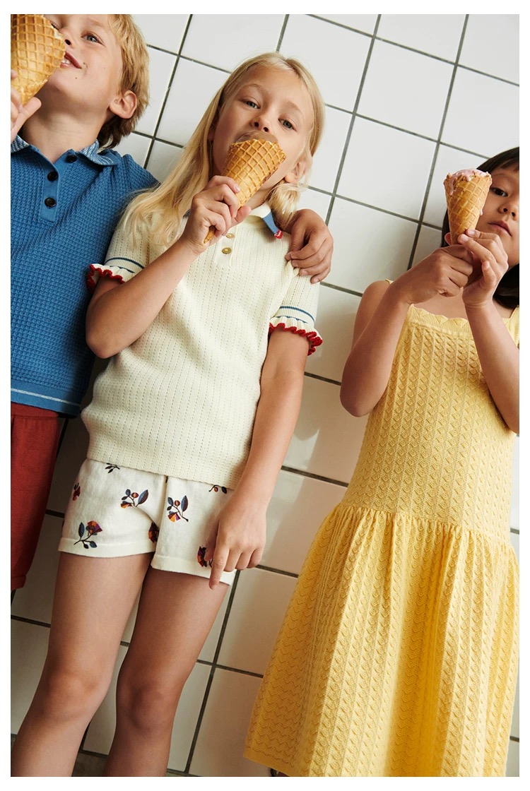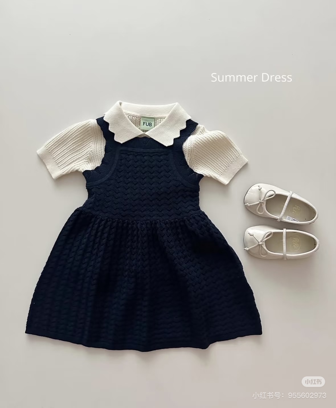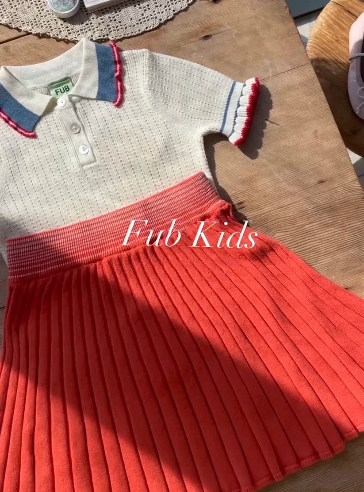 2025春夏新款丹麦fub同款女童宝宝亲子针织印花翻领短袖连衣裙
