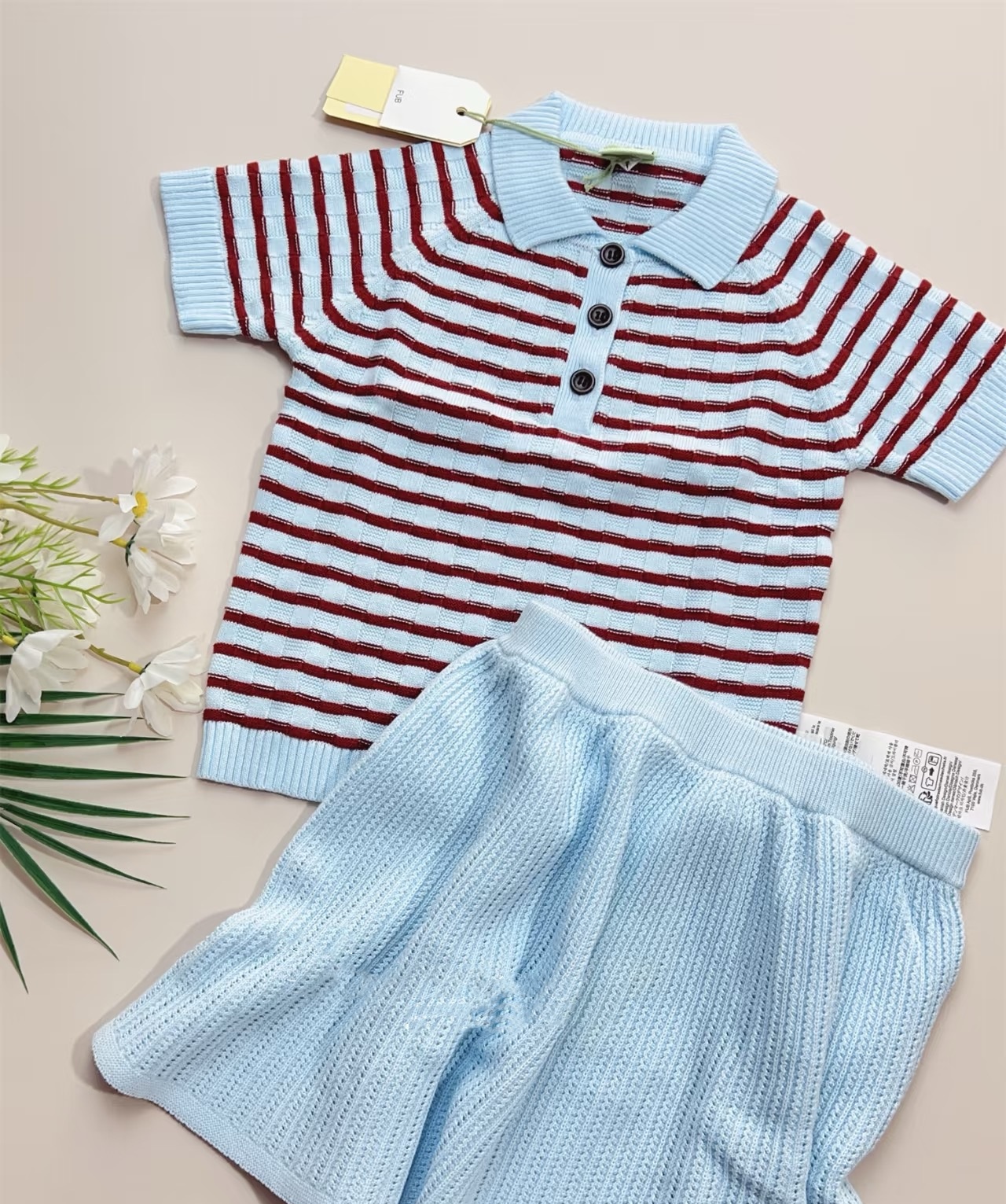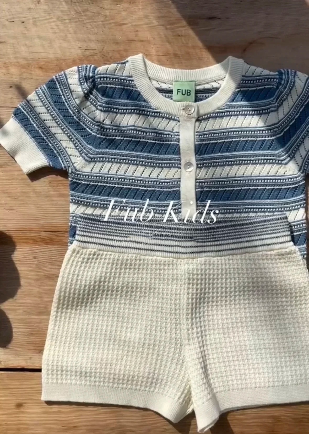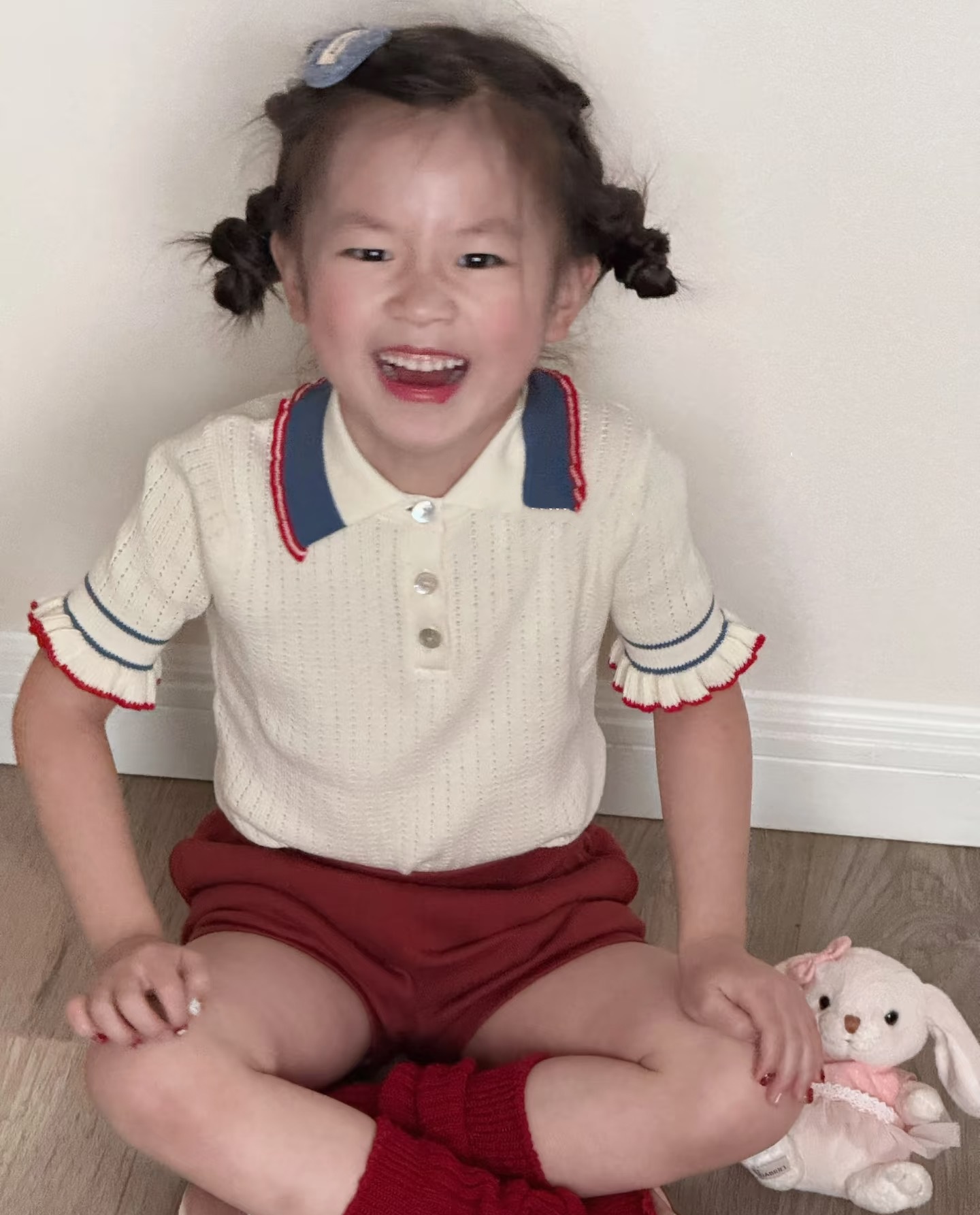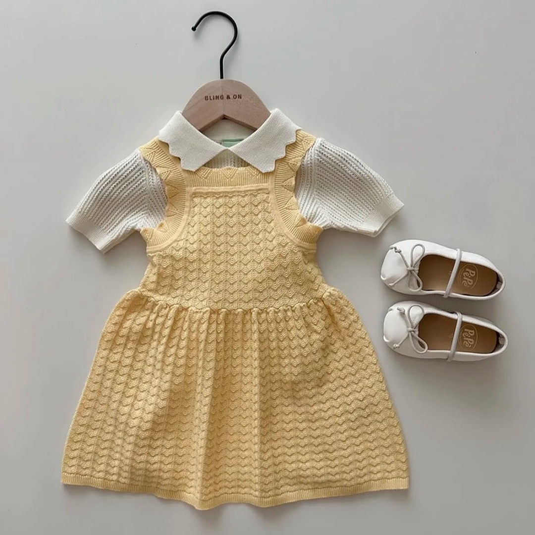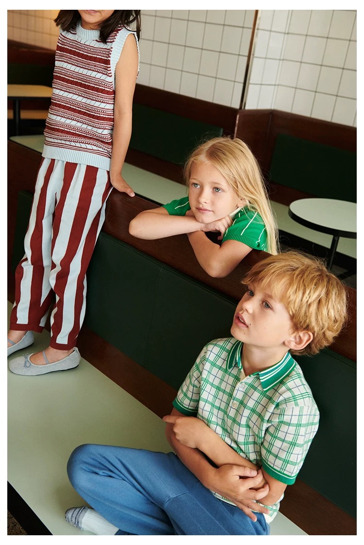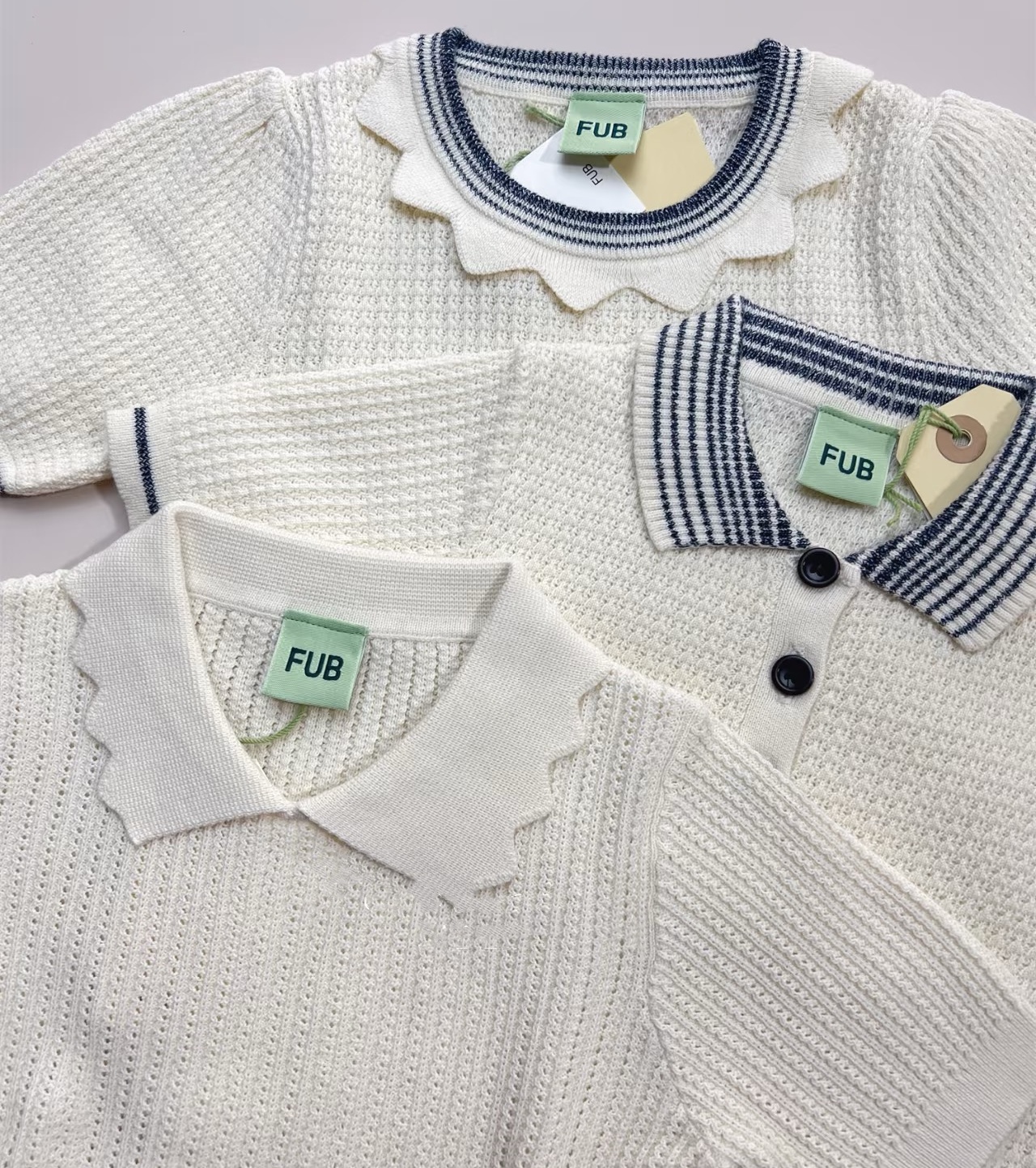 2025春夏新款丹麦fub同款女童宝宝亲子针织印花翻领短袖连衣裙