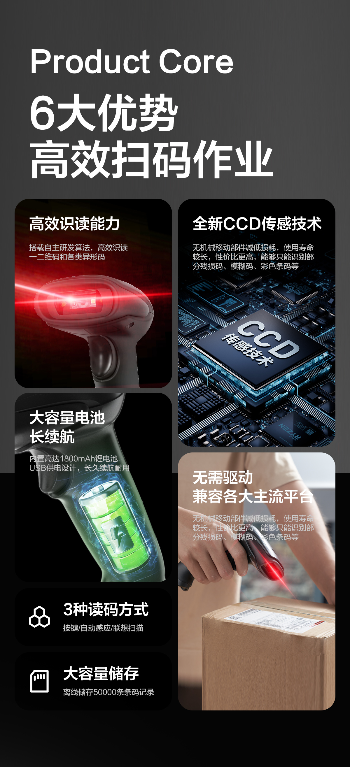 彩格扫码枪无线扫描枪二维码识别超市收银机扫码器快递出入库条码枪有线药品追溯码扫描器手机蓝牙收款机电脑
