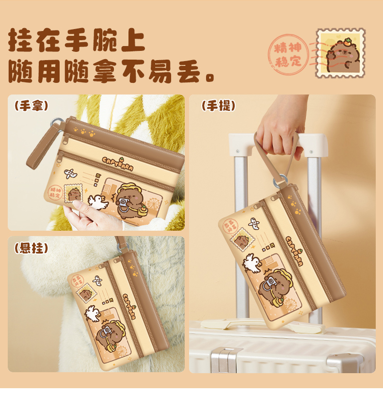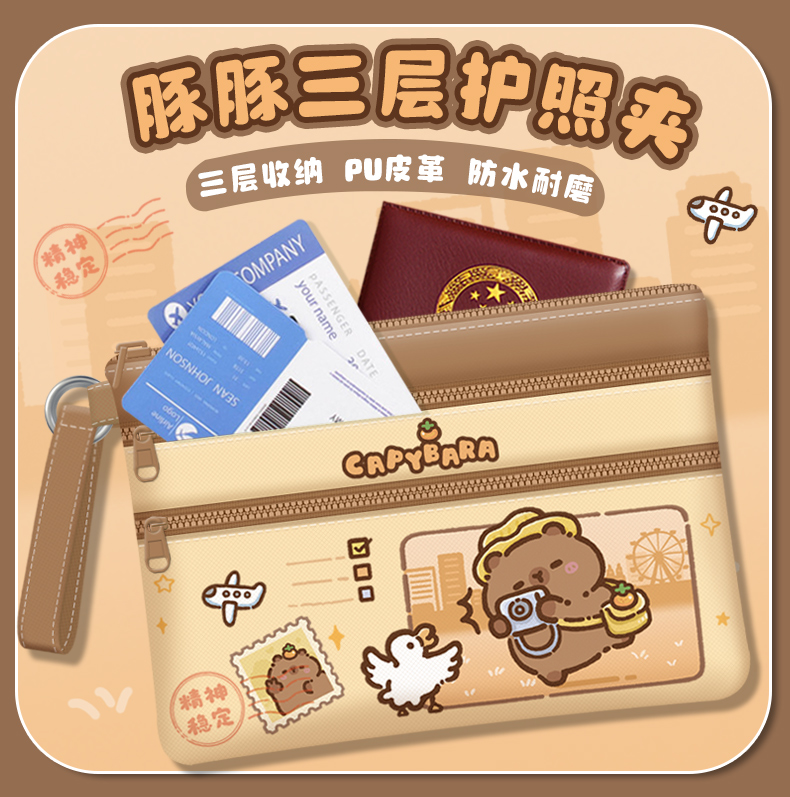 卡皮巴拉护照本保护套出差登机牌卡包零钱包便携旅行证件收纳小包