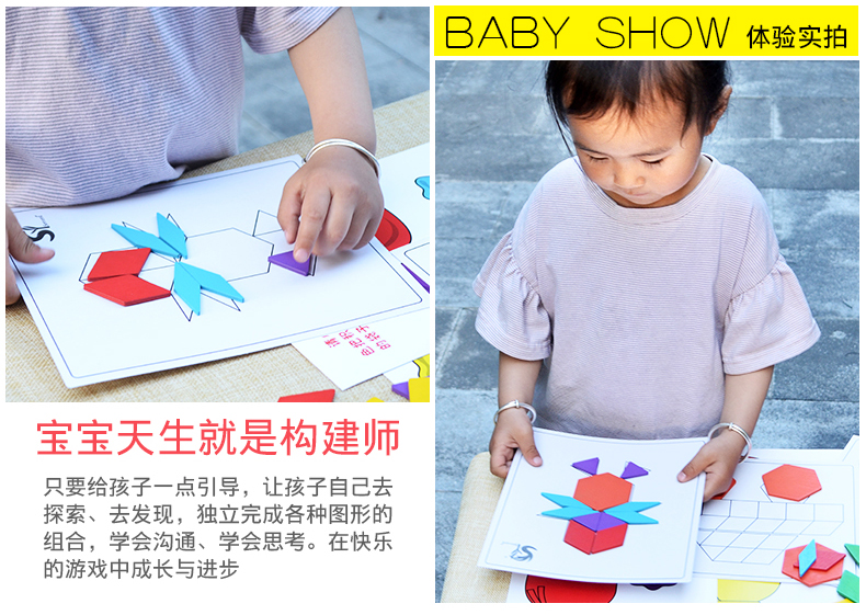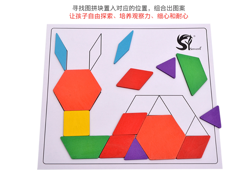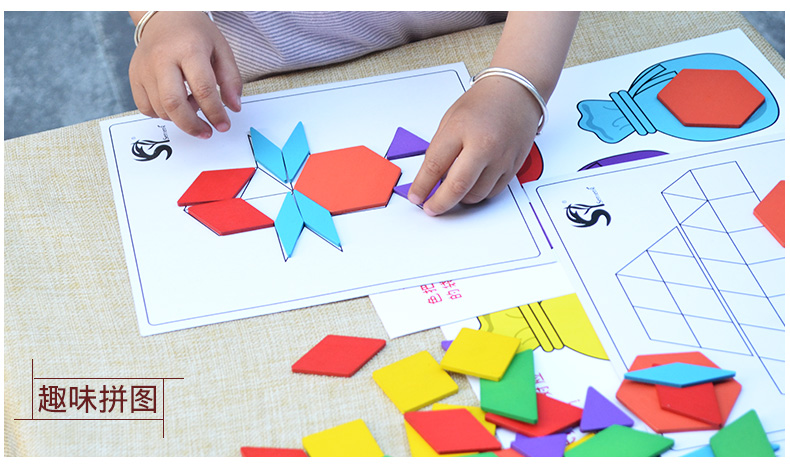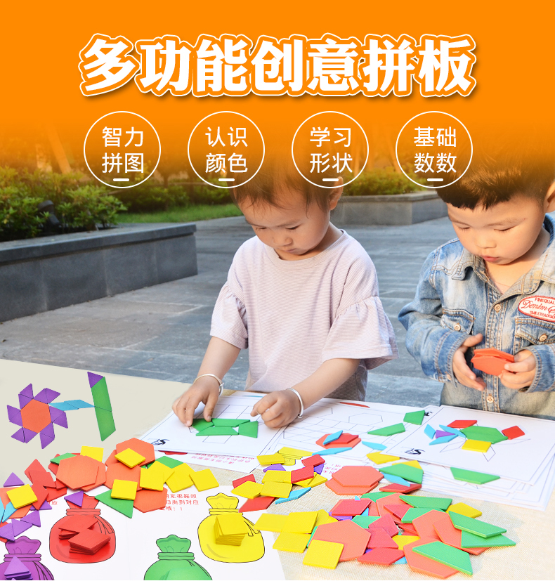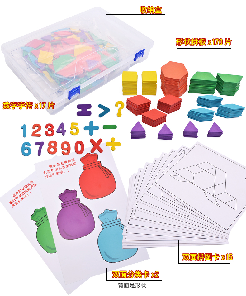 多功能创意拼板170片儿童配对游戏数学七巧板拼图形状认知玩具