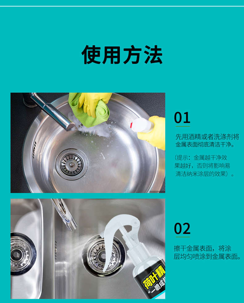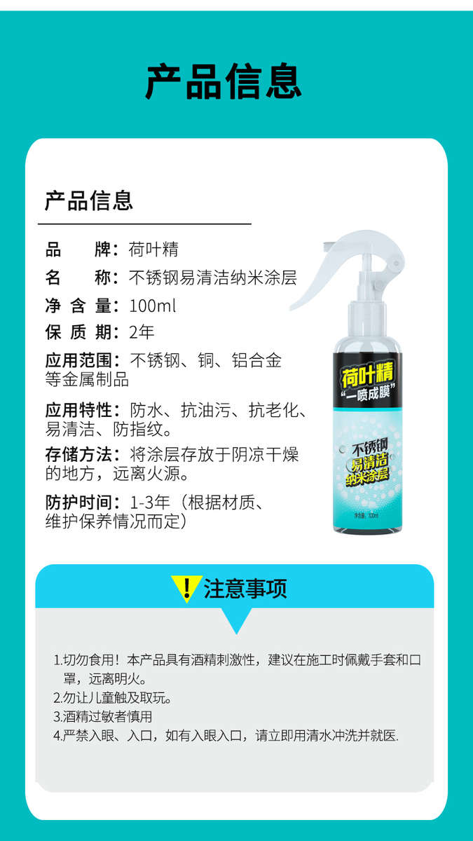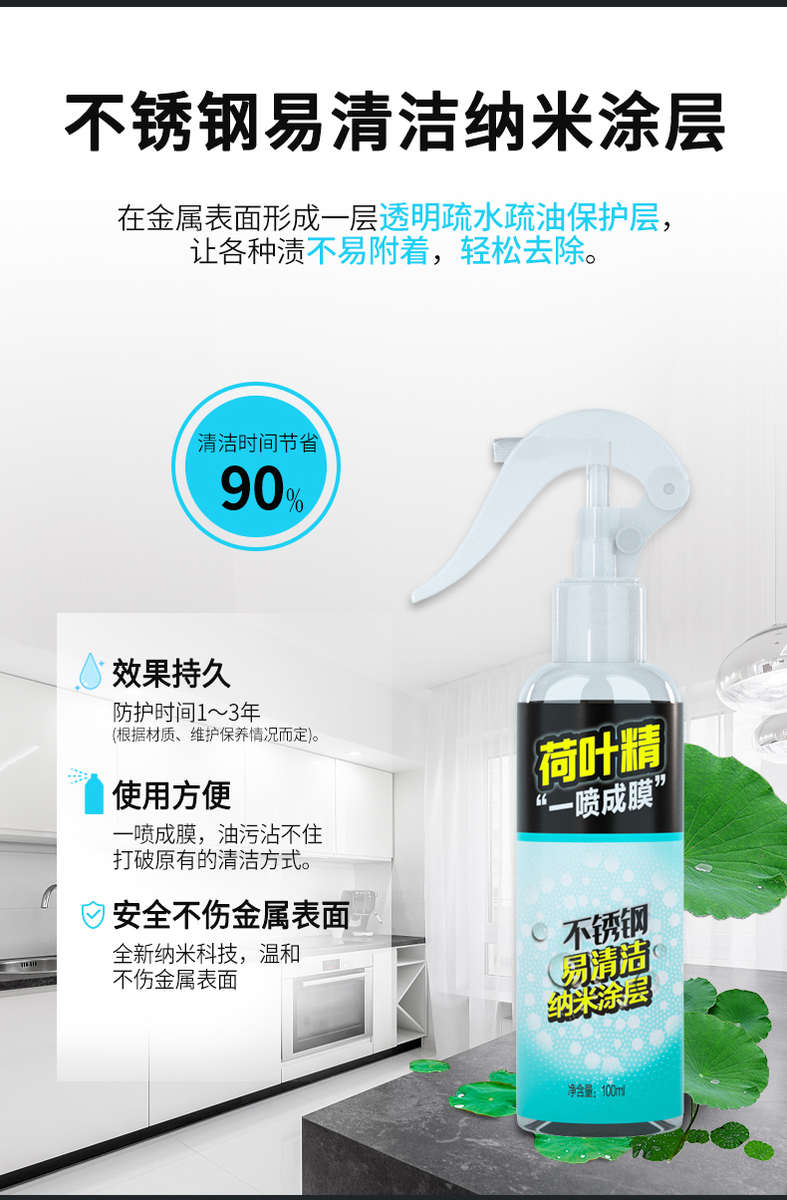 荷叶精不锈钢易洁纳米涂层金属防污剂油烟机淋浴头抗油污水垢指纹