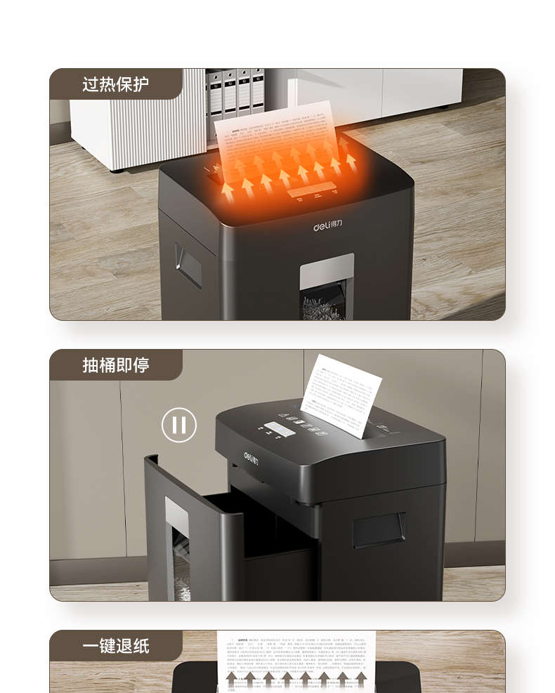 得力GA390碎纸机23L黑色德标4级高保密可带钉碎纸办公设备单次8张