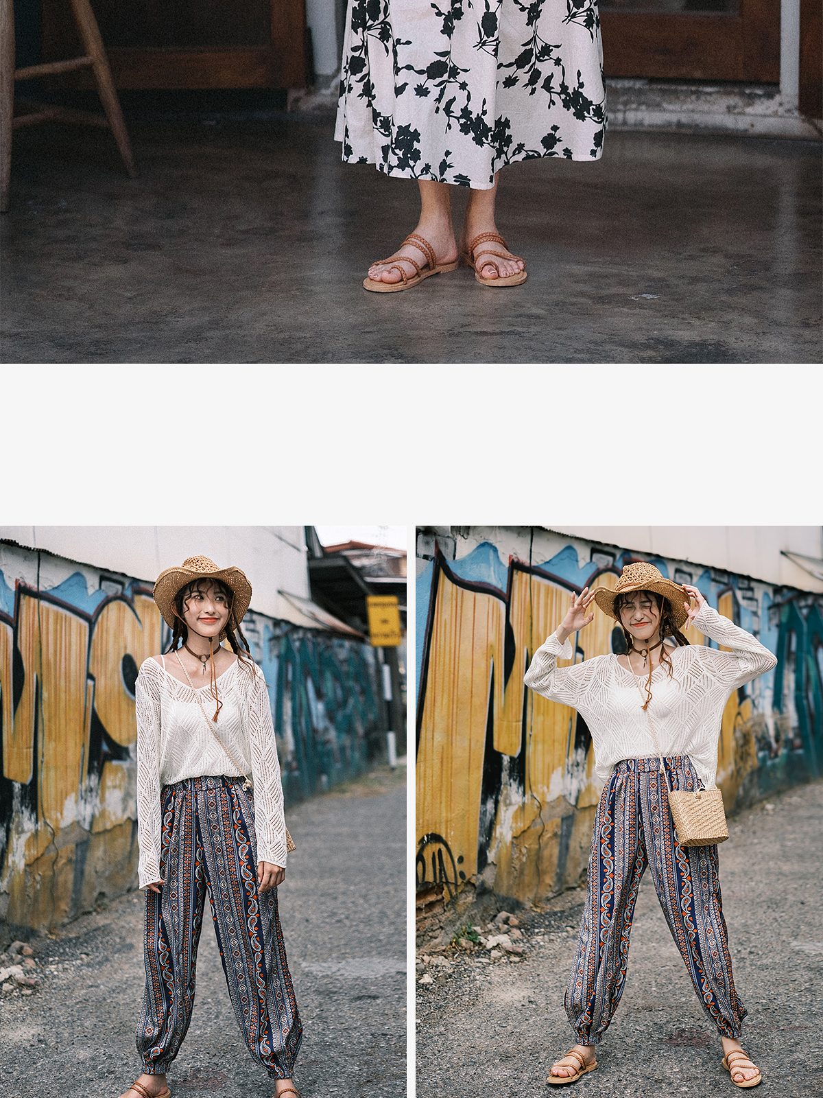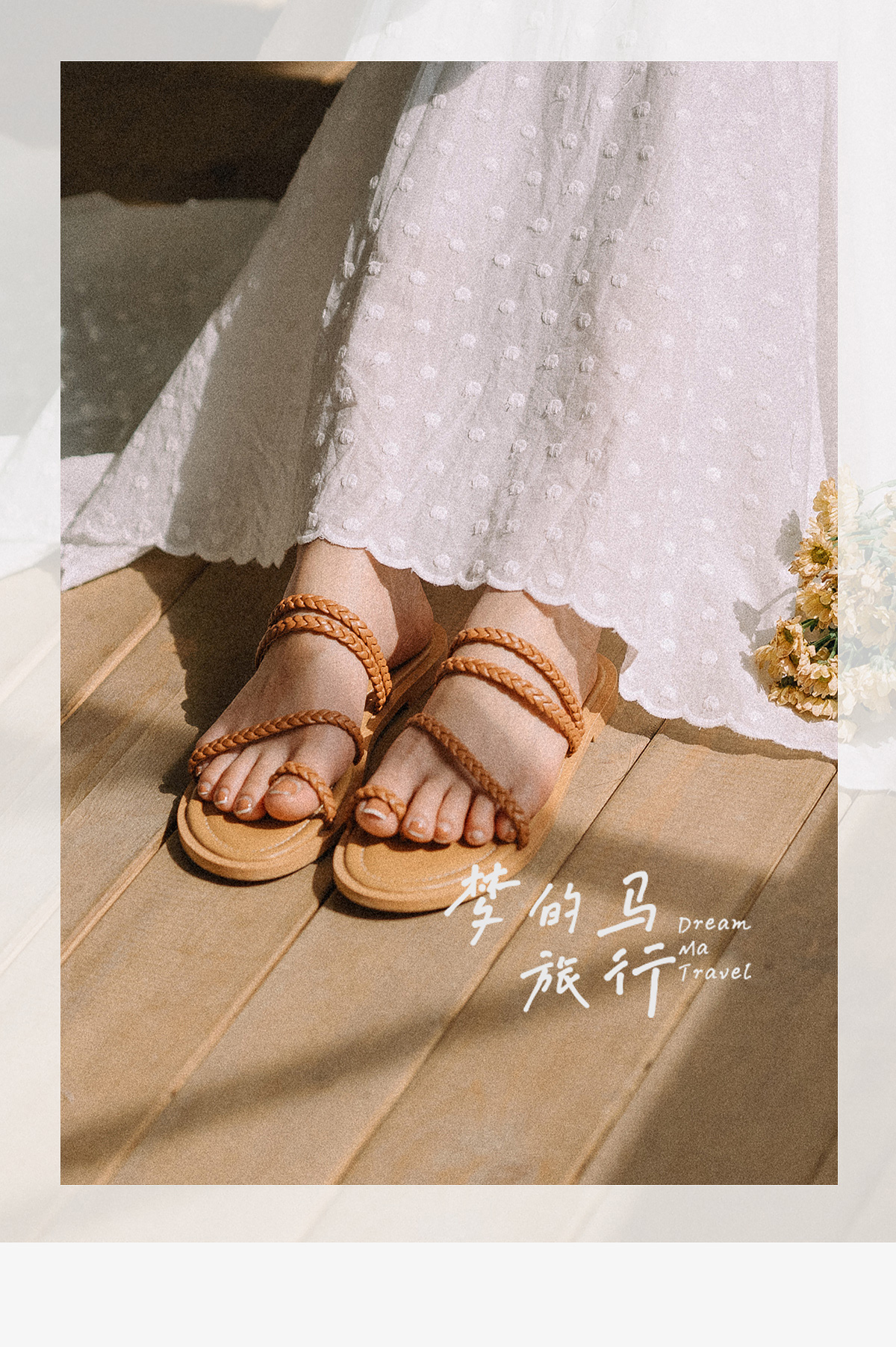 梦的马 自制凉鞋复古编织拖鞋波西米亚风夹趾平底懒人鞋沙滩外穿